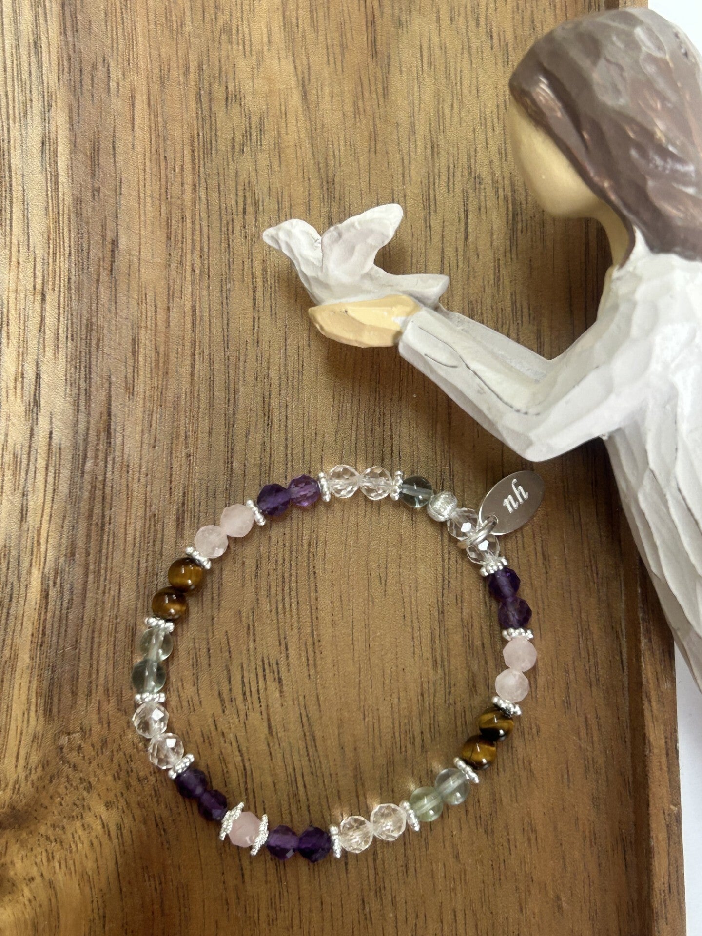 Heilsteine (Link zu Beschreibung und Wirkung): Amethyst, Bergkristall, Fluorit, Rosenquarz, Tigerauge