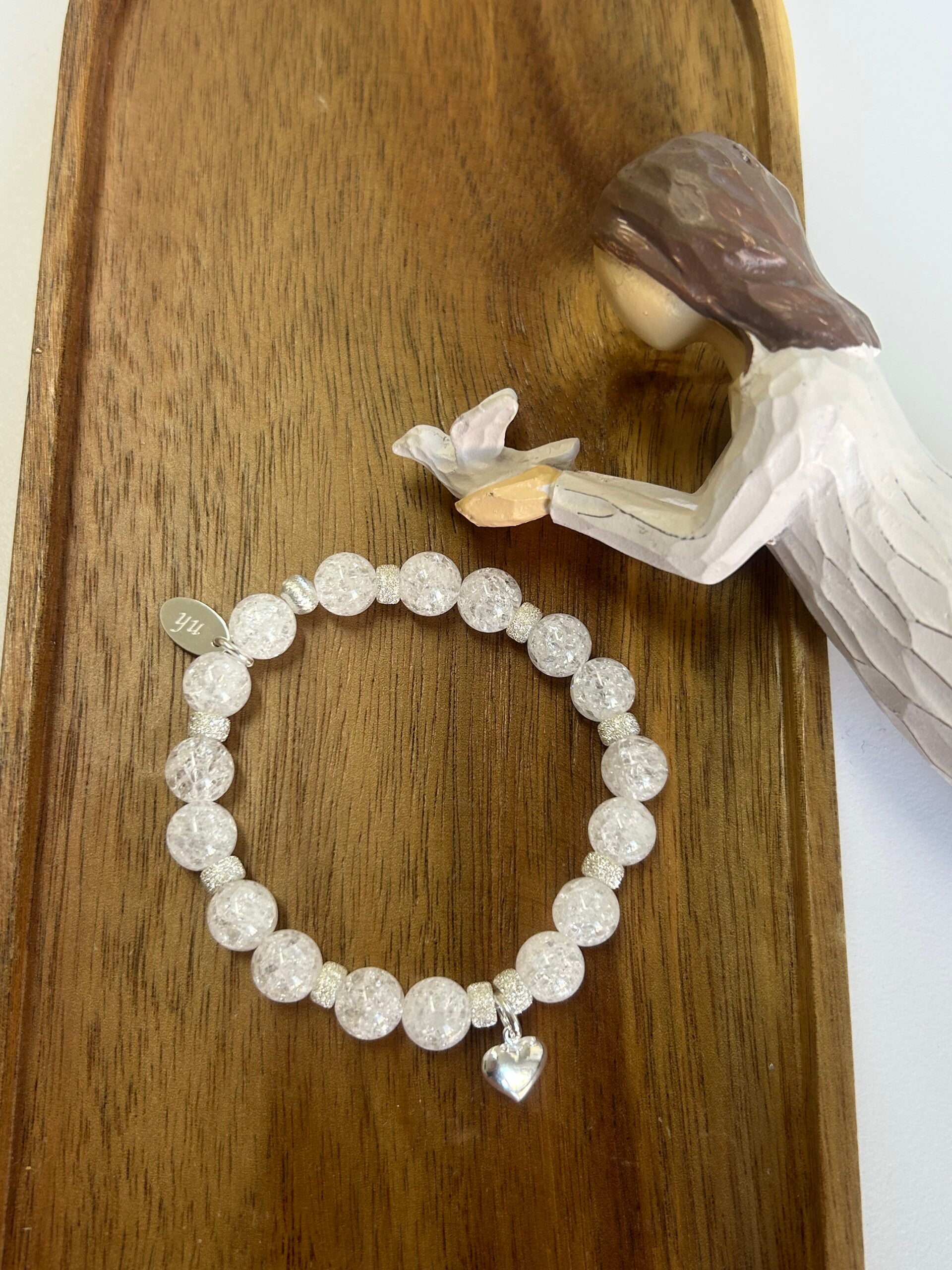 Hinweis: mit Stretch-Band; Silber 925 Anhänger "Herz" und diamantierte Elemente; Kugeln 8mm