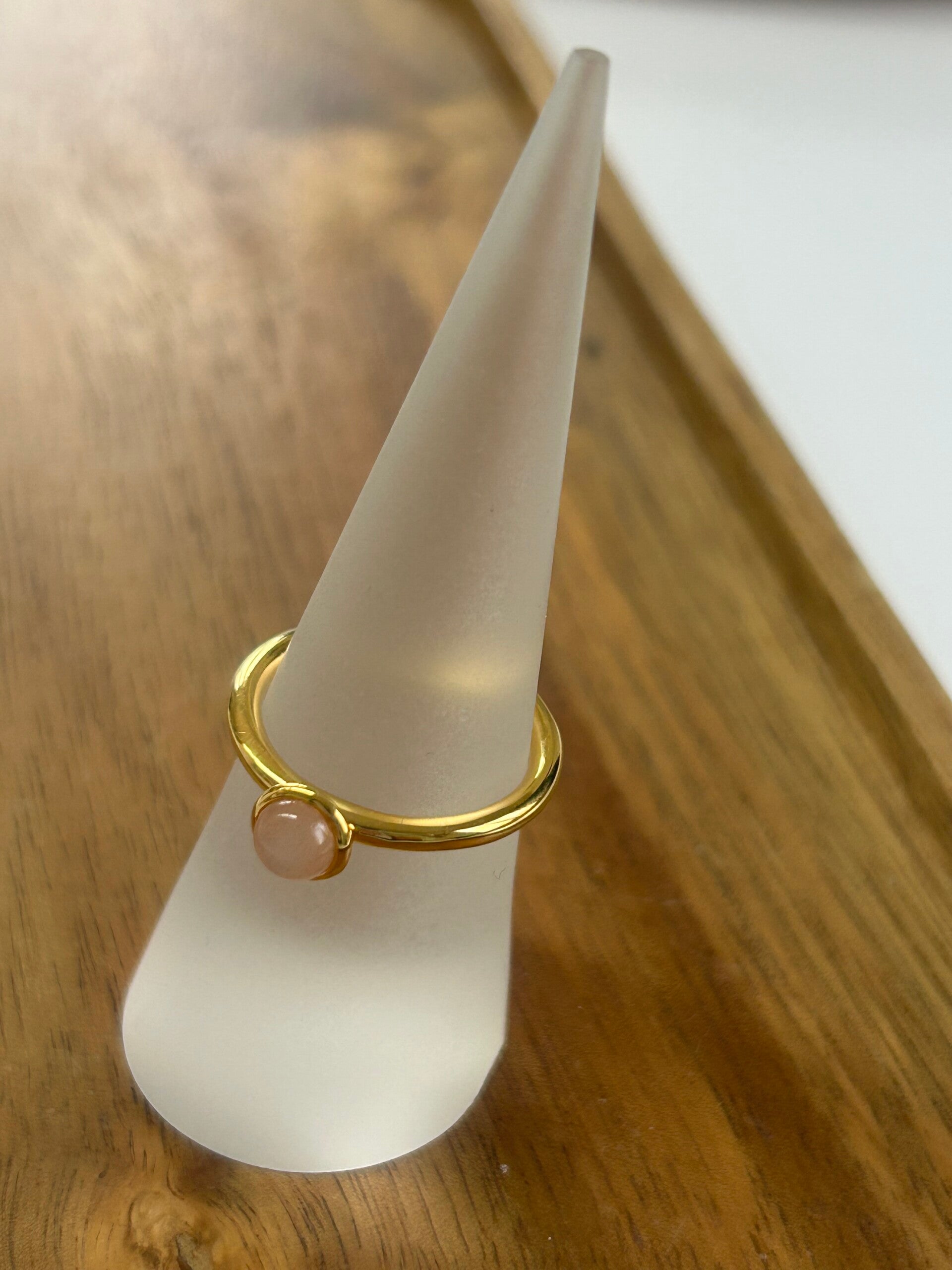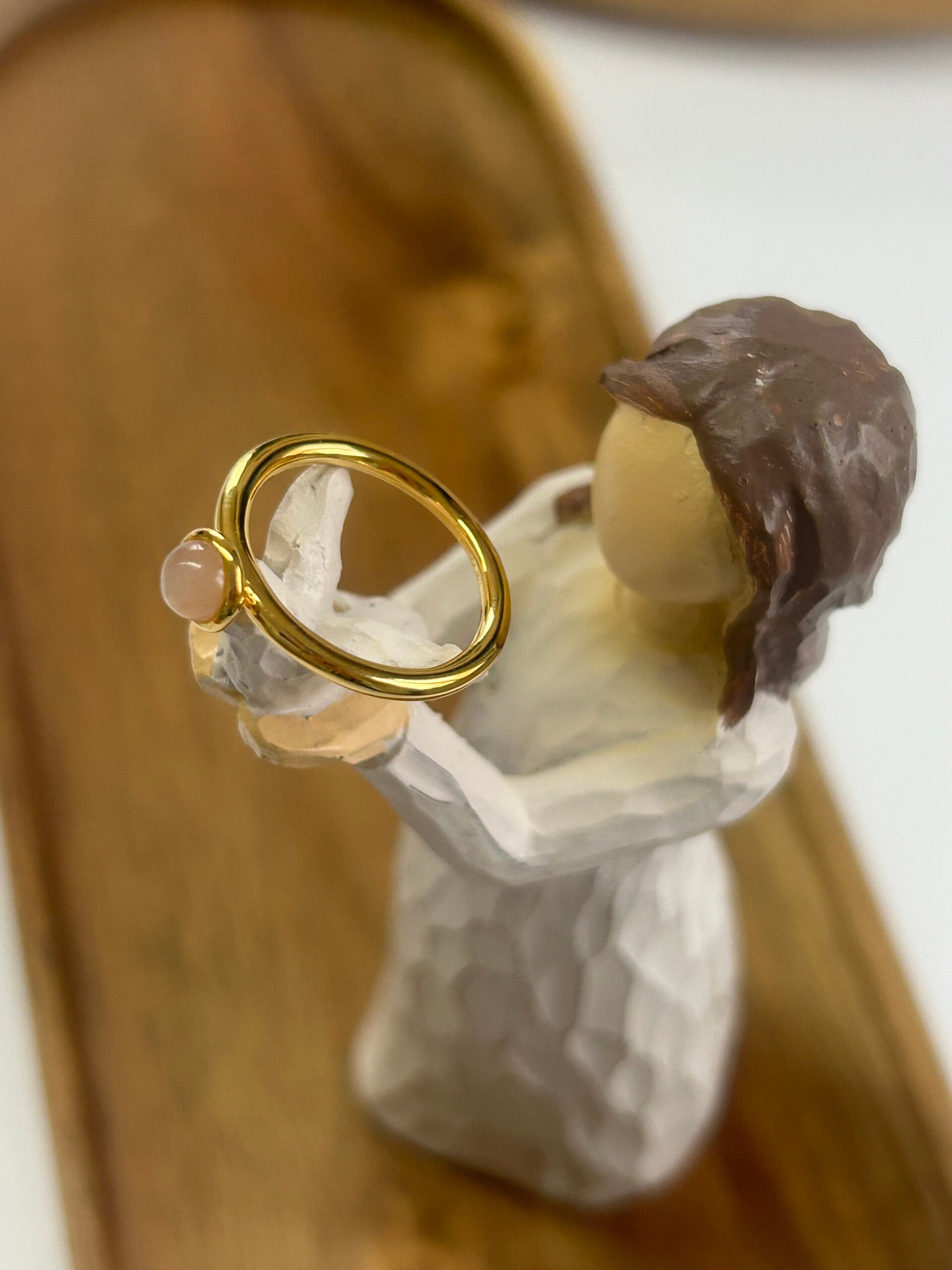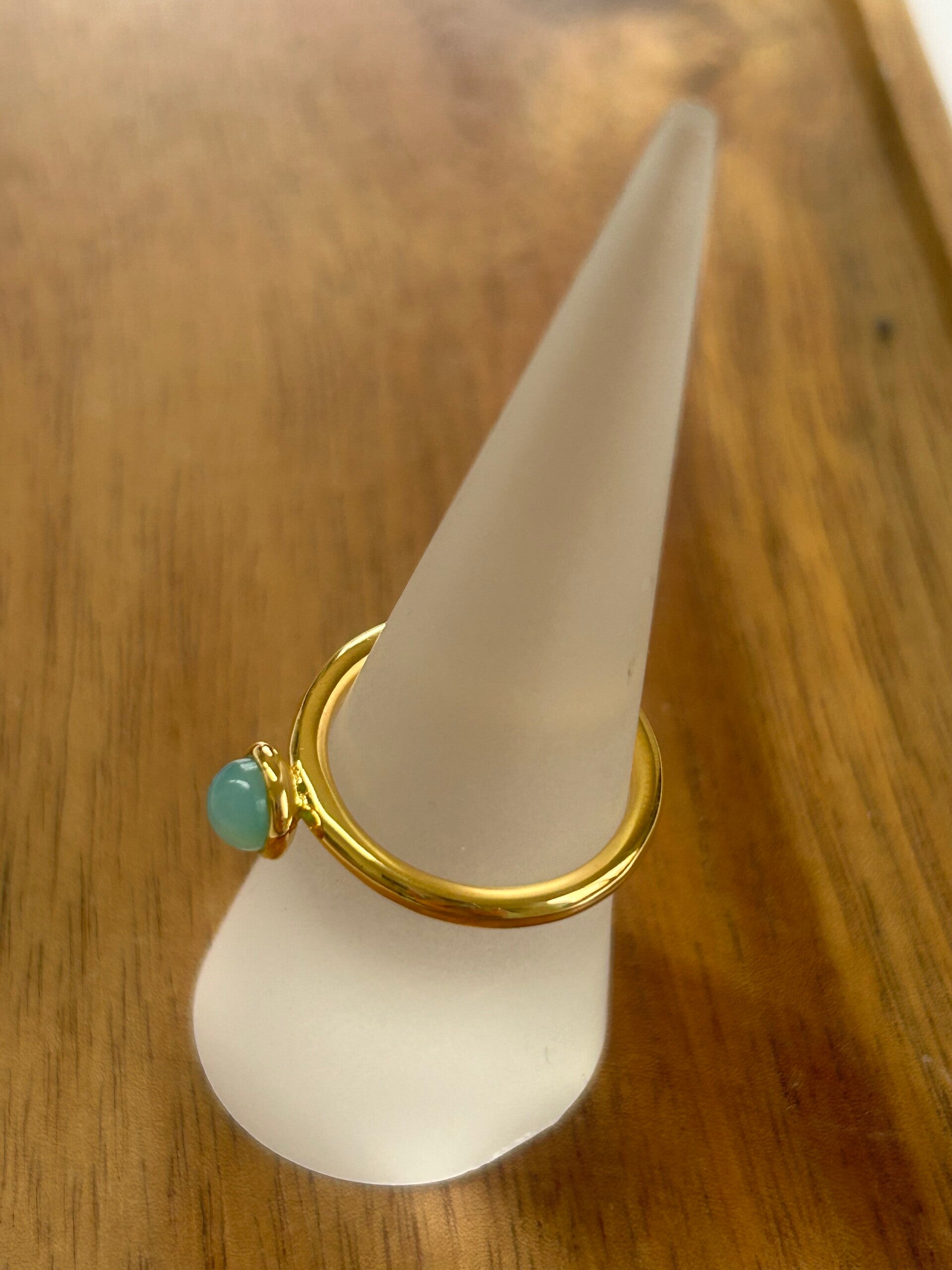 6mm Cabochon auf Silber 925 vergoldetem Ring; Aqua Chalcedon und Mondstein Peach wählbar