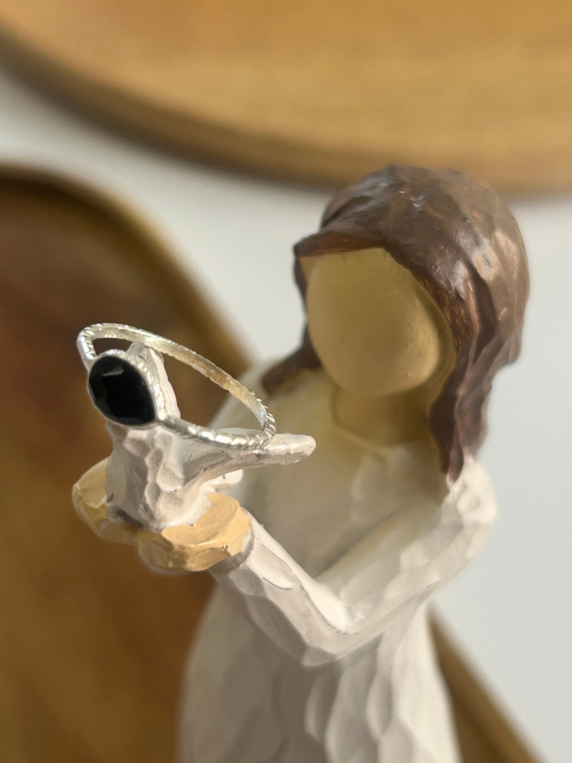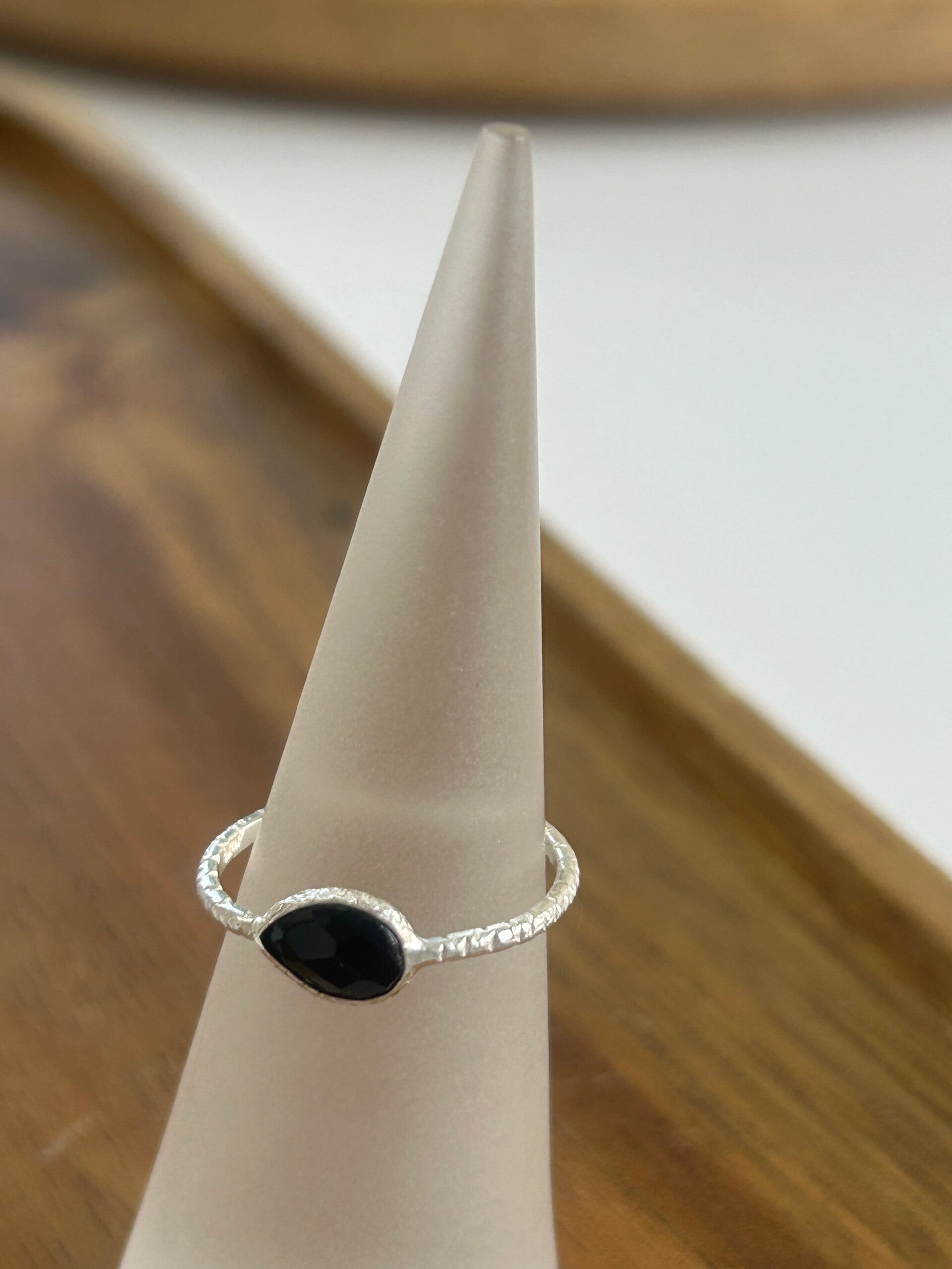 facettierte Onyx-Tropfen 6 x 8mm mit Silber 925 vergoldeter oder Silber 925 gehämmerter Einfassung und Ring wählbar