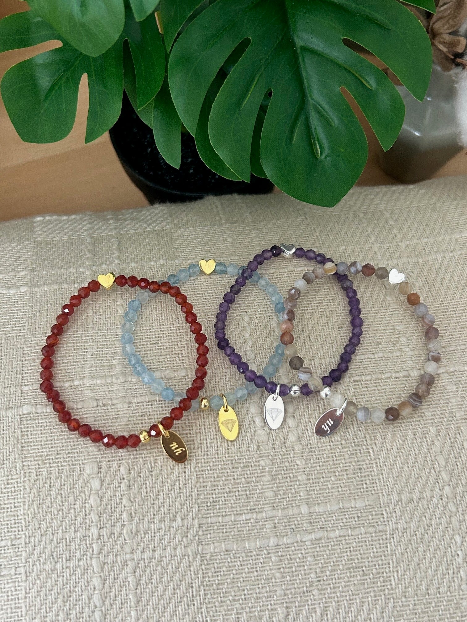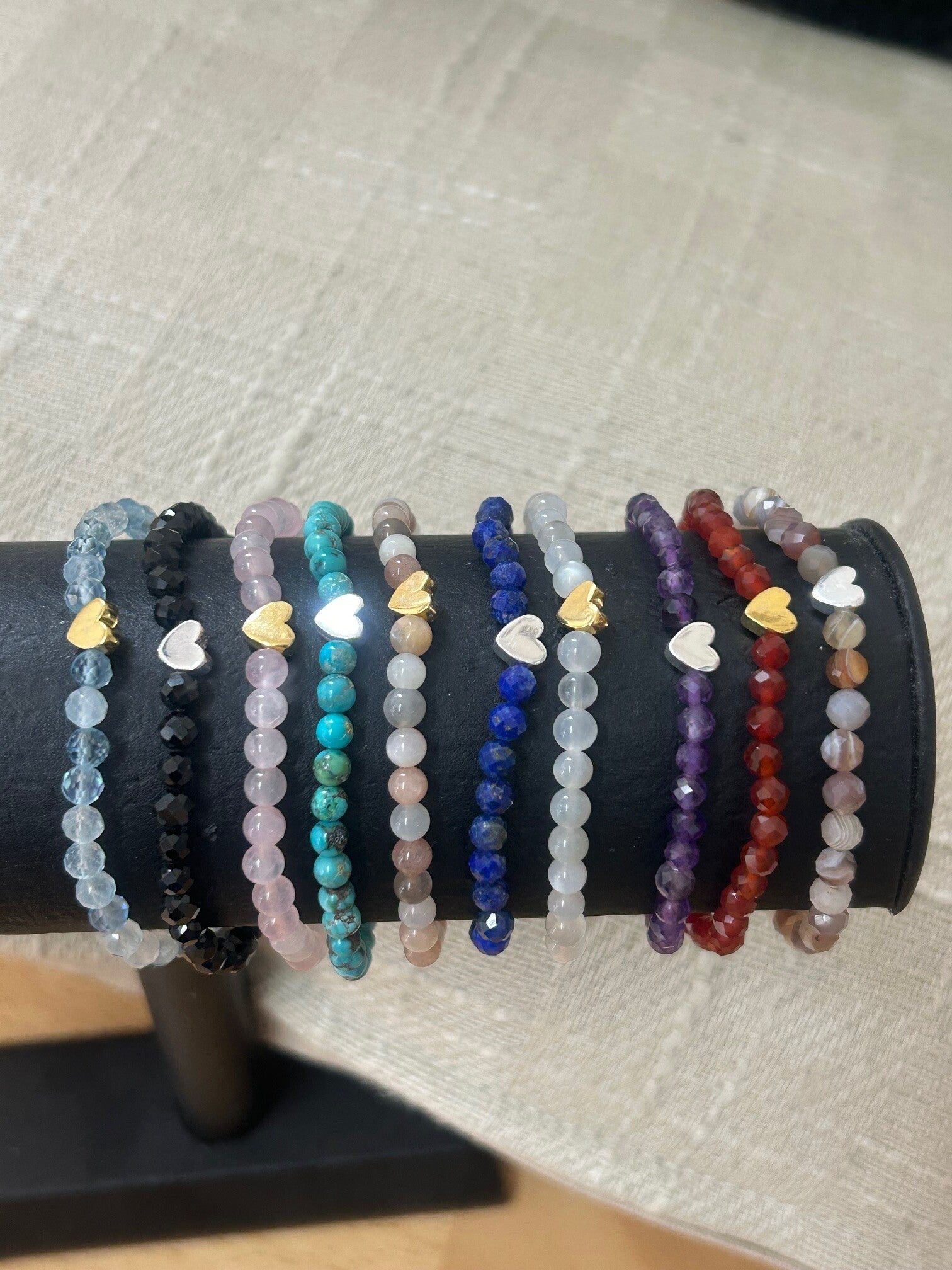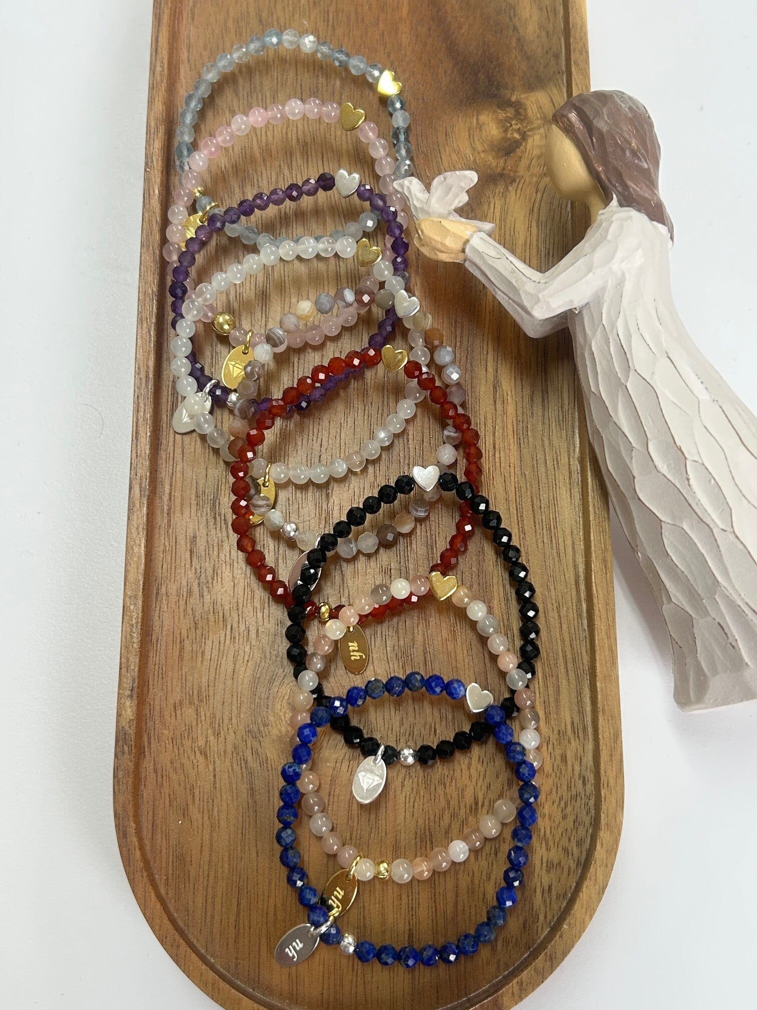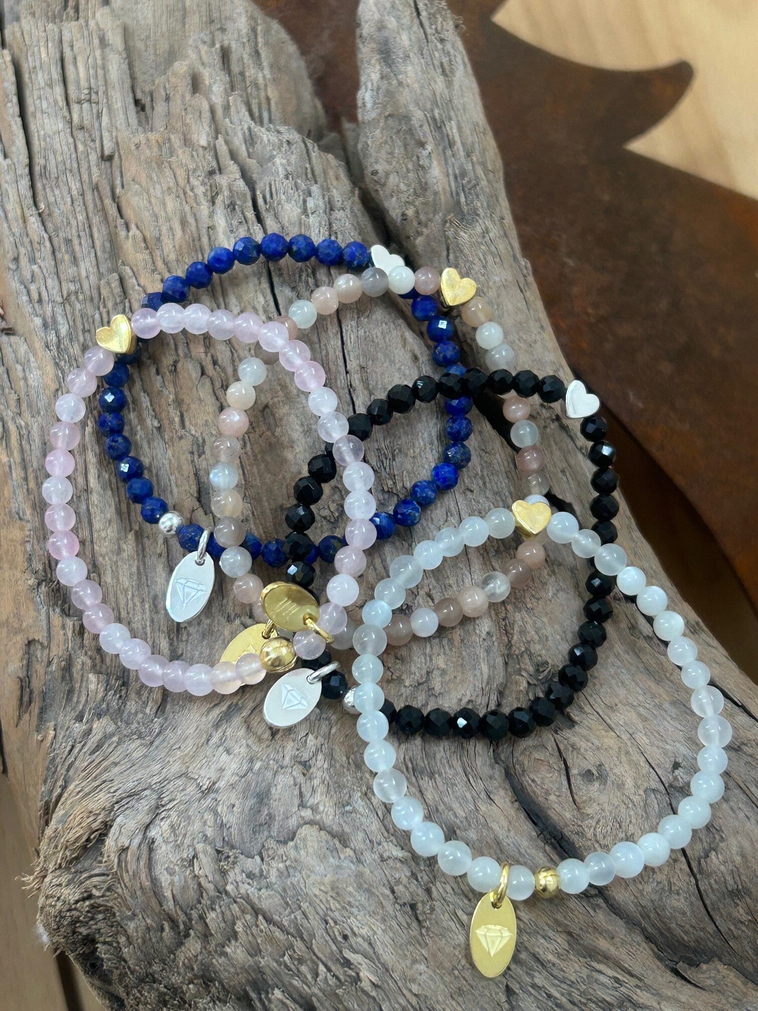 Hinweis: mit Stretch-Band; Herz-Verbinder aus Silber 925 vergoldet respektive Silber 925 wählbar; Kugeln 4mm oder 4mm facettiert