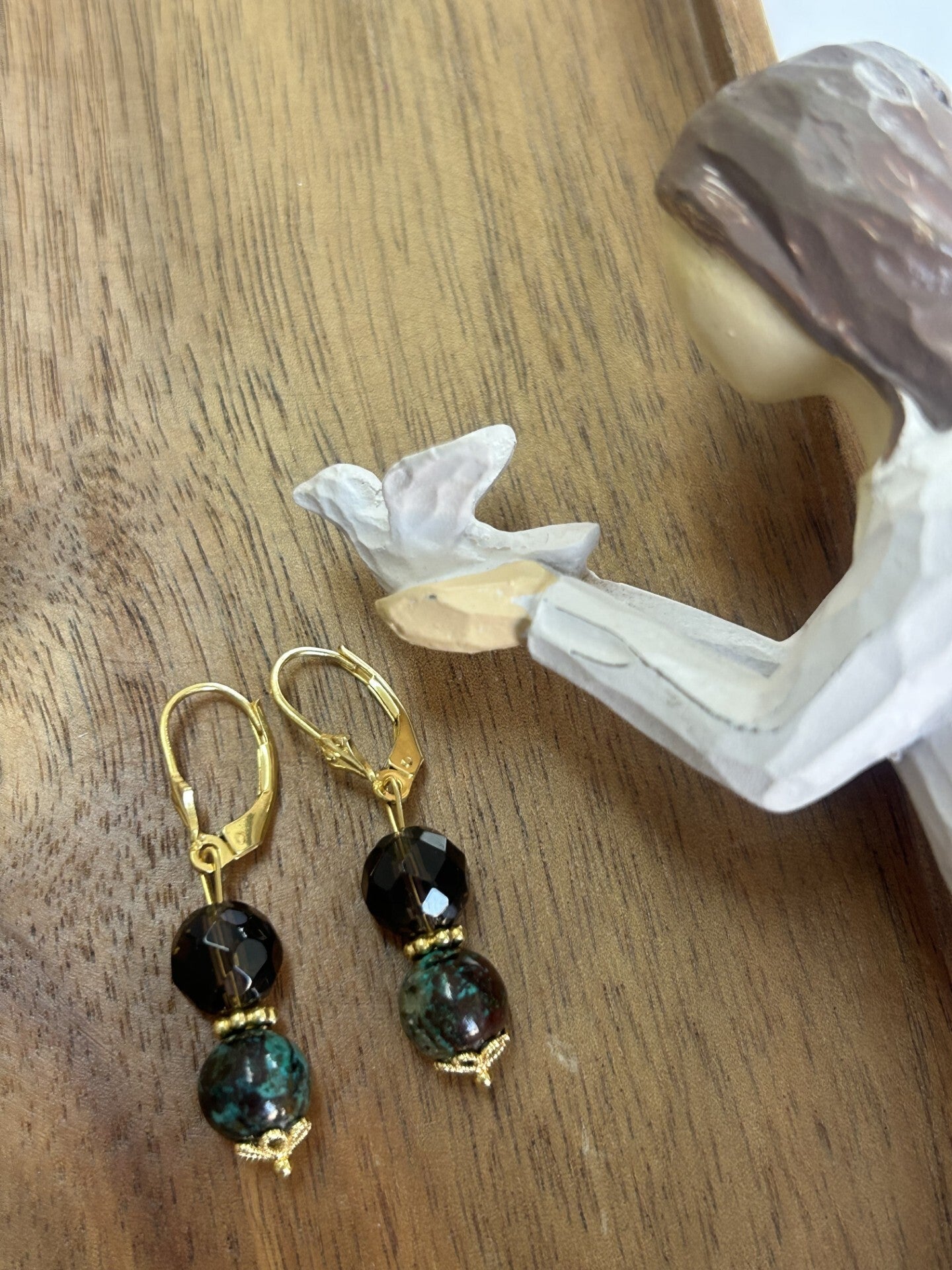 Ohrringe - Chrysokoll & Rauchquarz (O508)