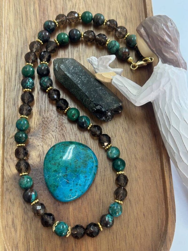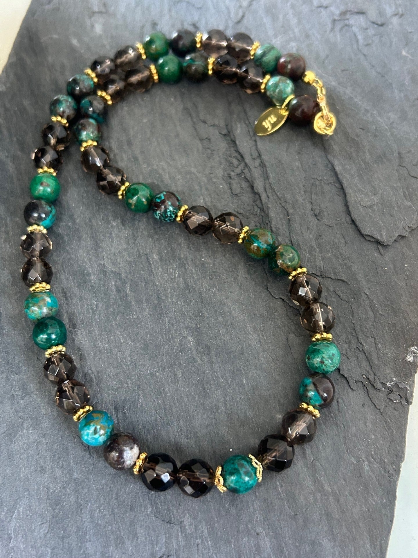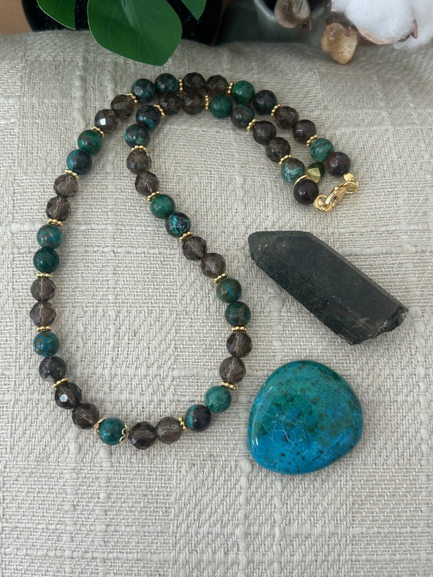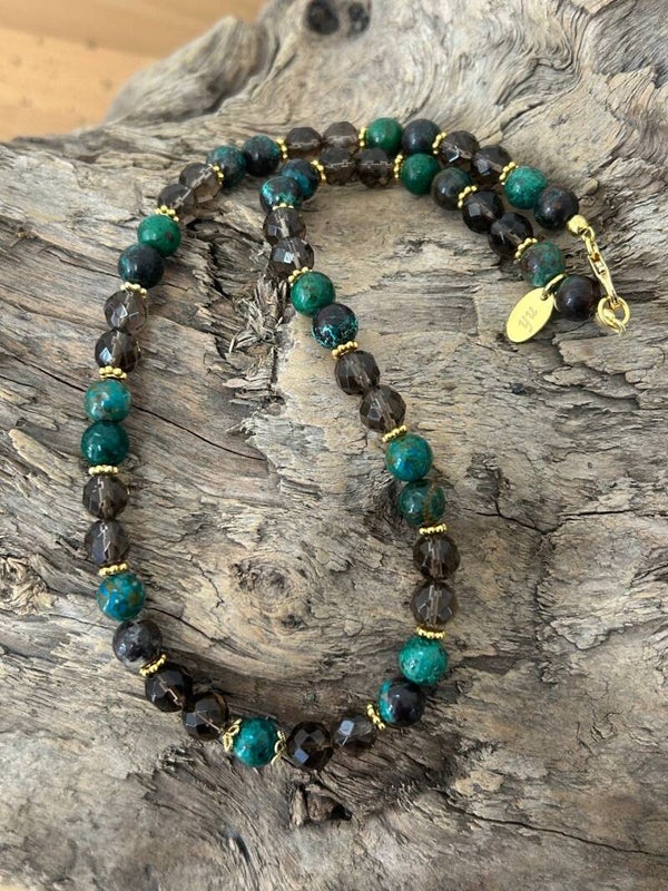 Halskette - Chrysokoll & Rauchquarz (H471)