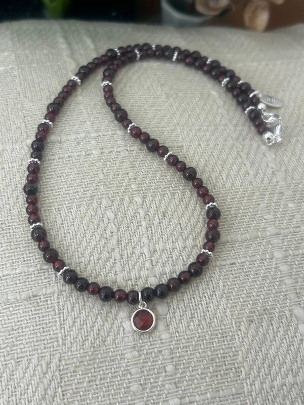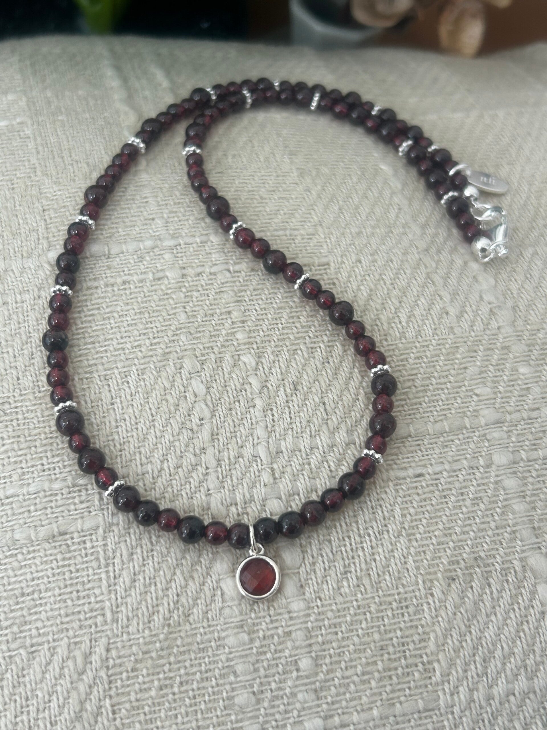 Länge auf diesem Bild: 44cm (Deine genaue Wunschlänge im Kommentar eintragen und die entsprechende Preisklasse wählen); Silber 925 Einfassung Anhänger (Durchmesser 8mm, facettiert), Elemente und Verschluss; Kugeln 3-4mm