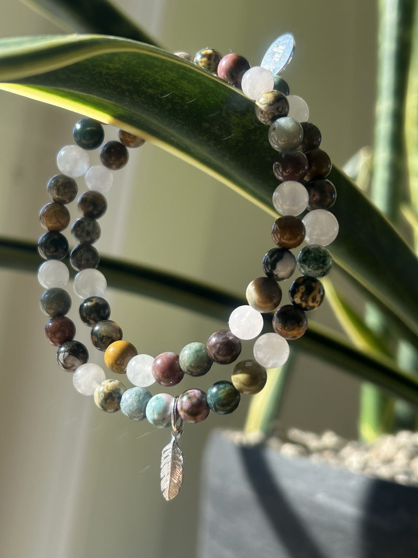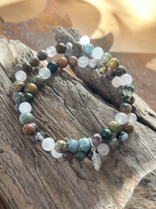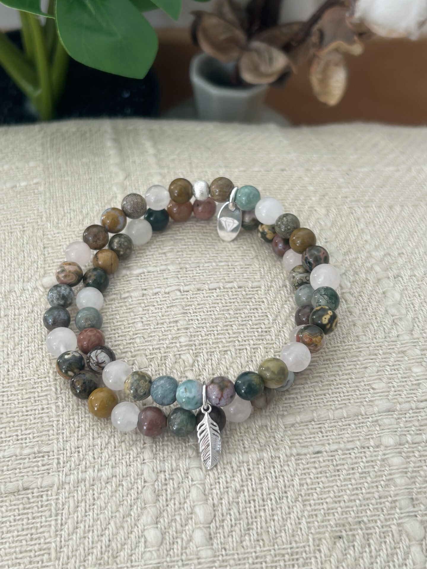 Armband (2-fach) - Ozean-Achat & Rosenquarz (A646)