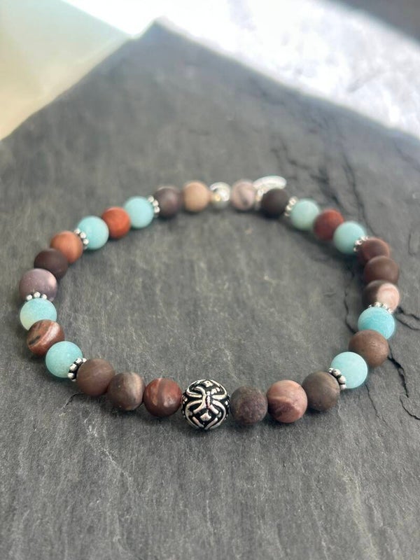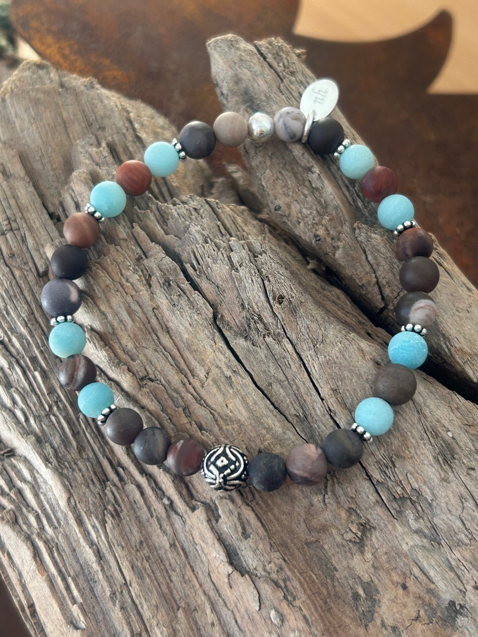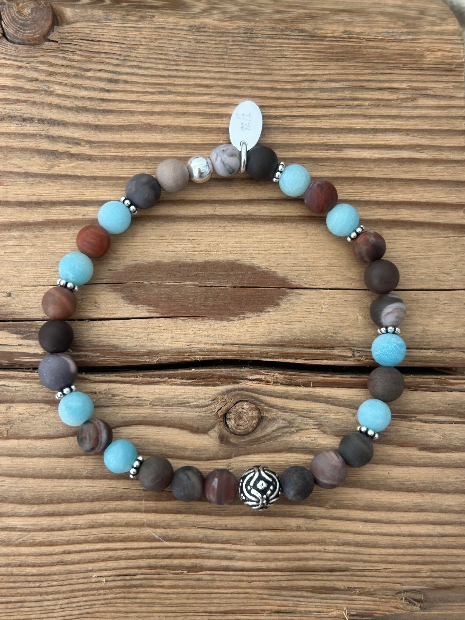 Hinweis: mit Stretch-Band (Länge 15 - 22 cm wählbar); Silber 925 geschwärzte Kugel (verziert) und Elemente; Kugeln 6mm matt