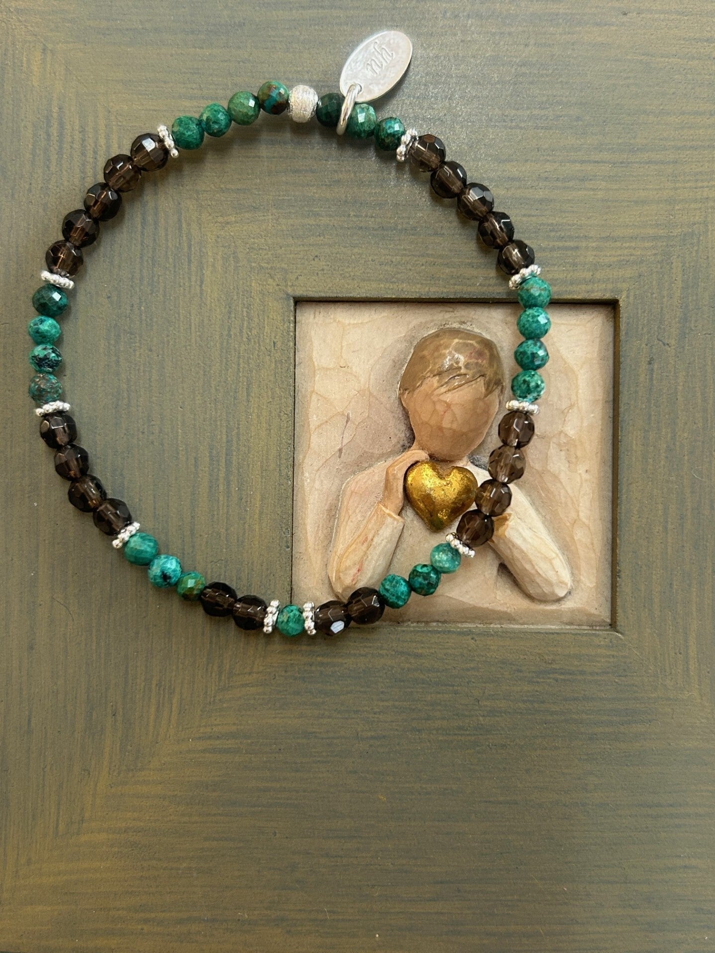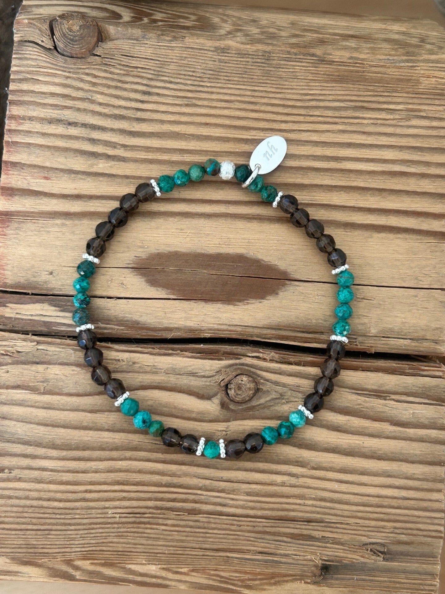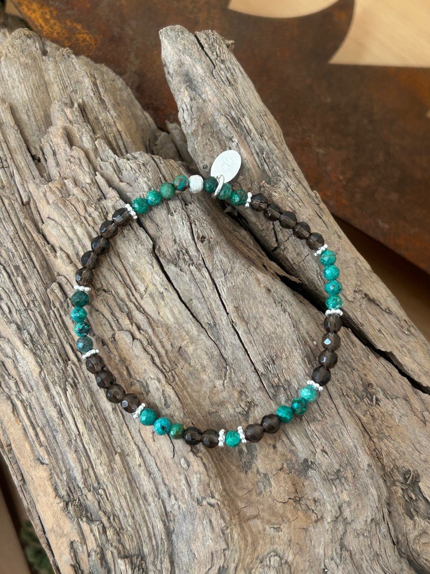 Heilsteine (Link zu Beschreibung und Wirkung): Chrysokoll, Rauchquarz