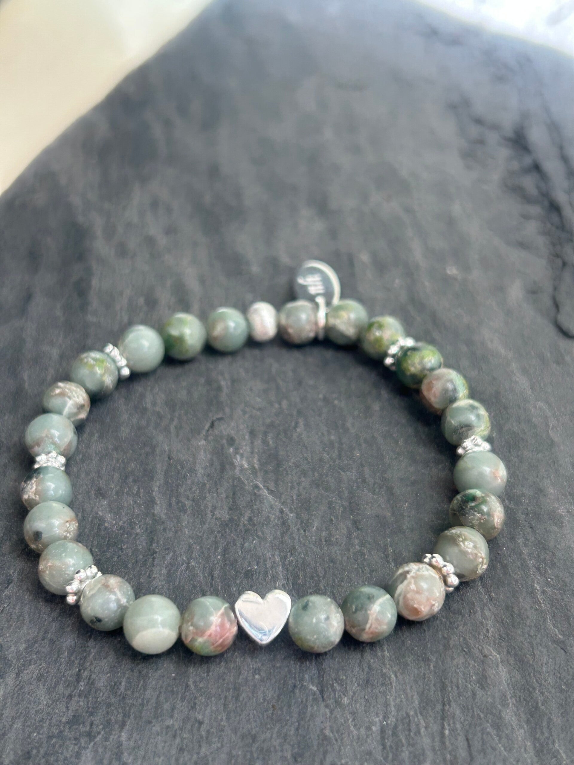 Hinweis: mit Stretch-Band (Wunschlänge im Kommentar bei der Bestellung eintragen!); Silber 925 Herz und Elemente; Kugeln 6mm