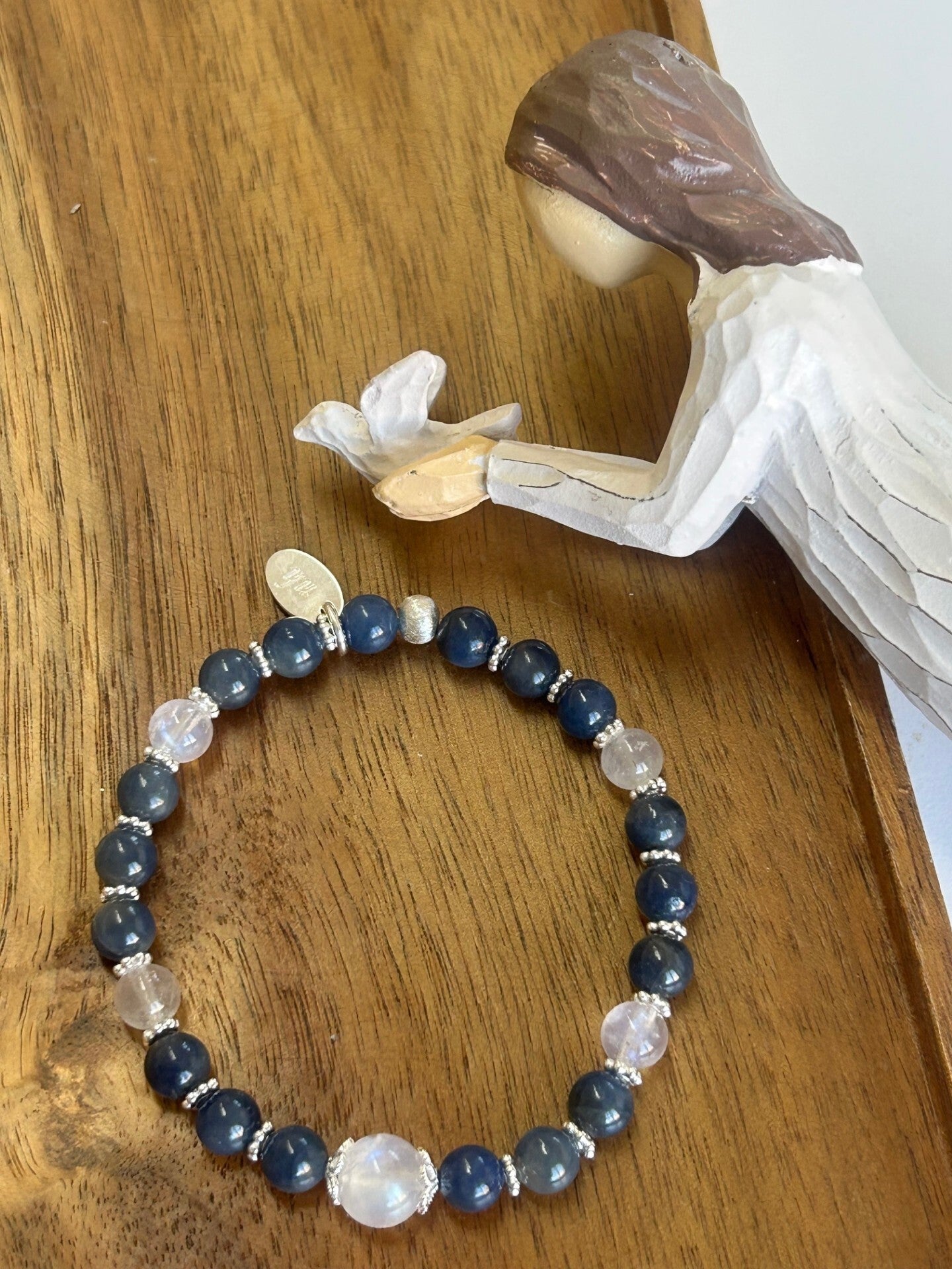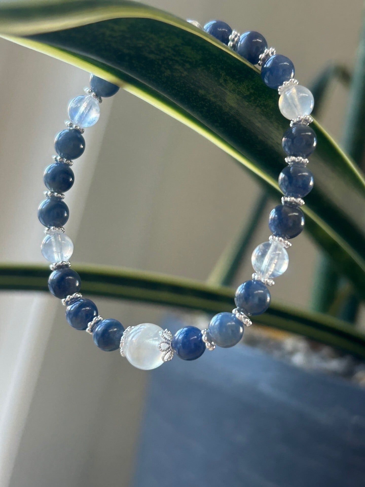 Heilsteine (Link zu Beschreibung und Wirkung): Labradorit weiss, Mondstein weiss Top mit Blau-Schimmer, Saphir blau