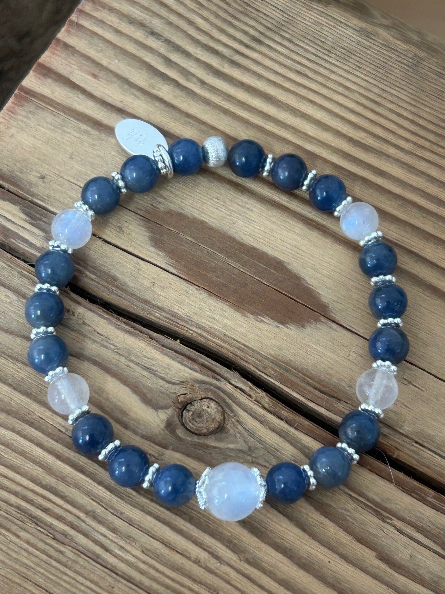 Armband - Saphir blau & Mondstein Regenbogen (A657)