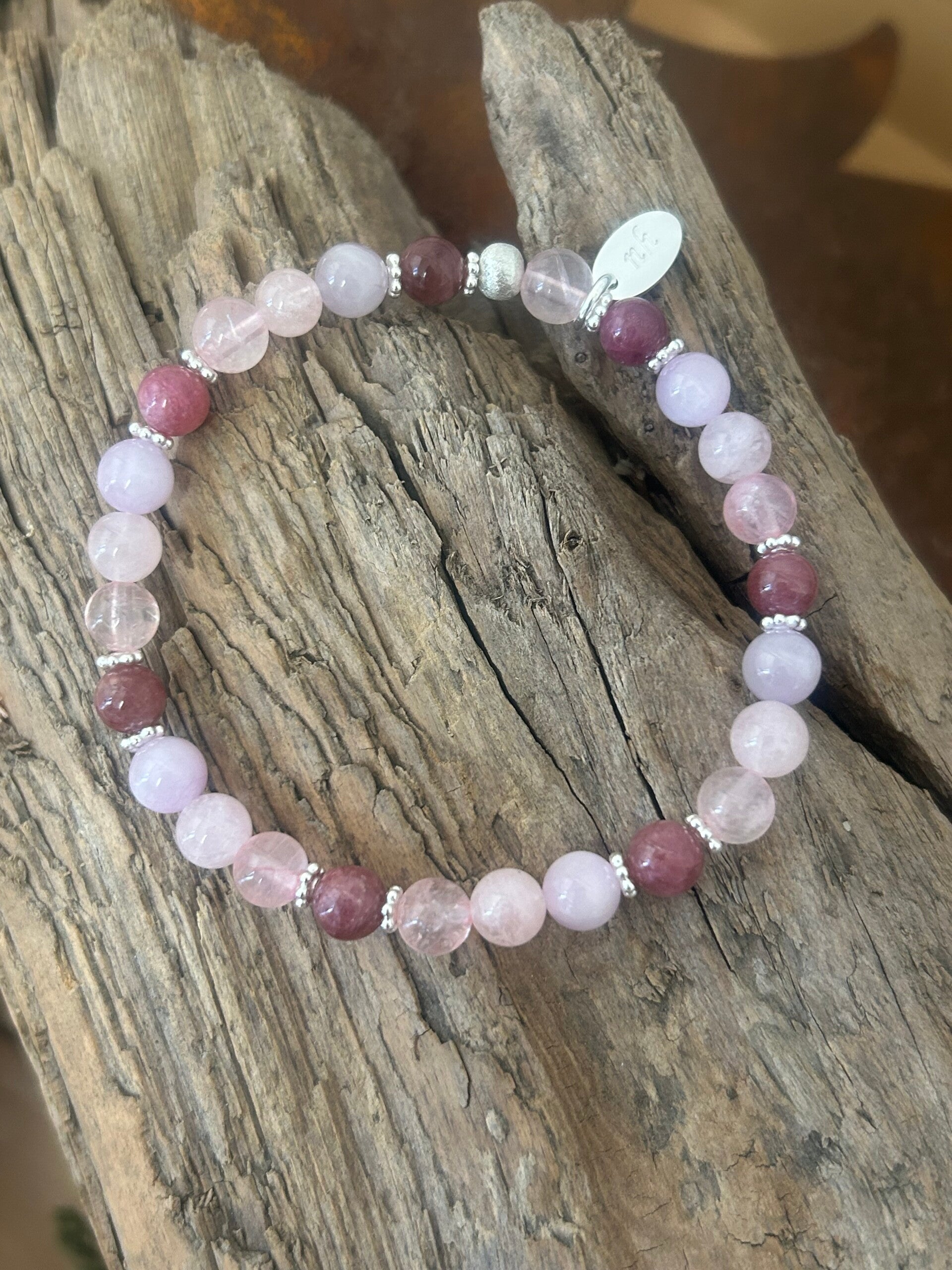 Heilsteine (Link zu Beschreibung und Wirkung): Beryll rosa (Morganit), Kunzit, Rosenquarz, Turmalin rosa (Rubellit)
