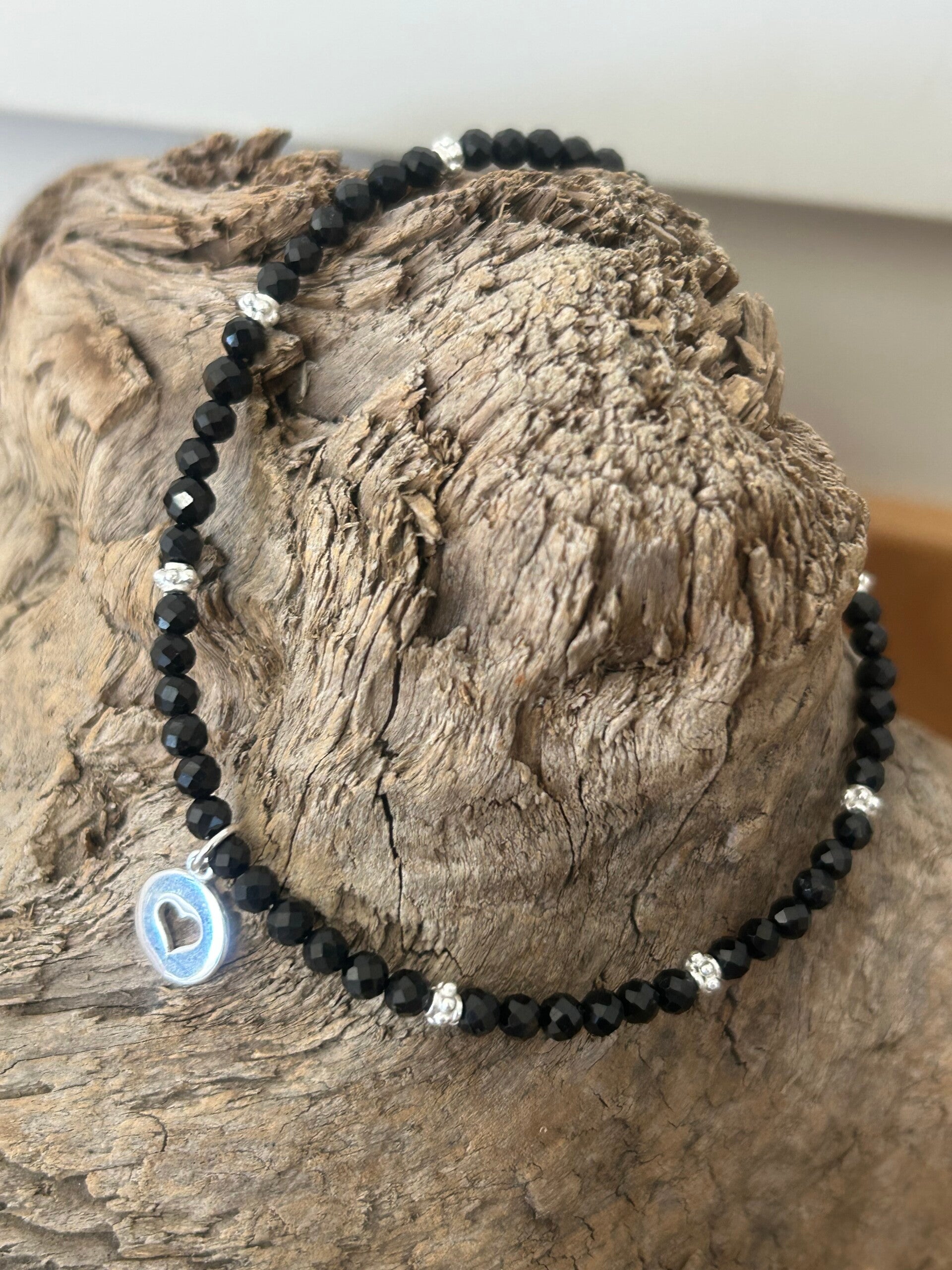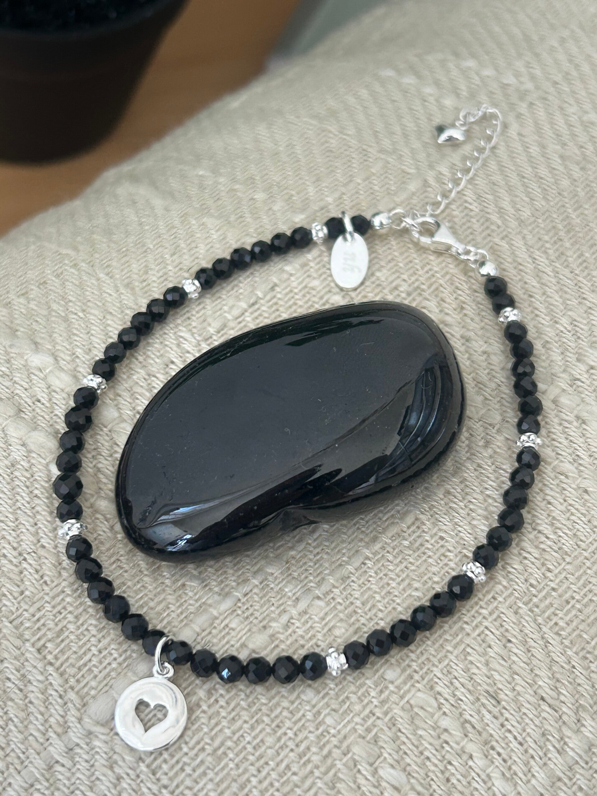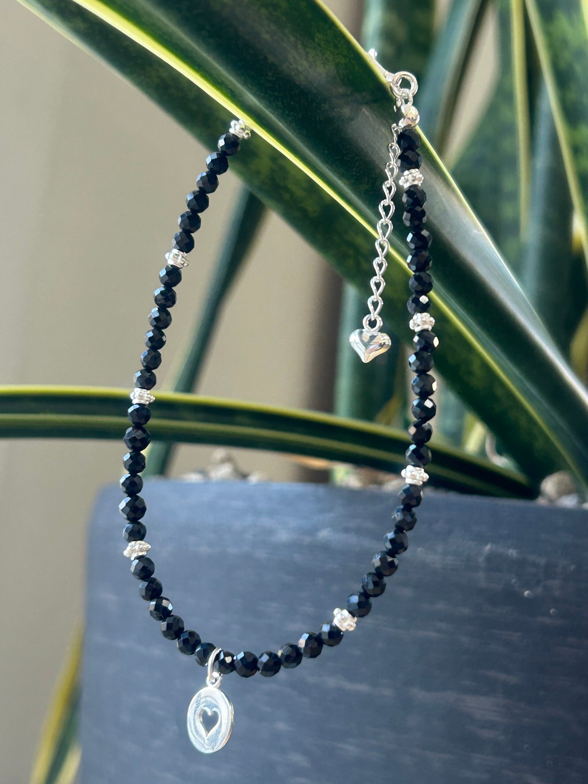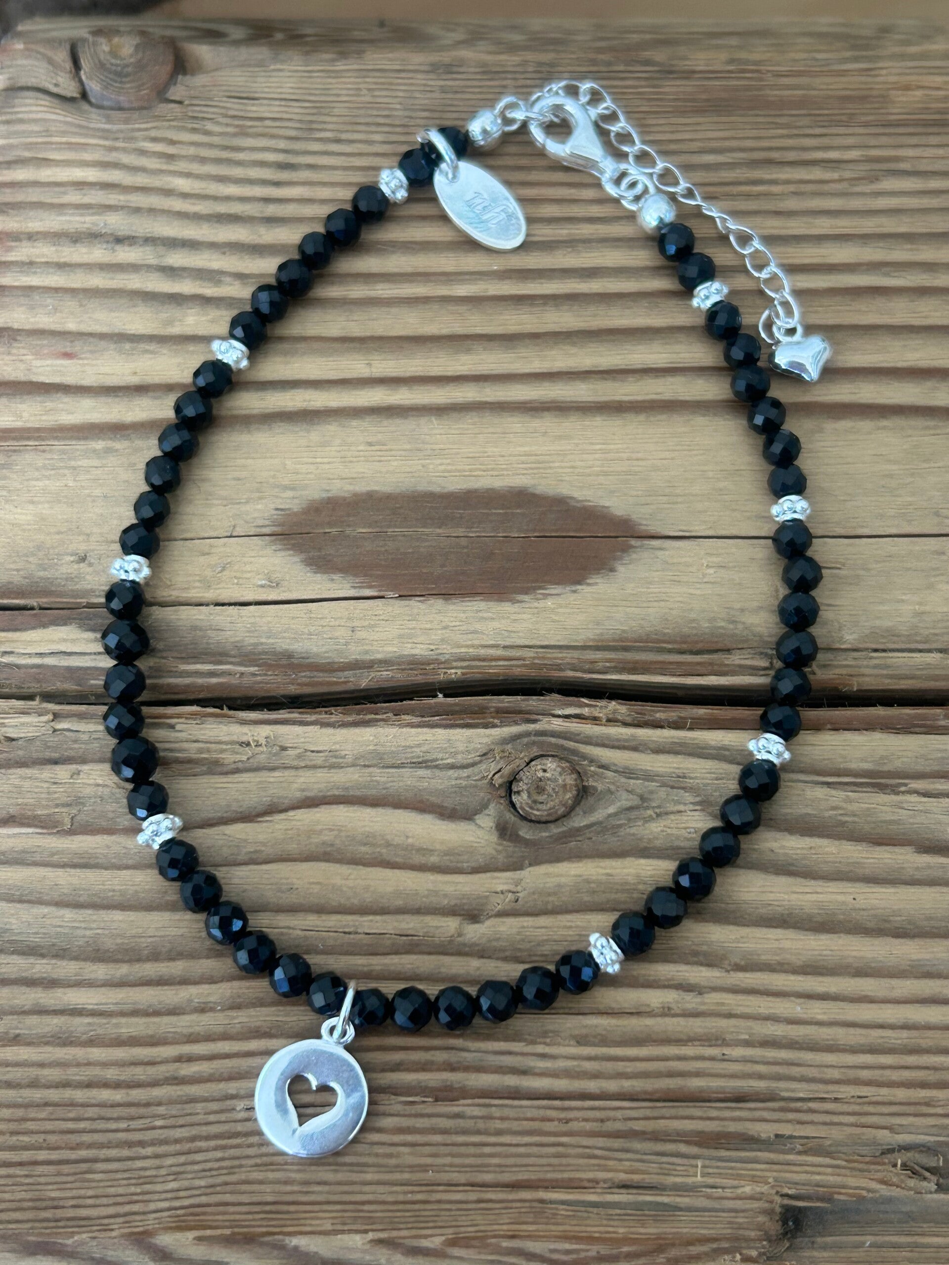 Hinweis: mit Schmuck-Draht (Länge 18 - 30 cm wählbar); Silber 925 Anhänger "Herz", Elemente, Verschluss und 5cm-Verlängerungsstück; Kugeln 4mm facettiert