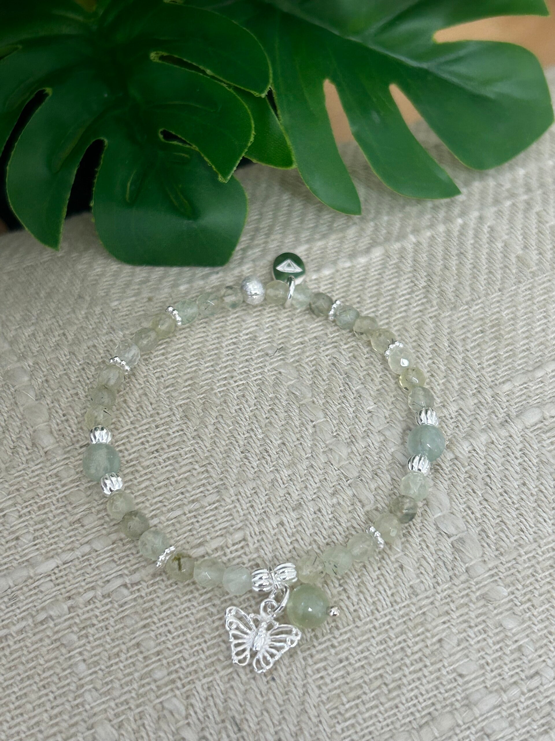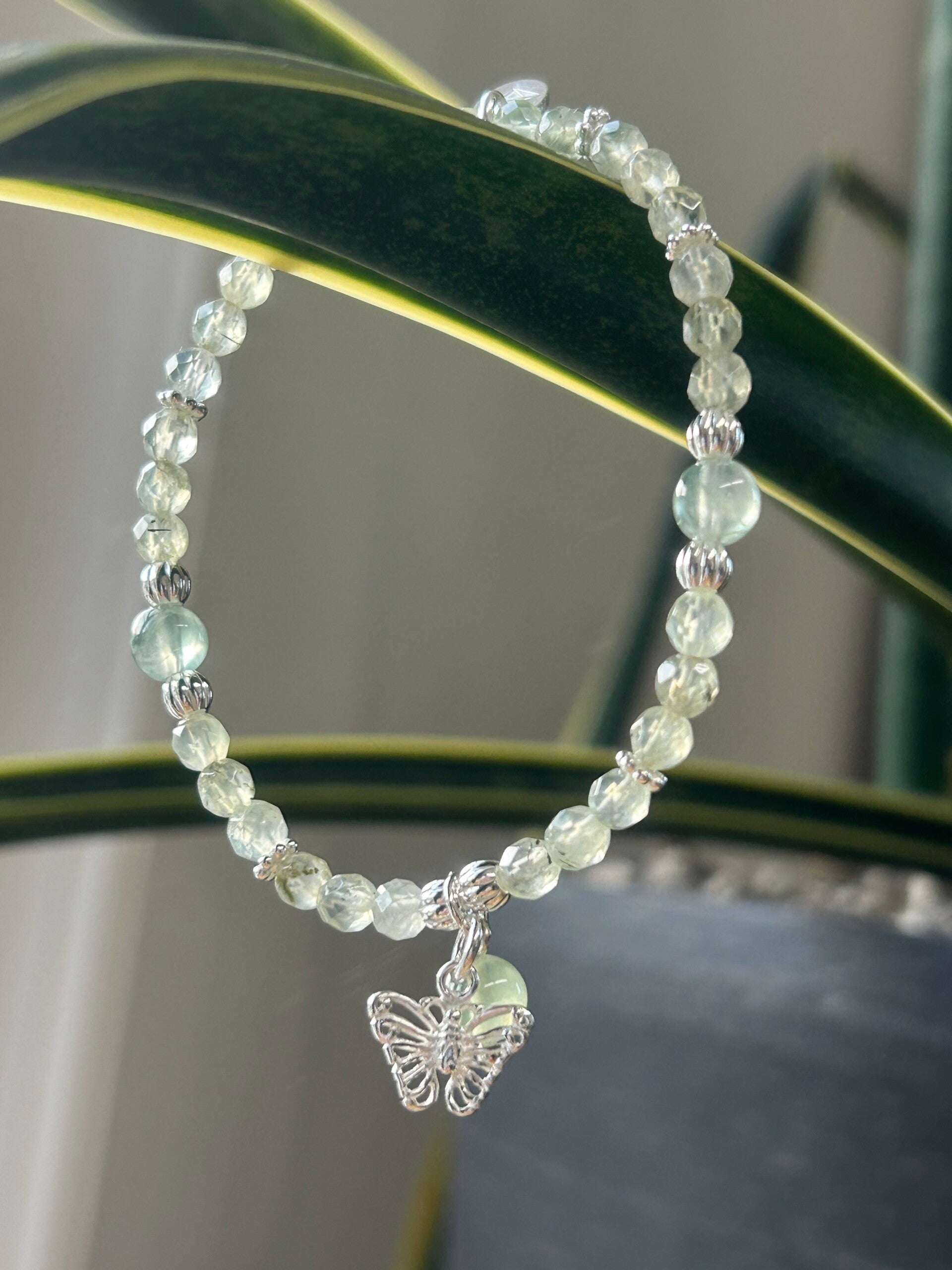 Hinweis: mit Stretch-Band (Länge 15 - 22 cm wählbar); Silber 925 Anhänger "Schmetterling" und Elemente; Kugeln 6mm und 4mm facettiert.