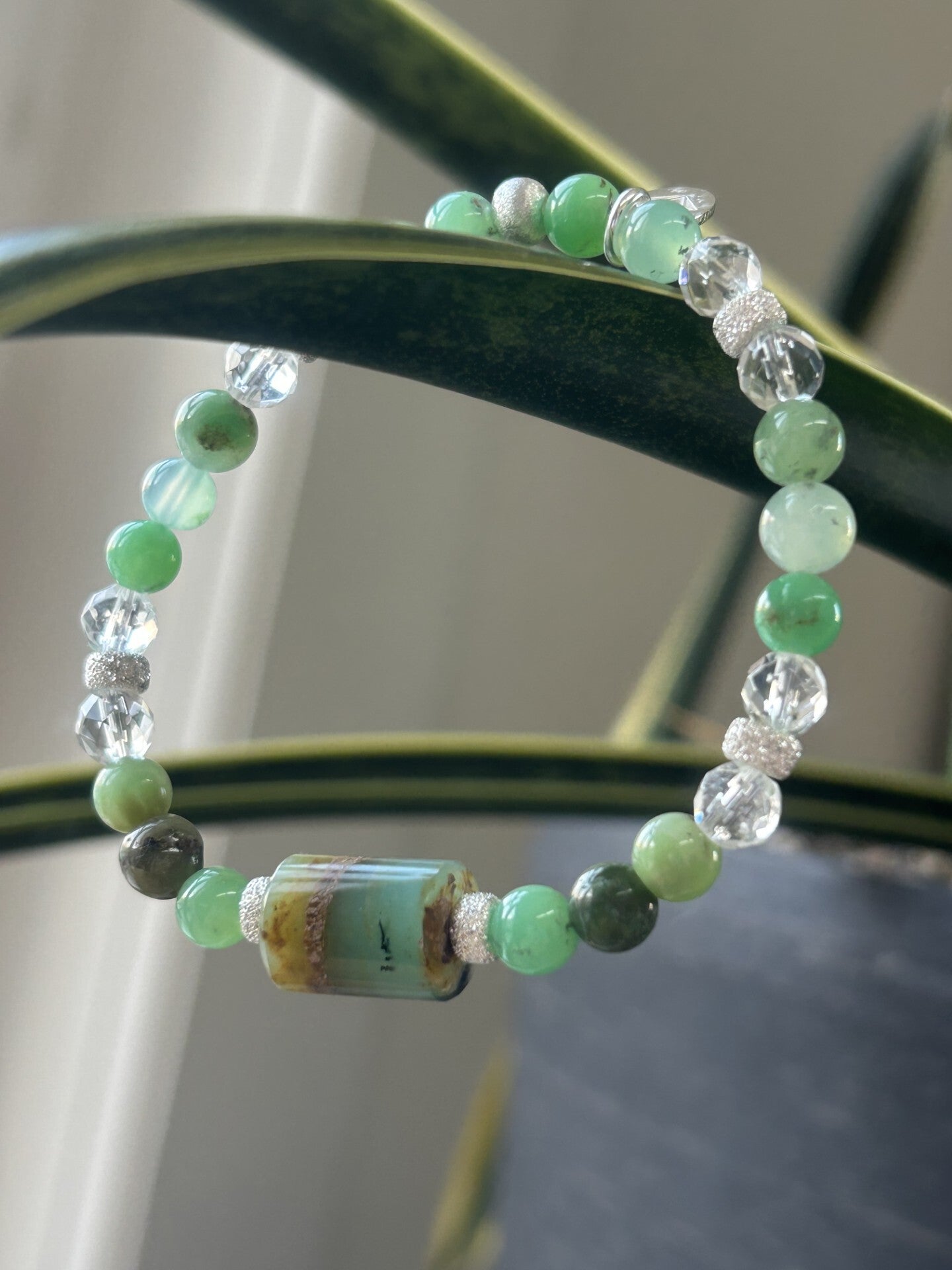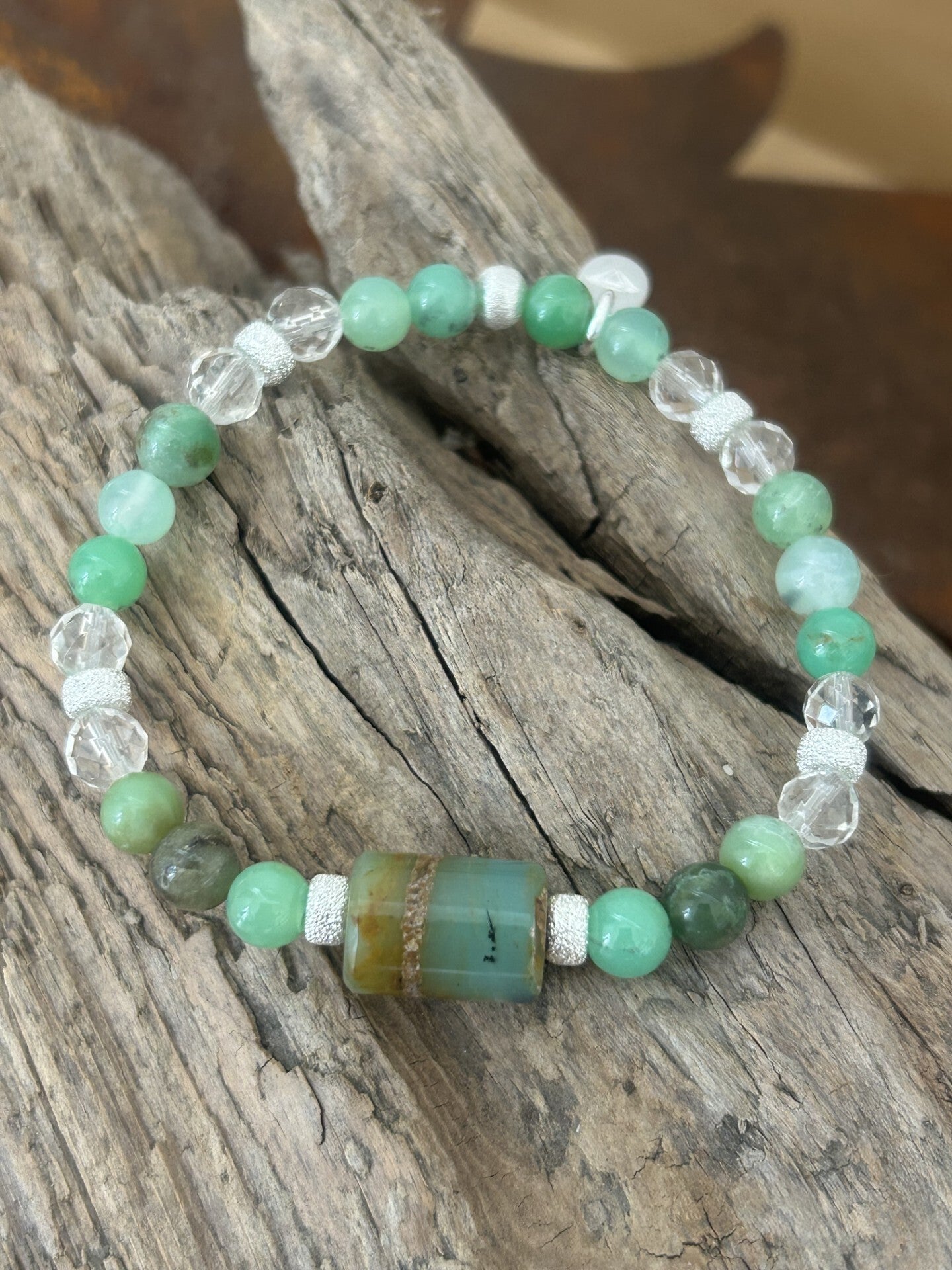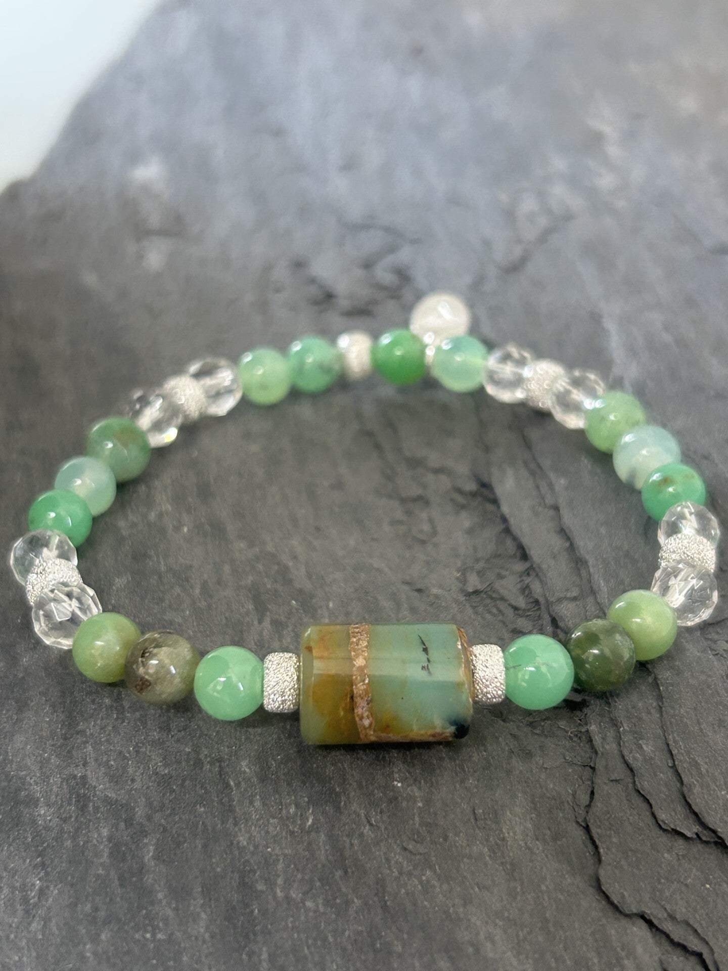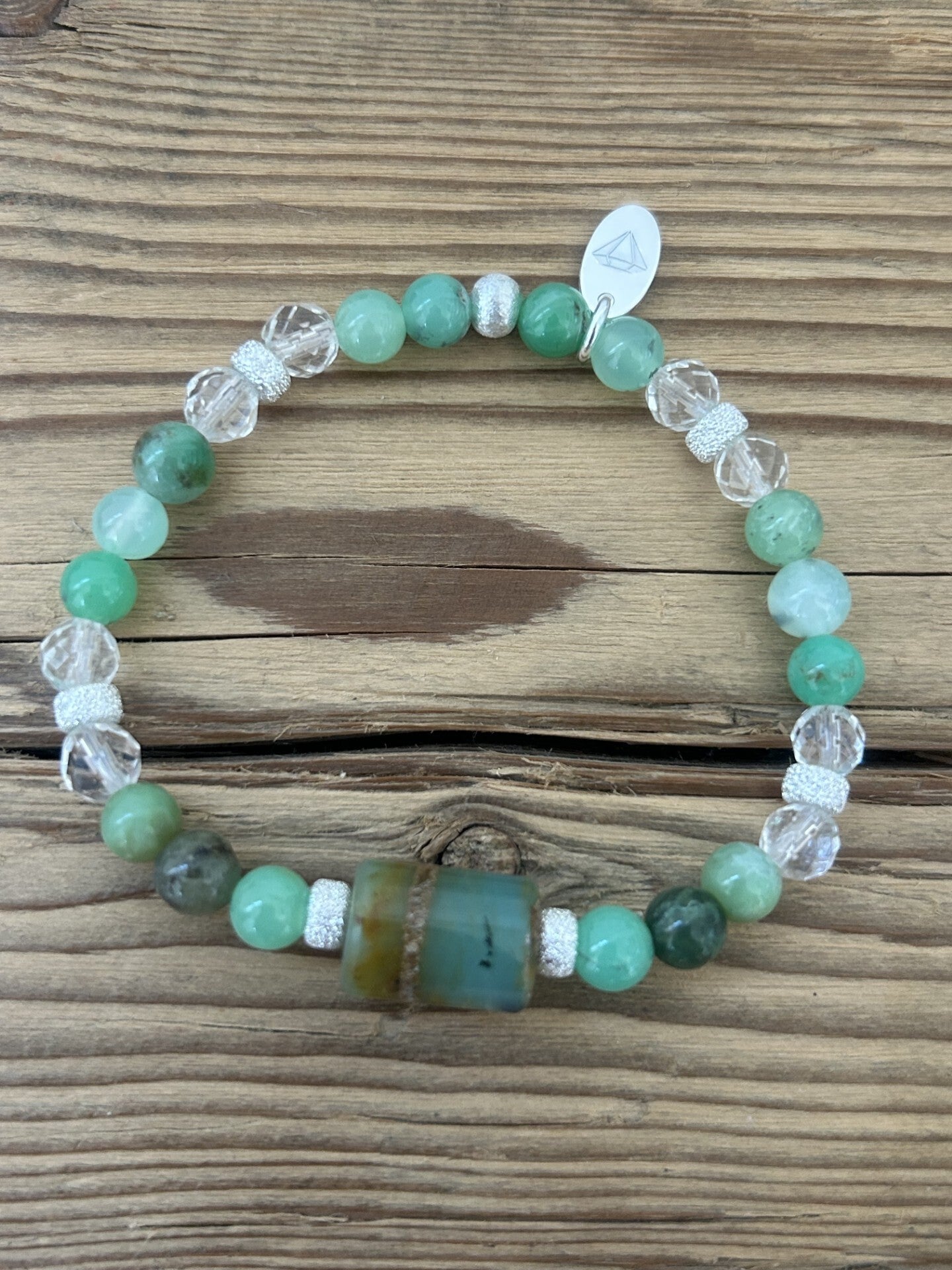 Heilsteine (Link zu Beschreibung und Wirkung): Bergkristall, Chrysopras