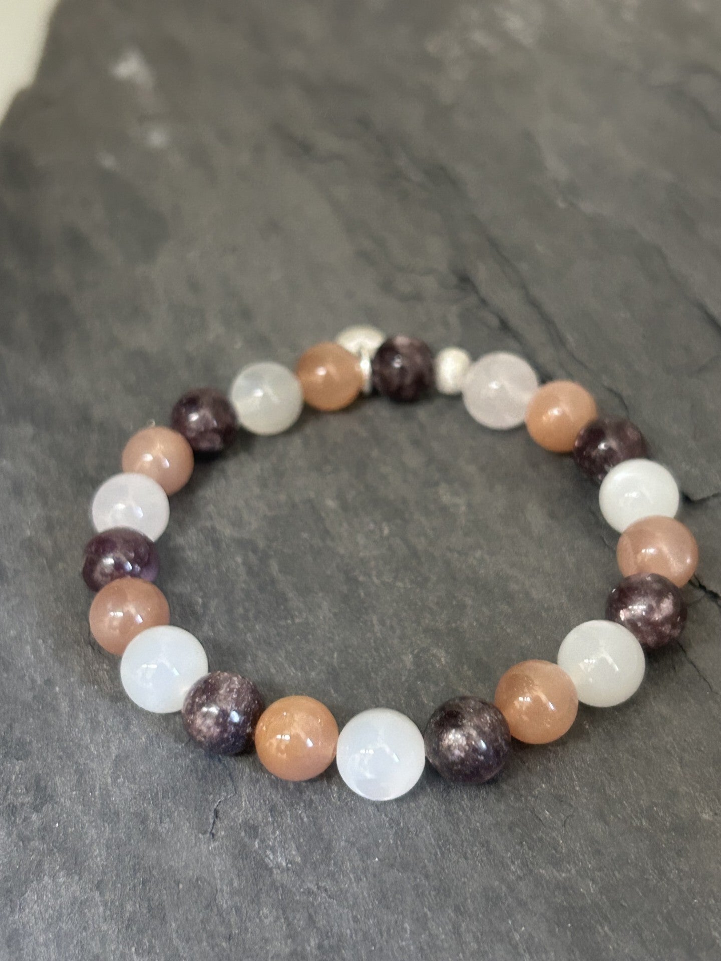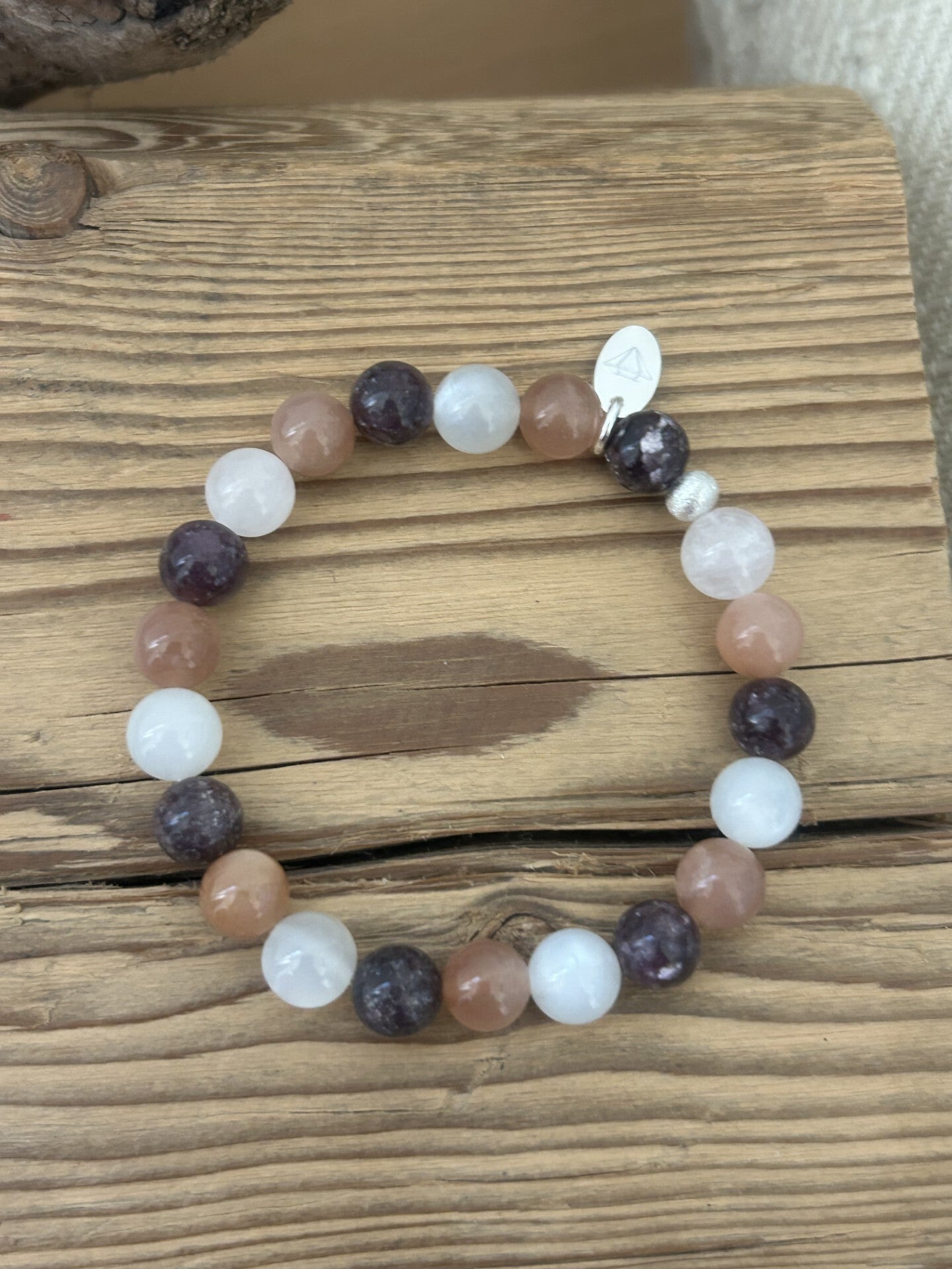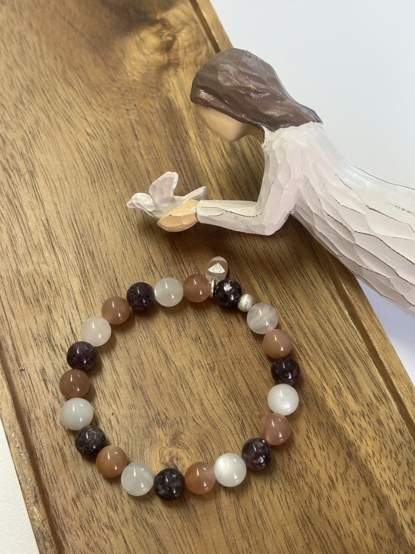Heilsteine (Link zu Beschreibung und Wirkung): Lepidolith, Mondstein Peach, Mondstein weiss