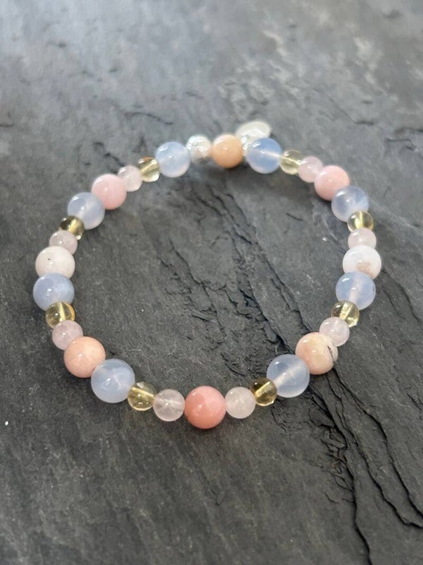 Heilsteine (Link zu Beschreibung und Wirkung): Andenopal, Chalcedon blau, Citrin, Rosenquarz