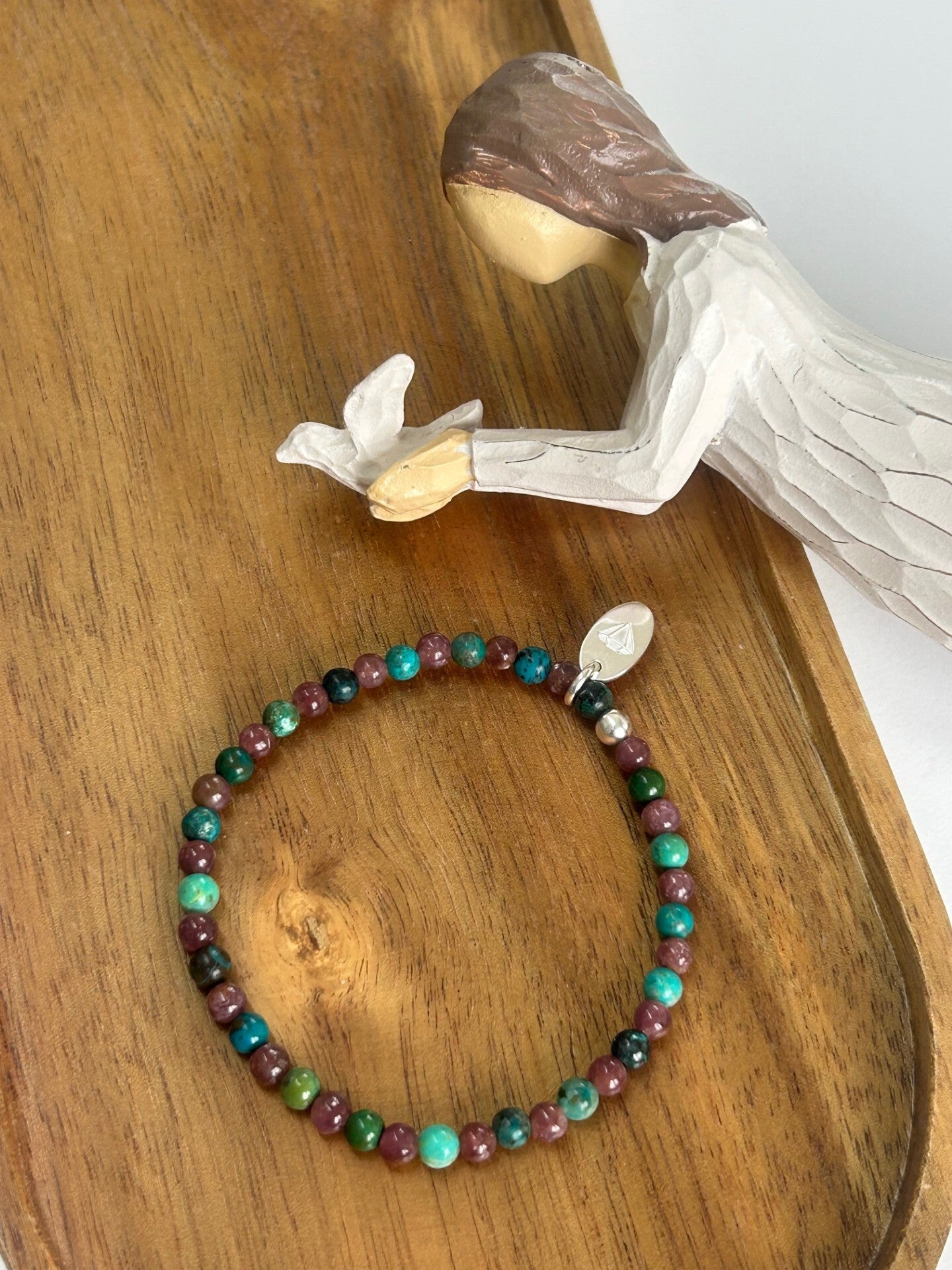Heilsteine (Link zu Beschreibung und Wirkung): Chrysokoll, Lepidolith