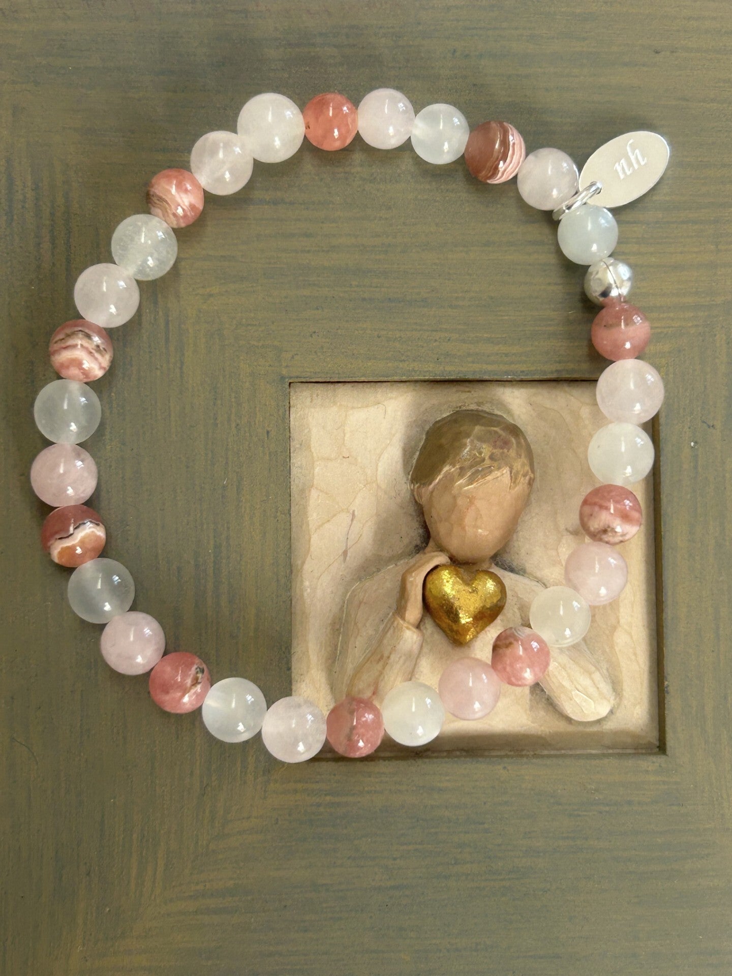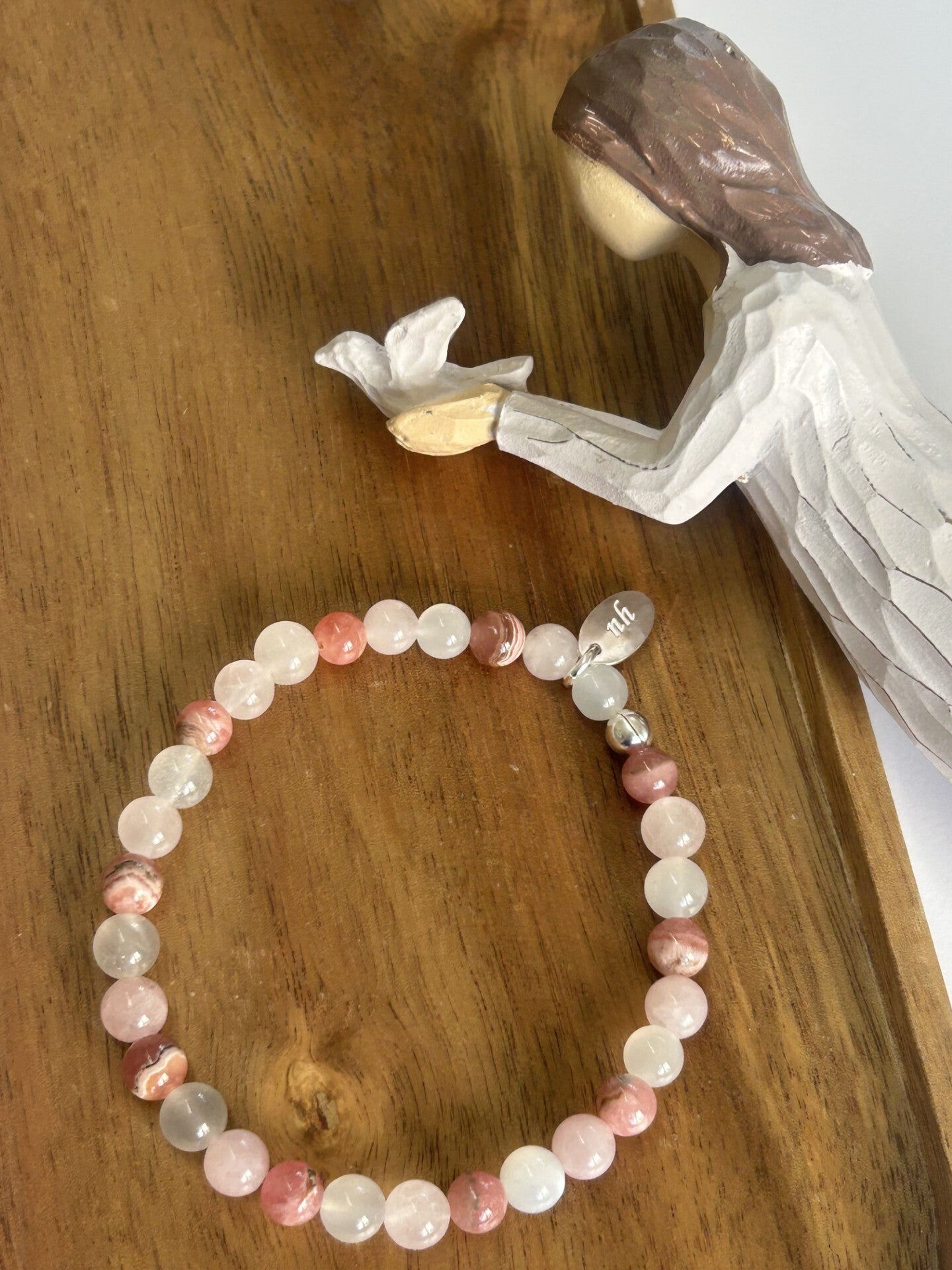 Heilsteine (Link zu Beschreibung und Wirkung): Mondstein, Rhodochrosit, Rosenquarz