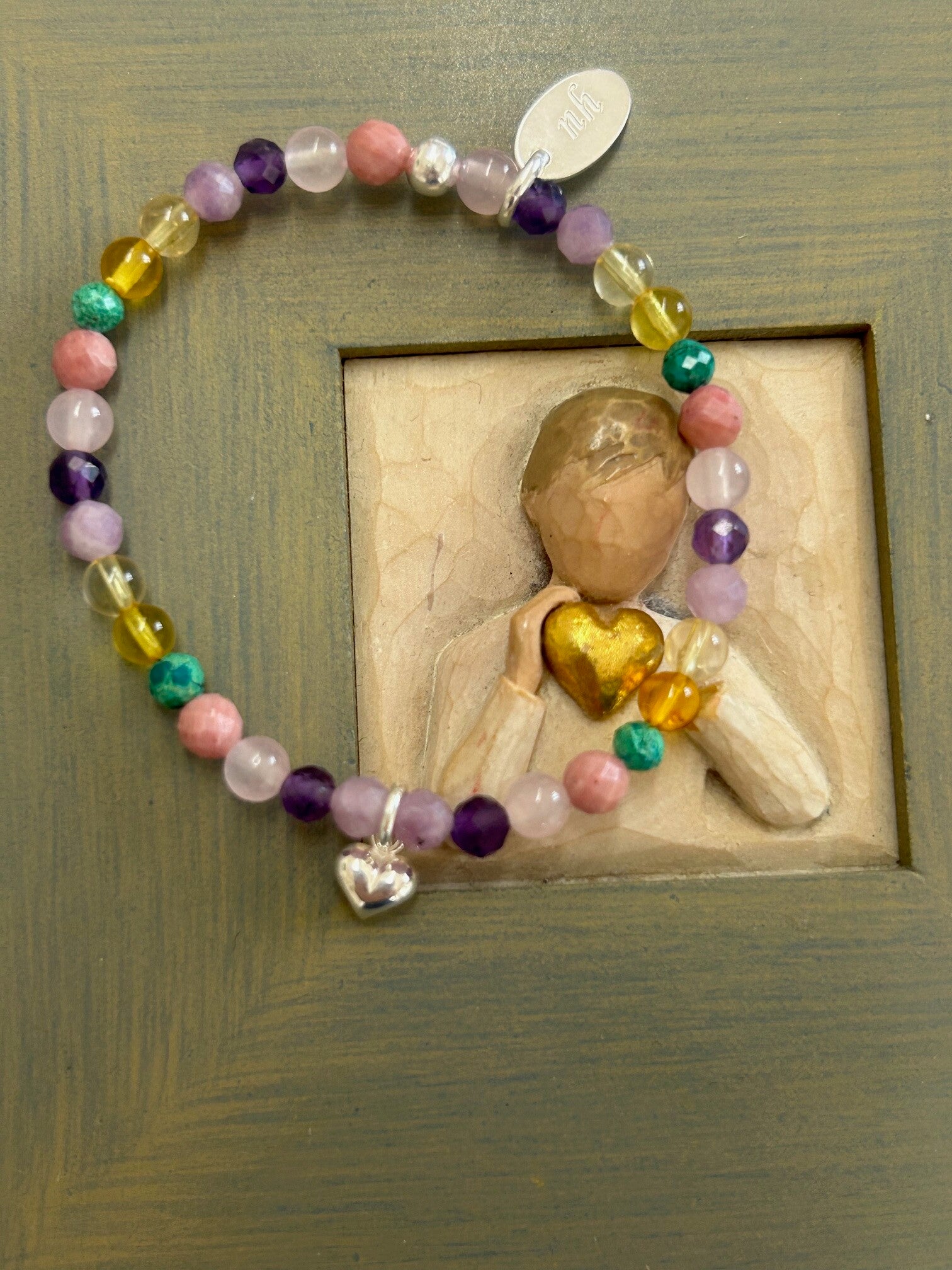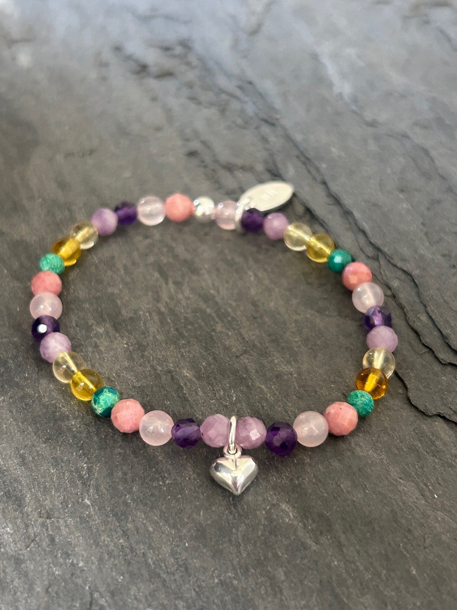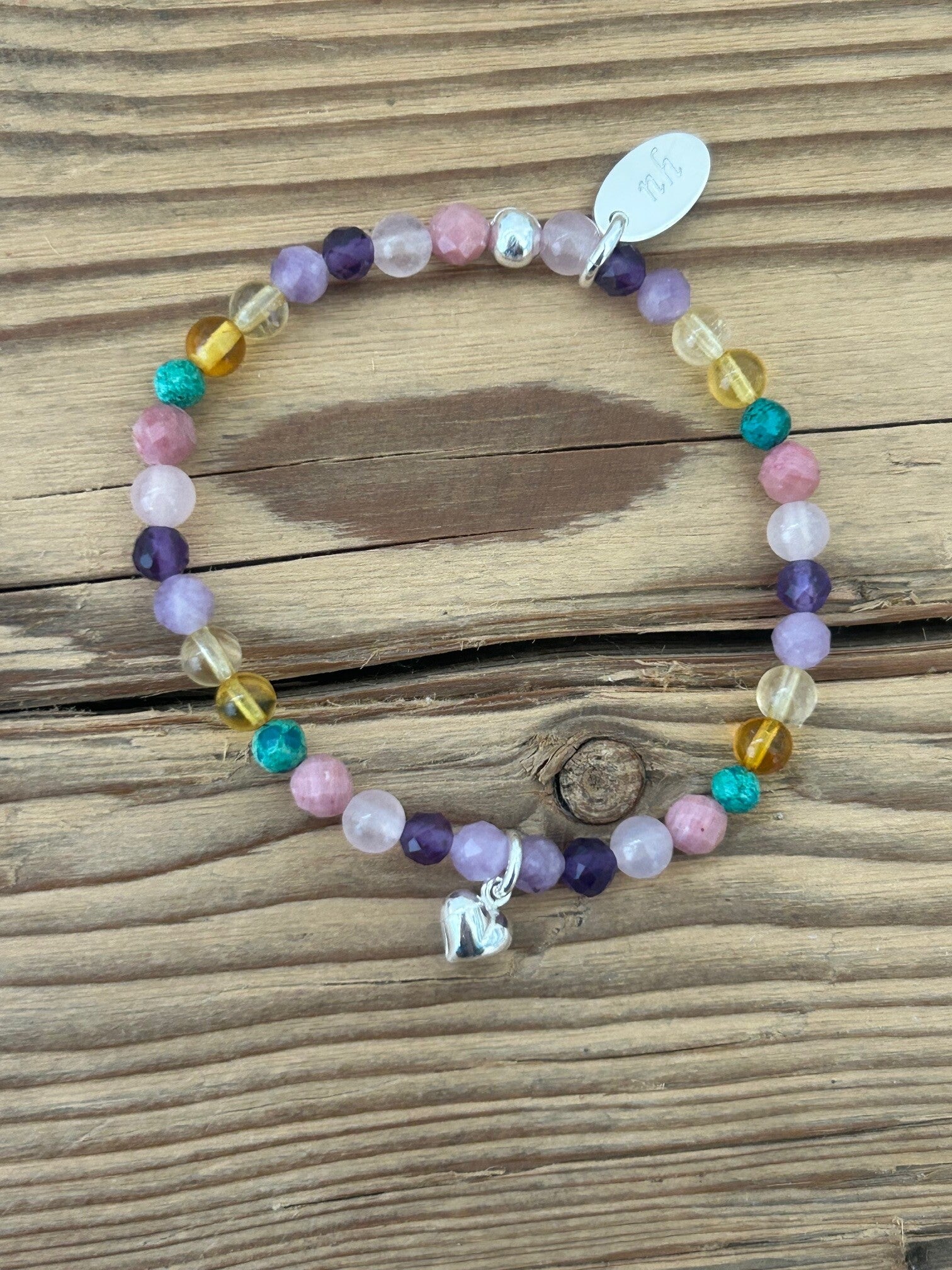 Hinweis: mit Stretch-Band (Länge 13 - 22 cm wählbar); Silber 925 Anhänger "Herz"; Kugeln 4mm und 4mm facettiert