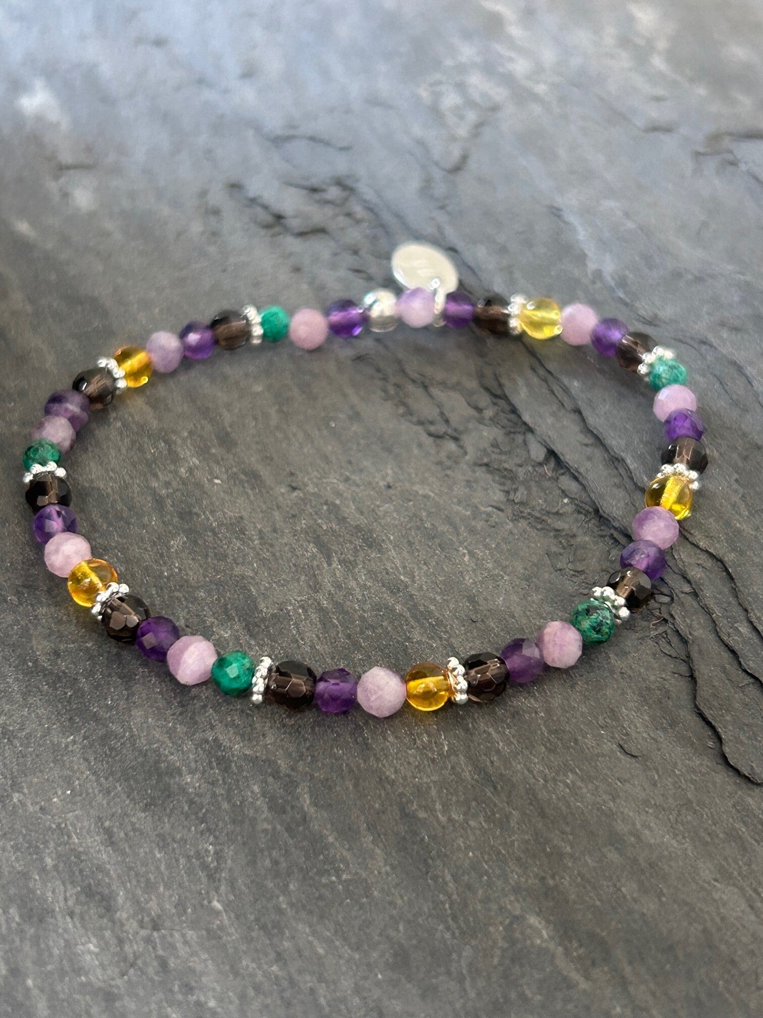 Heilsteine (Link zu Beschreibung und Wirkung): Amethyst, Bernstein, Chrysokoll, Lepidolith, Rauchquarz