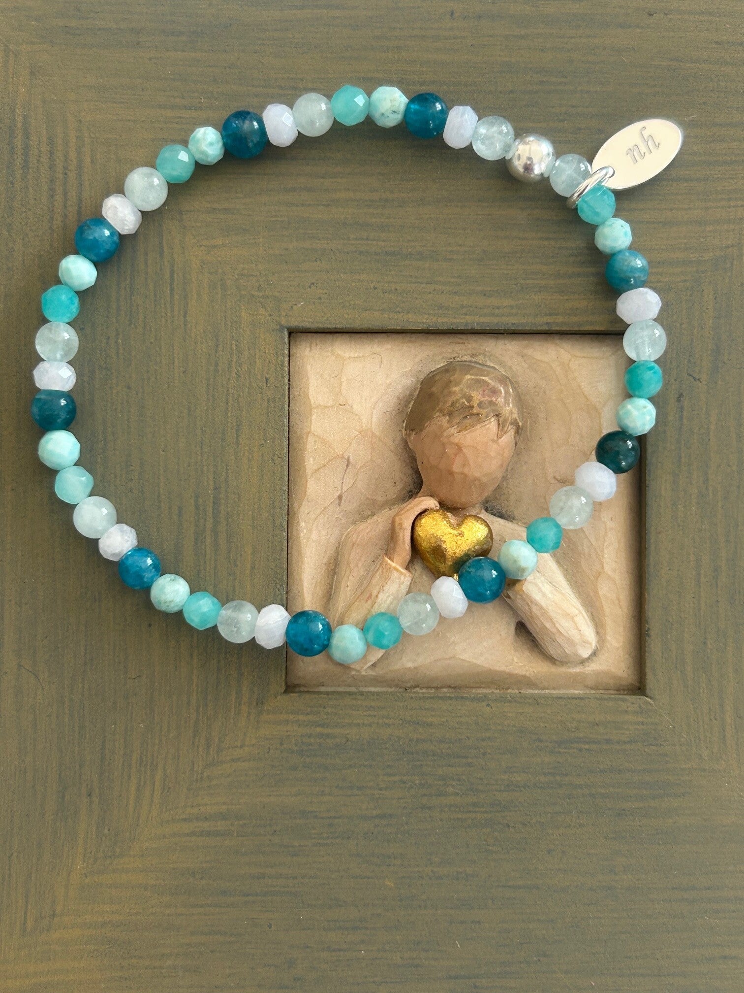 Heilsteine (Link zu Beschreibung und Wirkung): Amazonit, Apatit blau, Beryll blau (Aquamarin), Chalcedon blau, Larimar
