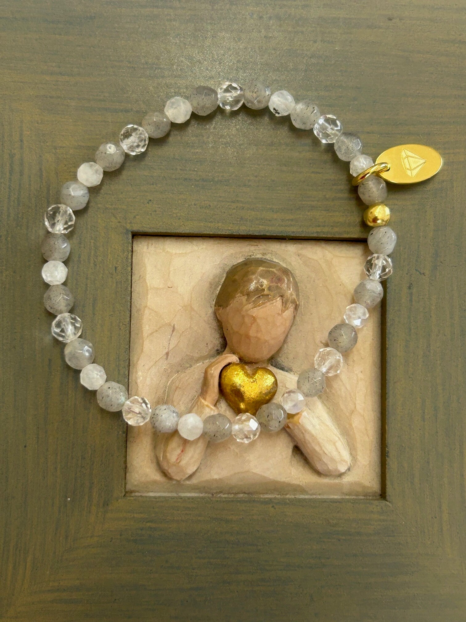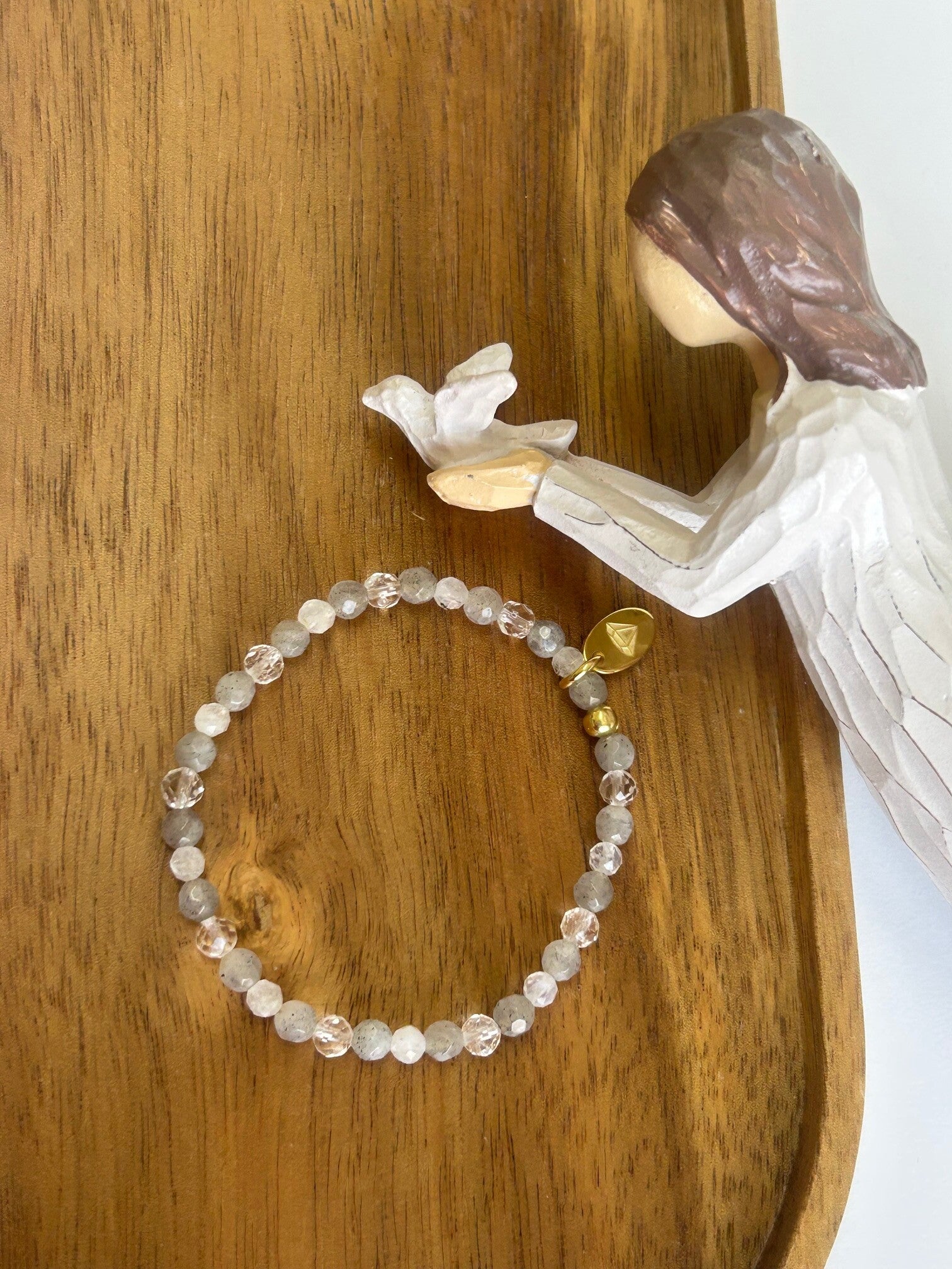 Armband - Bergkristall, Labradorit & Mondstein Regenbogen (A713)
