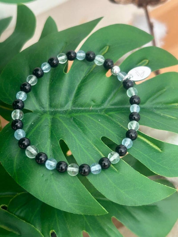 (Kinder-) Armband - Aquamarin, Fluorit & Onyx (A716)