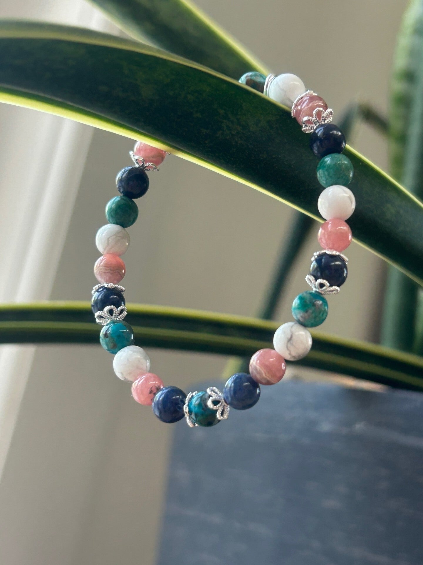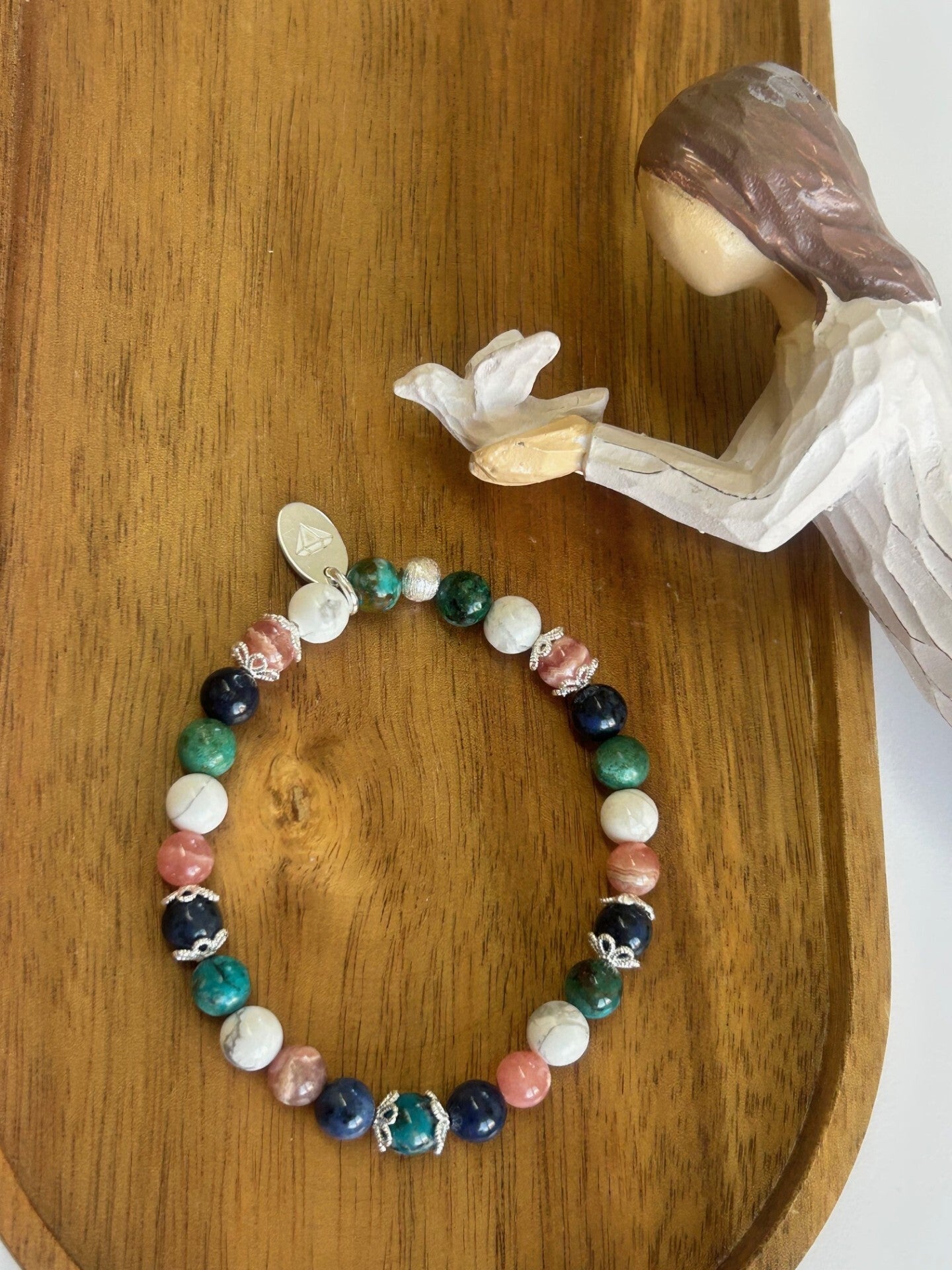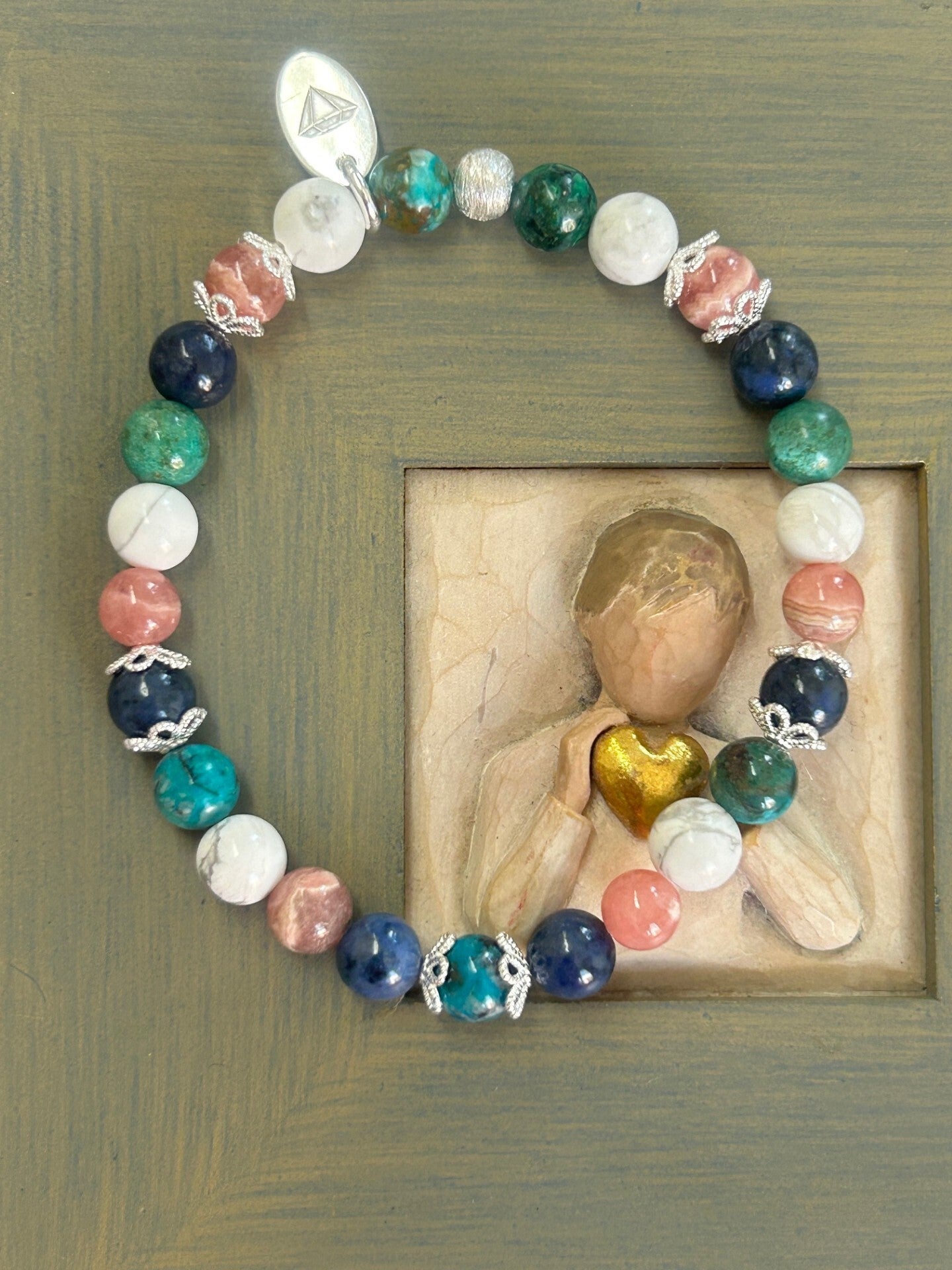 Heilsteine (Link zu Beschreibung und Wirkung): Chrysokoll, Dumortierit, Magnesit, Rhodochrosit