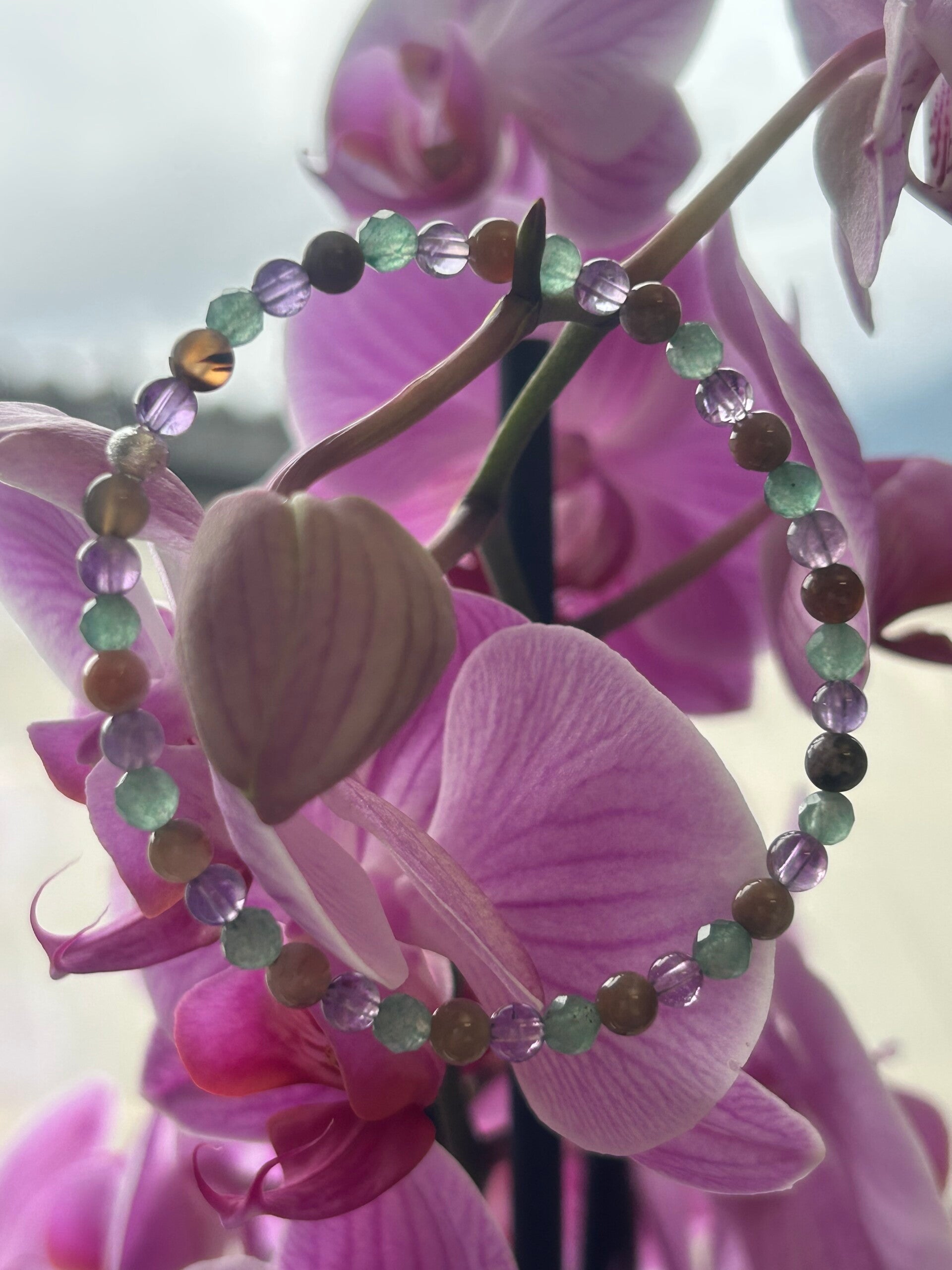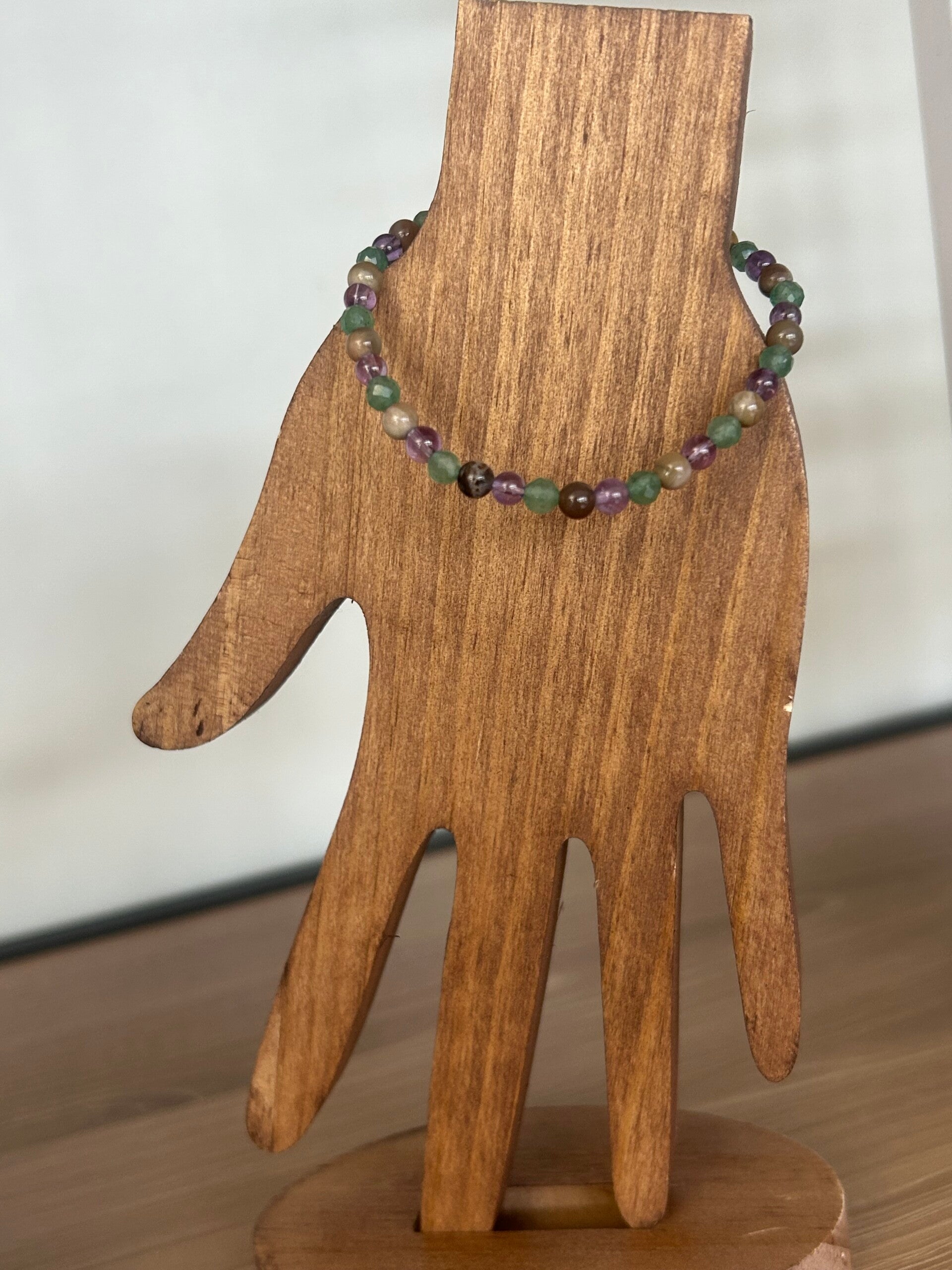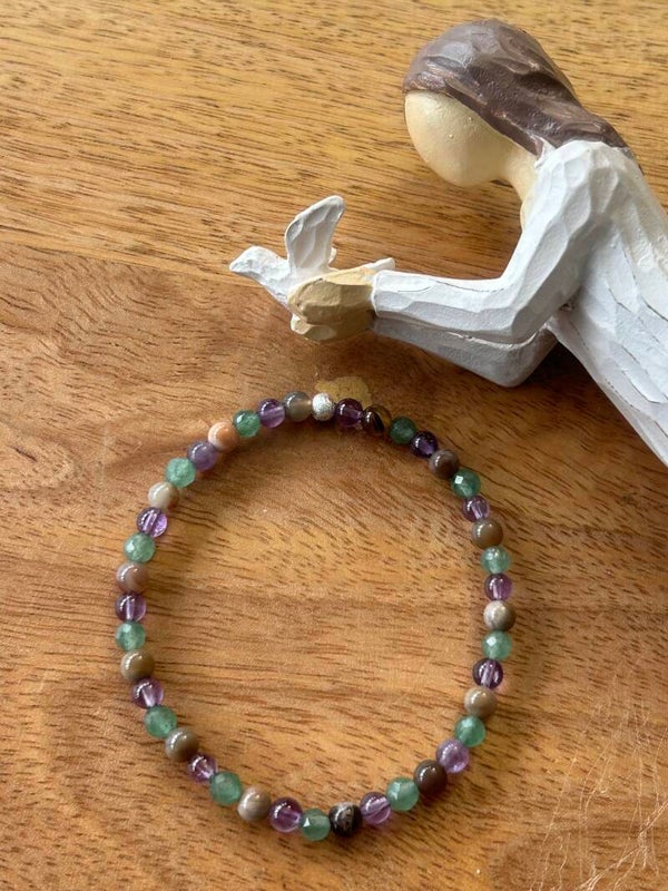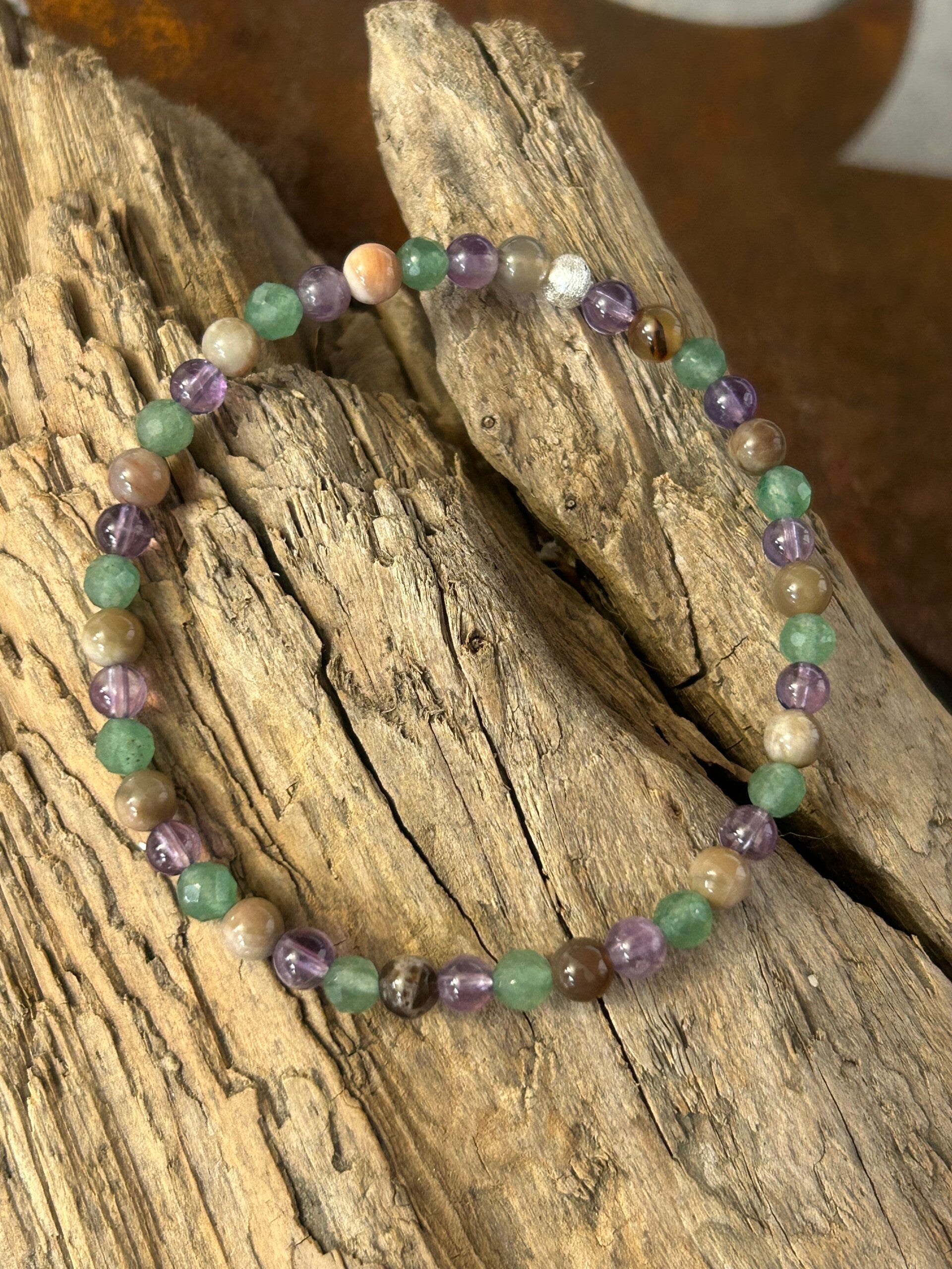 Heilsteine (Link zu Beschreibung und Wirkung): Amethyst, Aventurin-Quarz grün, Versteinertes Holz