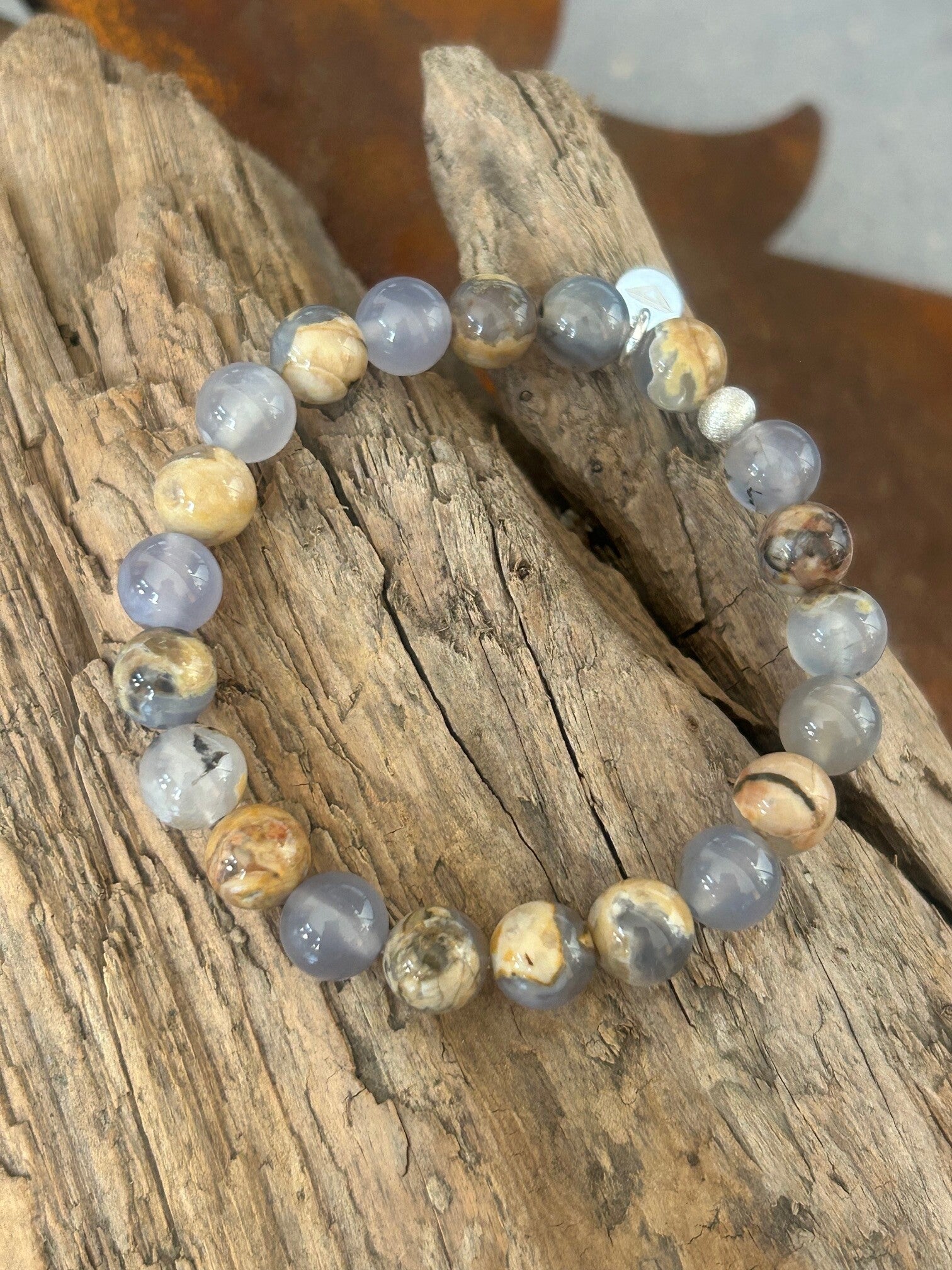 Armband - Chalcedon blau mit Muttergestein AAA-Qualität (A730)