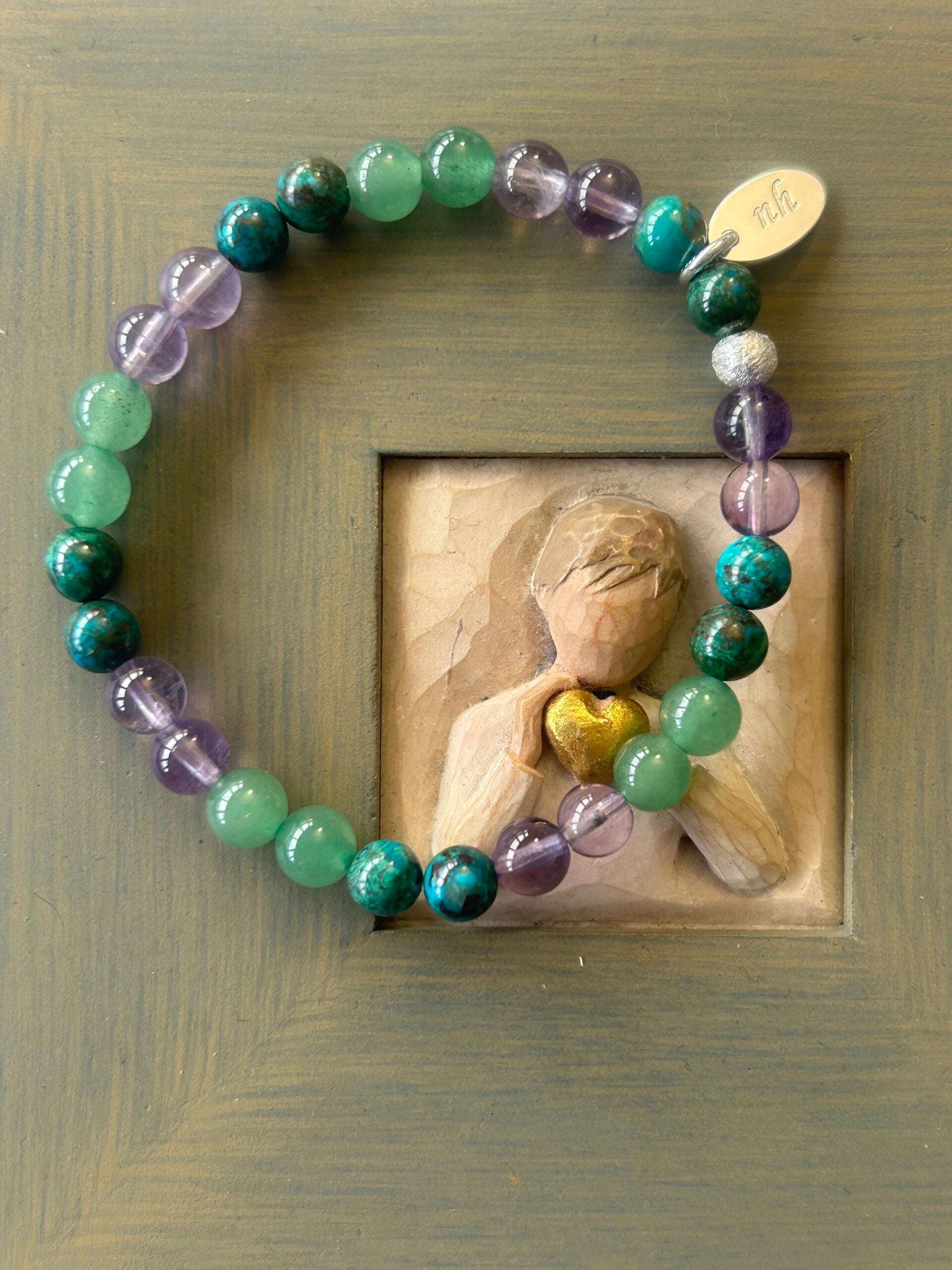 Heilsteine (Link zu Beschreibung und Wirkung): Amethyst, Aventurin-Quarz grün, Chrysokoll