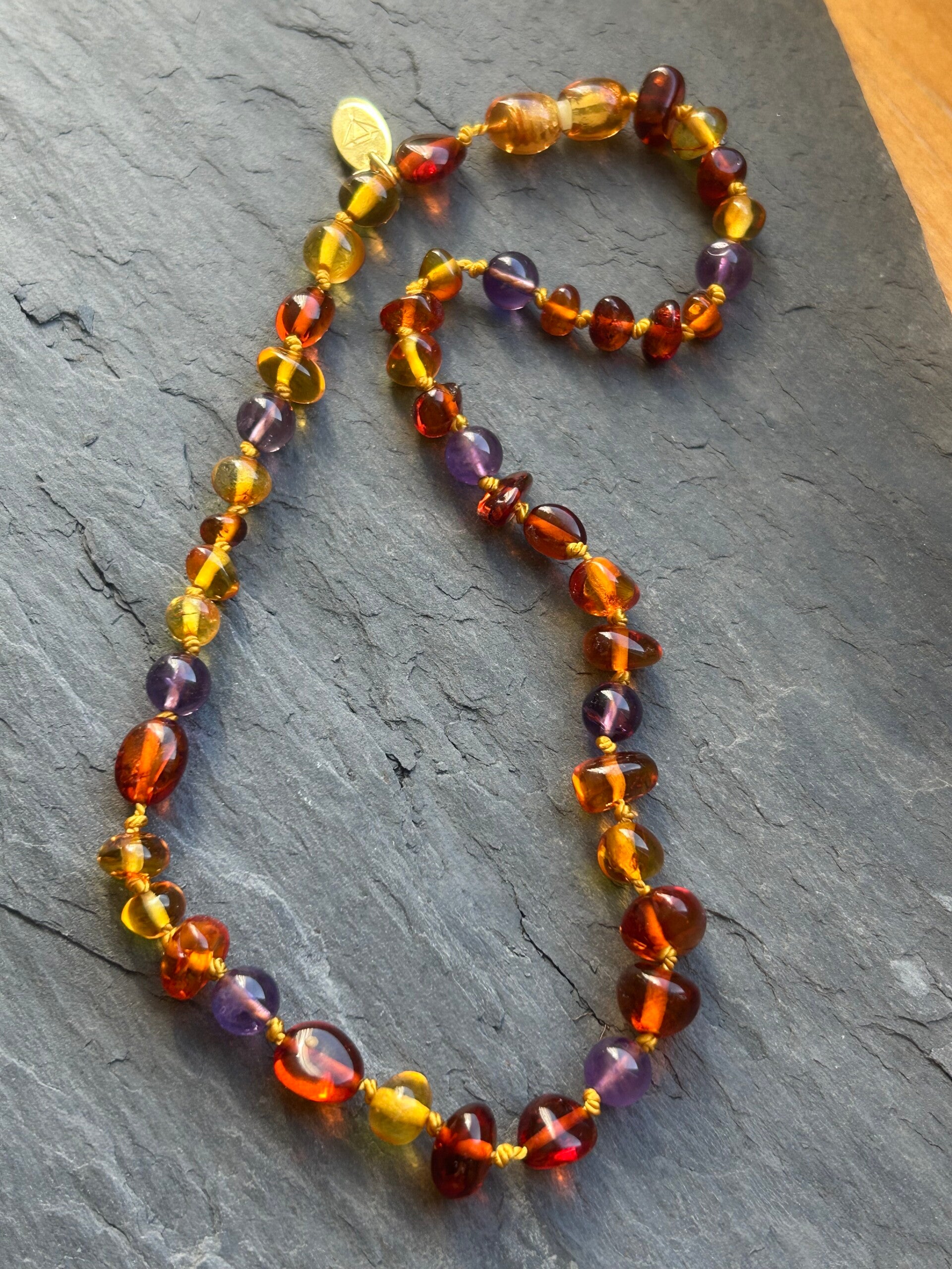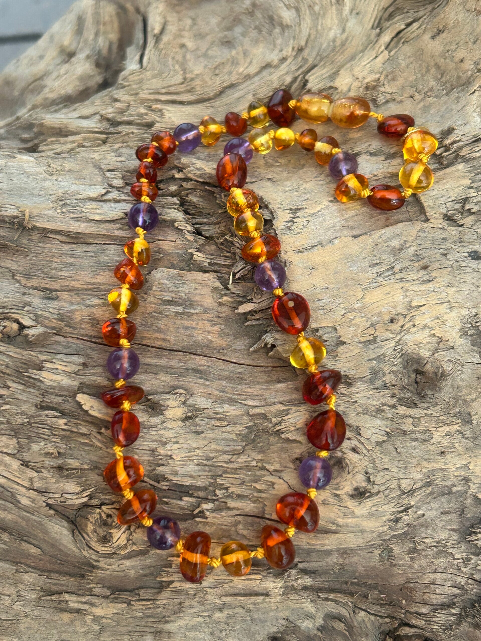 Kinder-Halskette - Bernstein & Amethyst (H537)