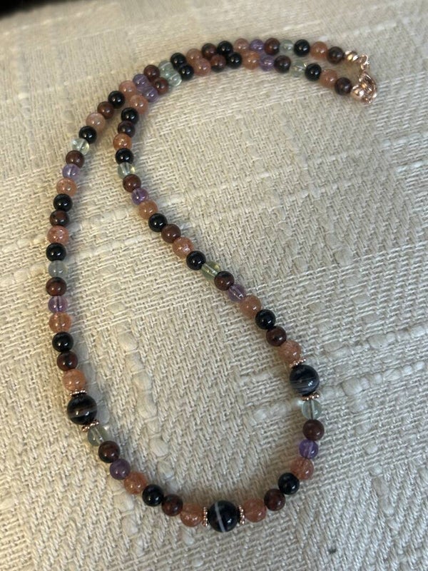 Länge auf diesem Bild: 40cm (Deine genaue Wunschlänge im Kommentar eingeben und entsprechende Preisklasse wählen); Silber 925 rosé vergoldete Elemente und Verschluss; Kugeln 4 und 6mm