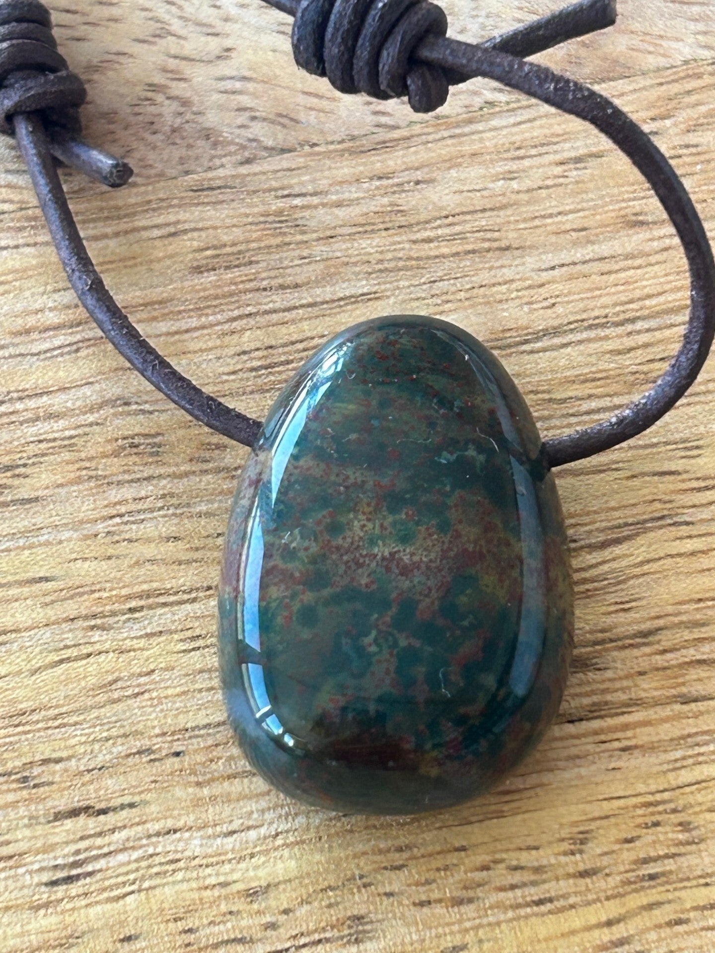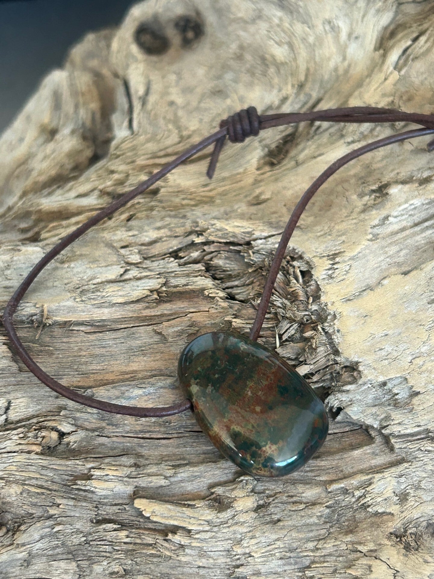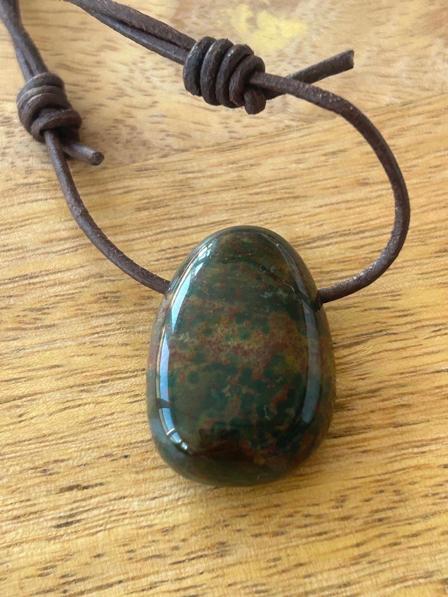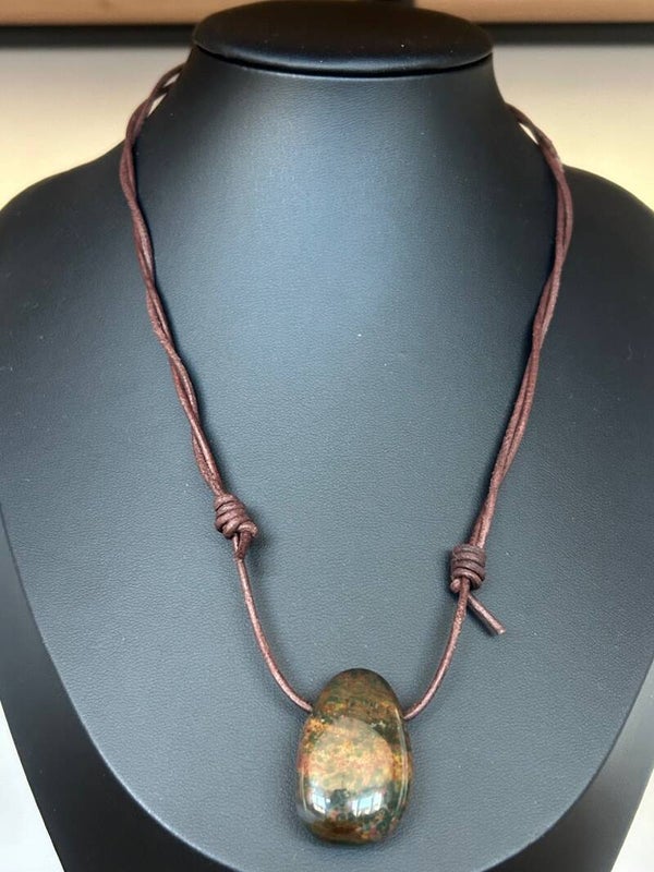 Hinweis: mit Lederband (Länge individuell anpassbar); Stein-Anhänger 30 x 19 mm