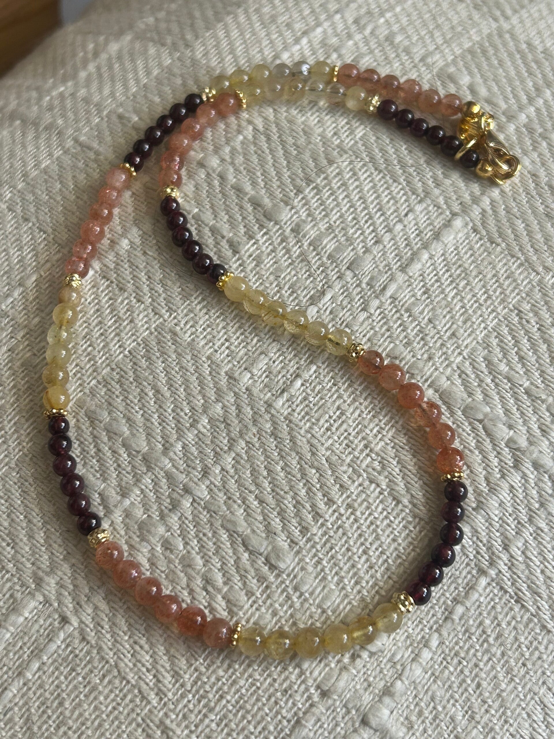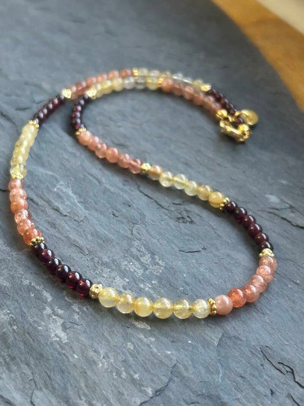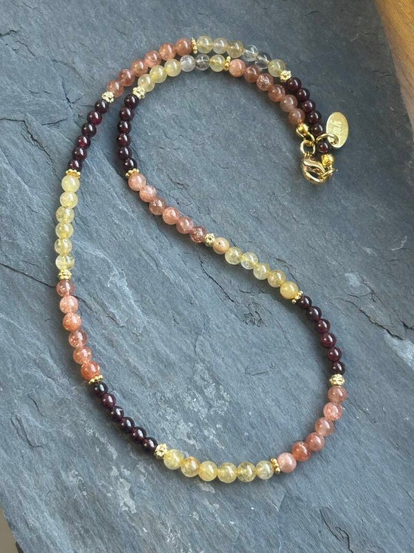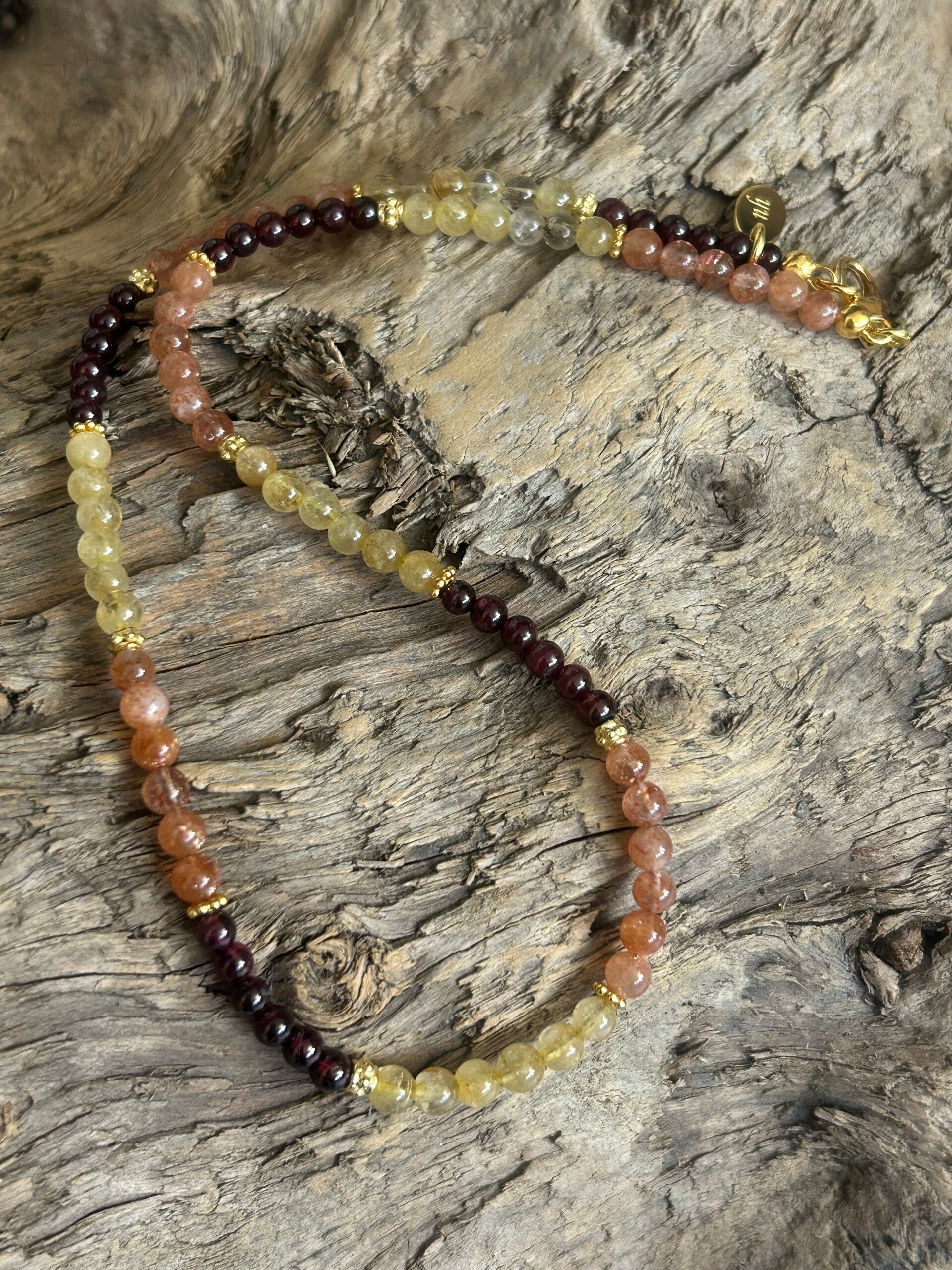 Halskette - Granat, Rutilquarz & Sonnenstein (H549)