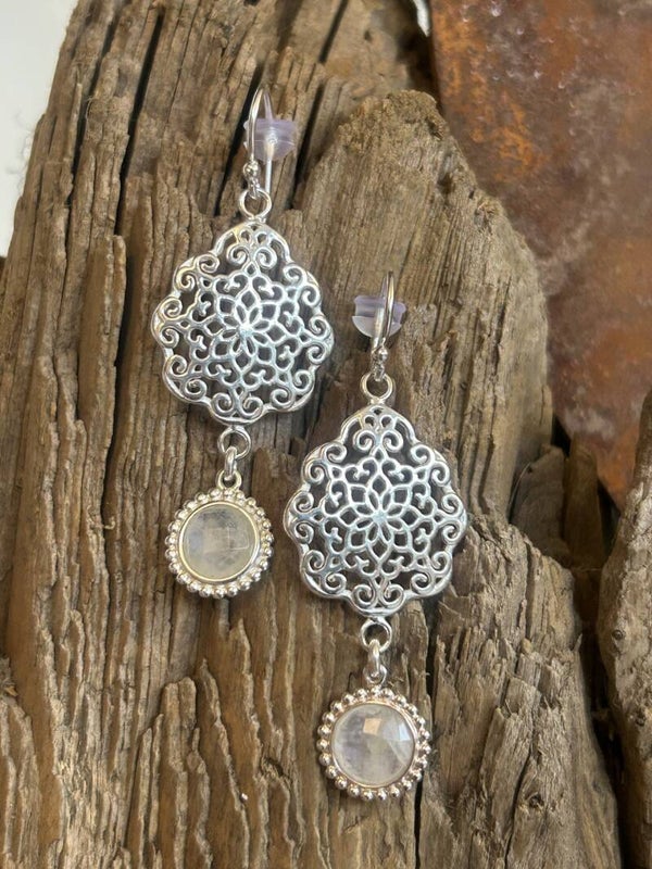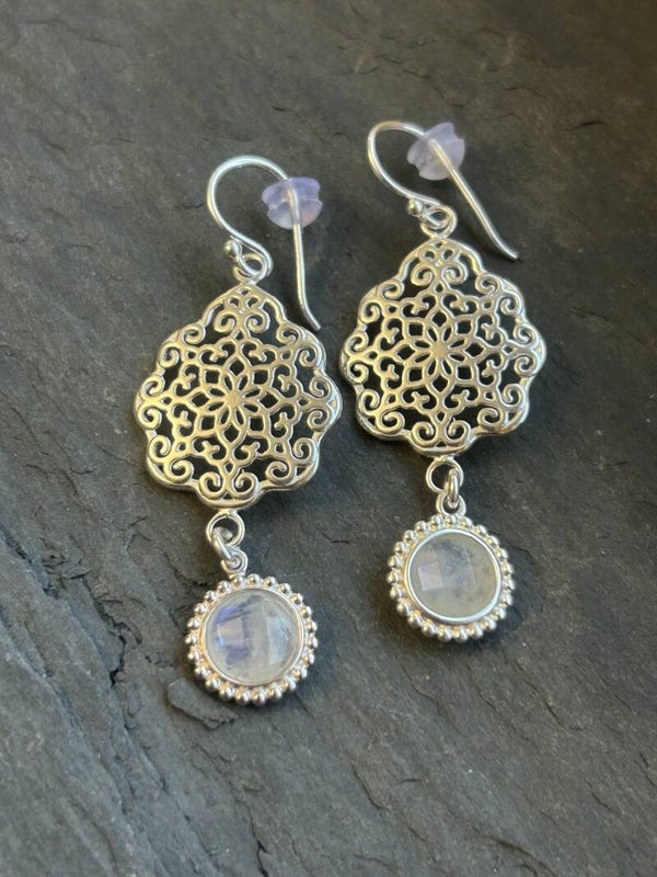 Ohrringe - Labradorit weiss (Regenbogen Mondstein) (O553)