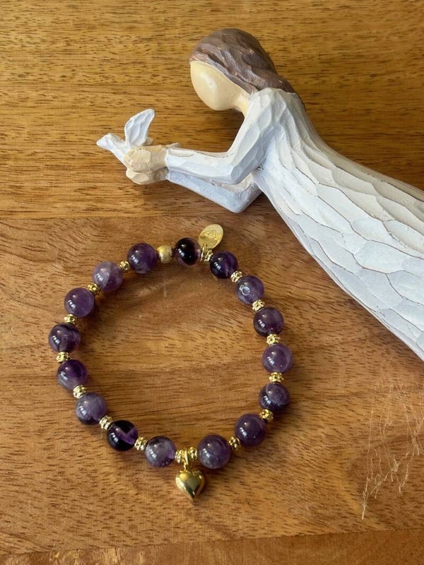 Hinweis: mit Stretch-Band (Länge 15 - 22 cm wählbar); Silber 925 vergoldete Elemente und Anhänger "Herz"; Kugeln 8mm