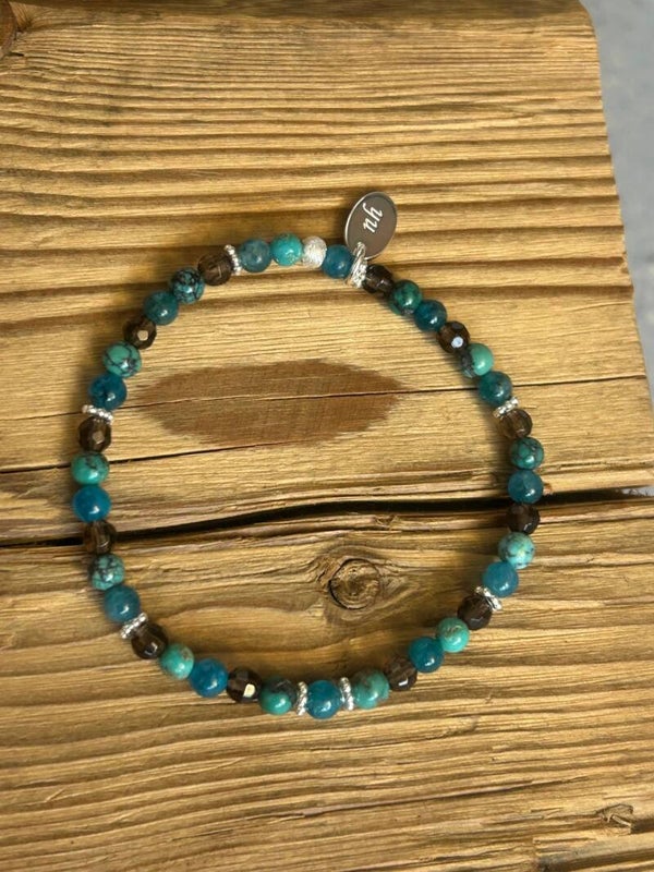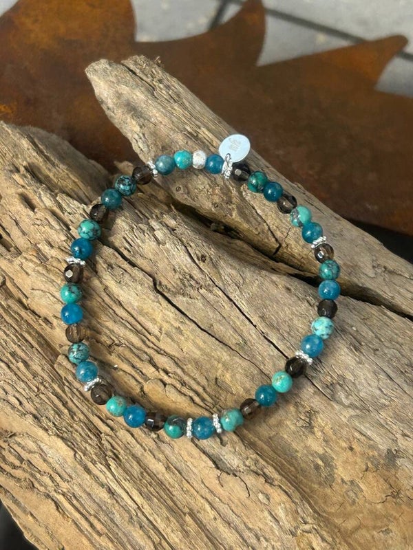 Armband - Apatit blau, Rauchquarz & Türkis Tibet (A762)