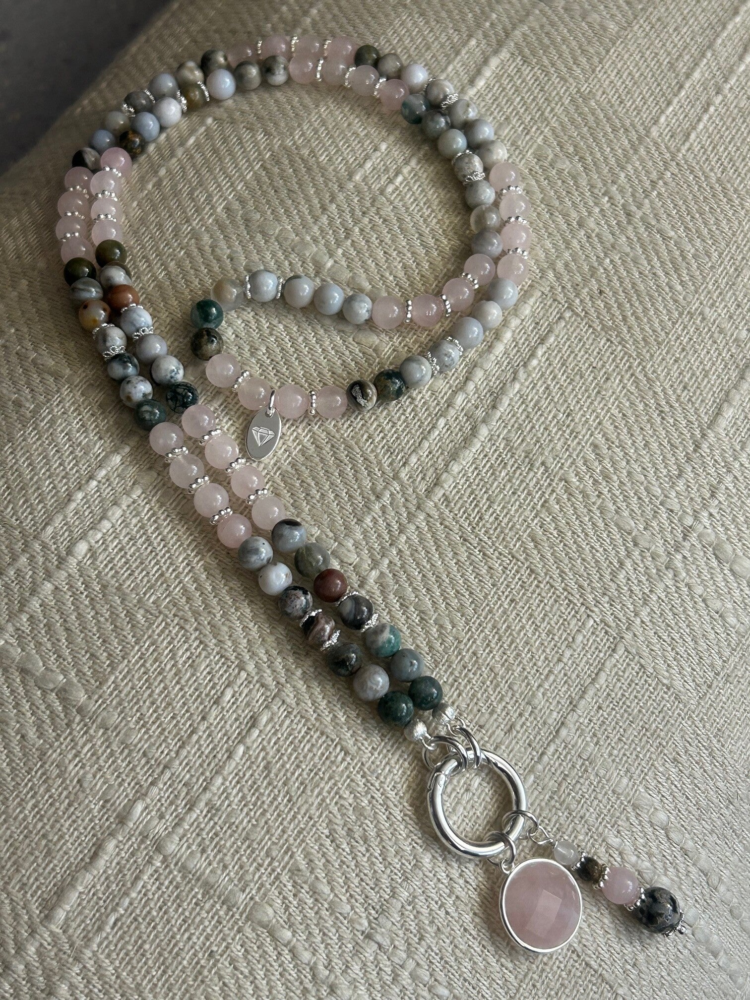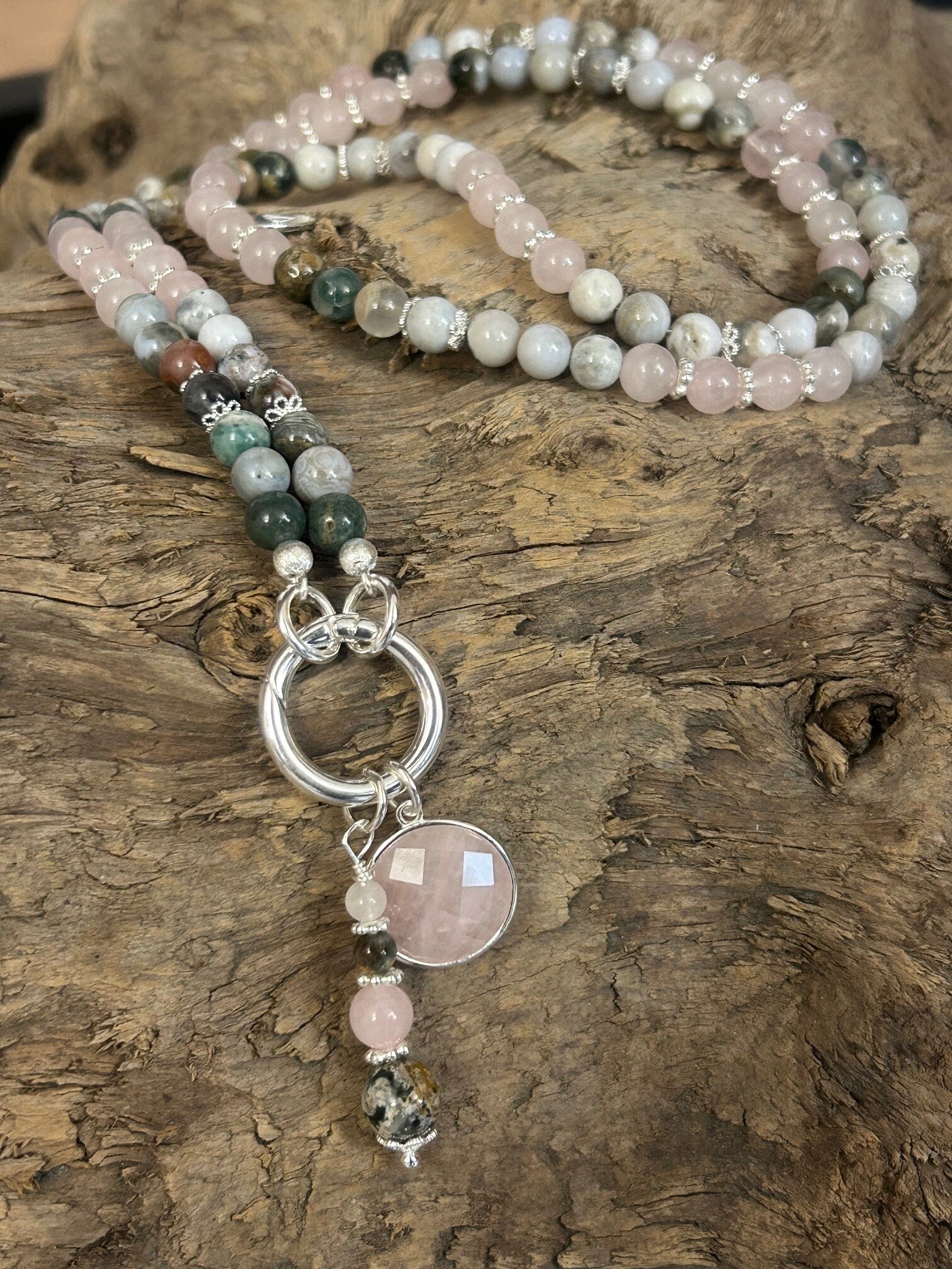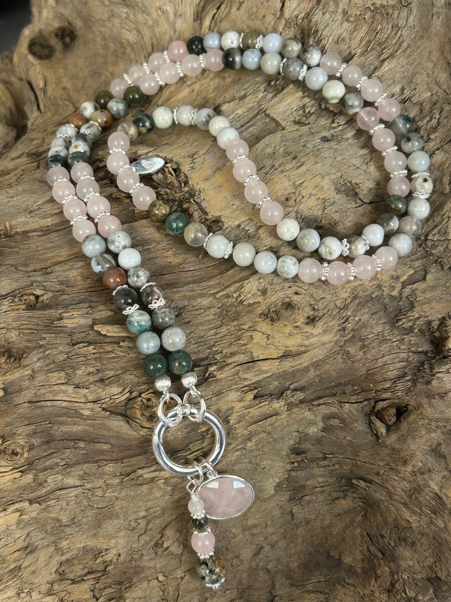 Halskette - Ozean-Achat & Rosenquarz (H556)