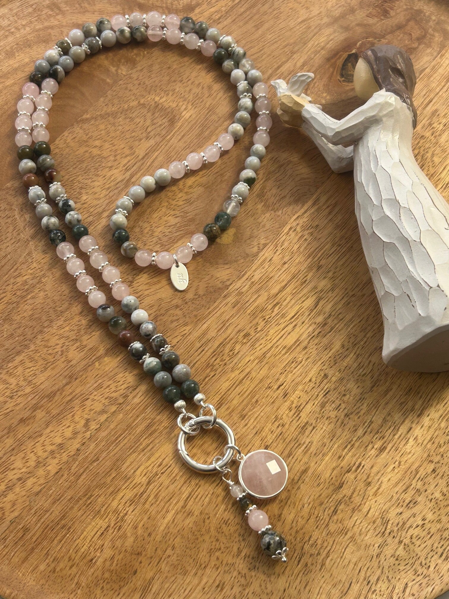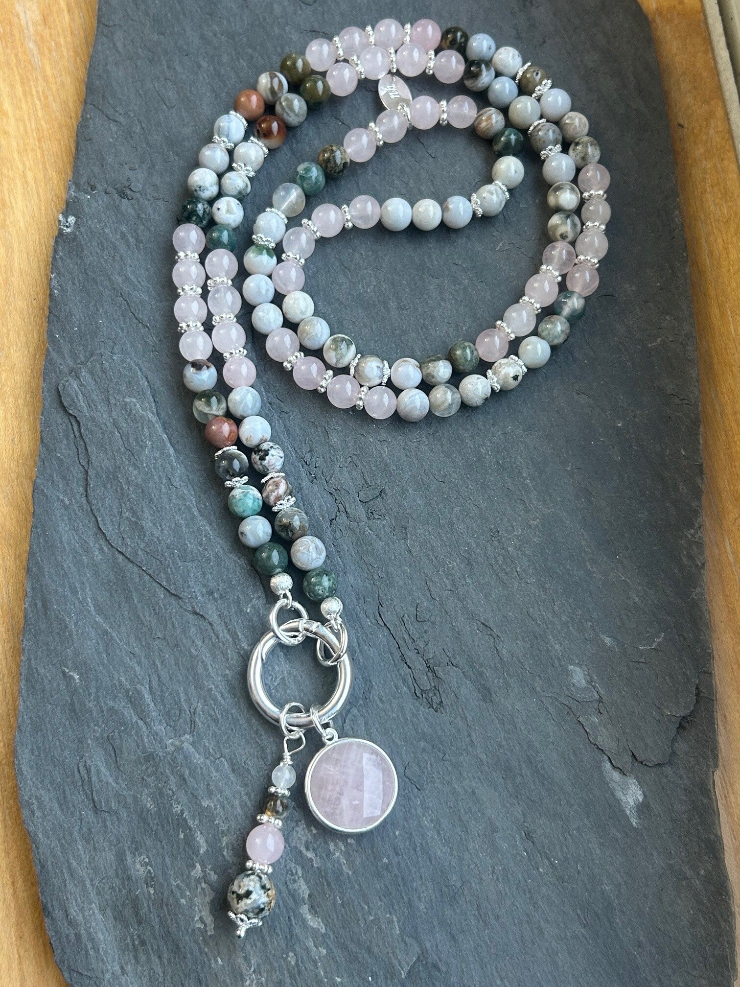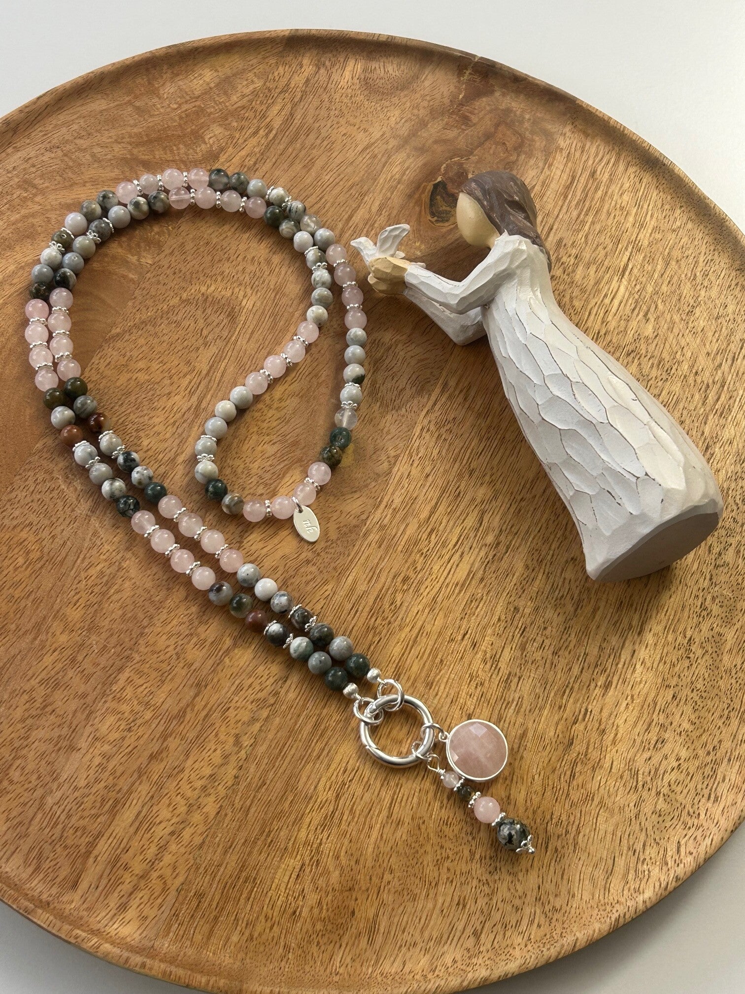 Halskette - Ozean-Achat & Rosenquarz (H556)