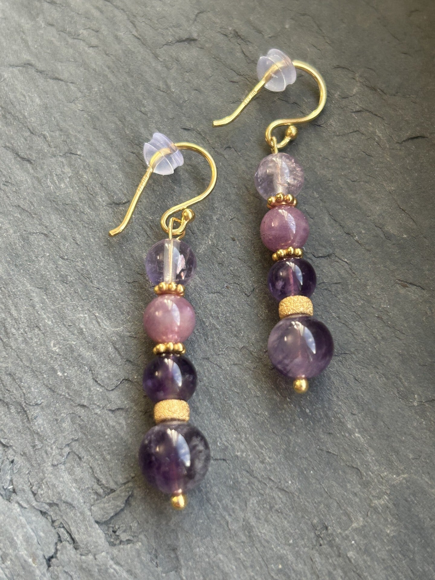 Heilsteine (Link zu Beschreibung und Wirkung): Amethyst, Amethyst-Quarz (Chevron), Rubin