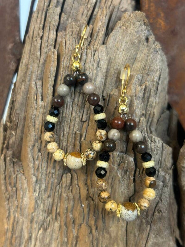 Ohrringe - Landschaftsjaspis, Turmalin schwarz & Versteinertes Holz (O557)