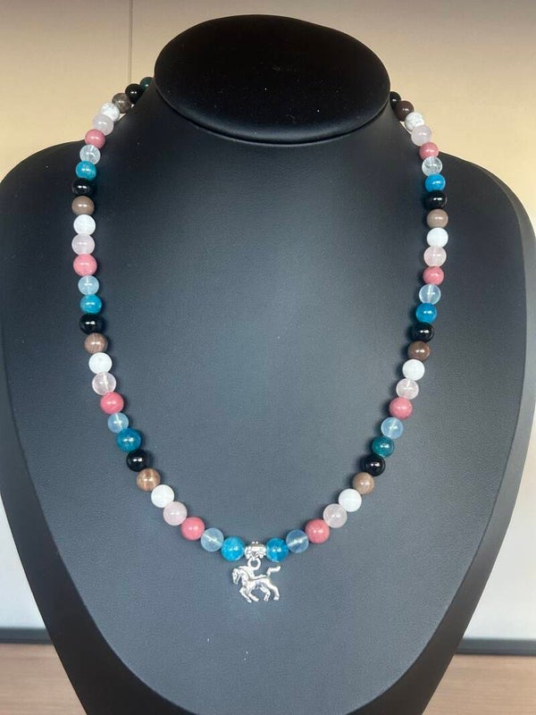 Länge auf diesem Bild: 45cm (Deine genaue Wunschlänge im Kommentar eintragen und die entsprechende Preisklasse wählen); Silber 925 Anhänger "Pferd" und Verschluss; Kugeln 6mm