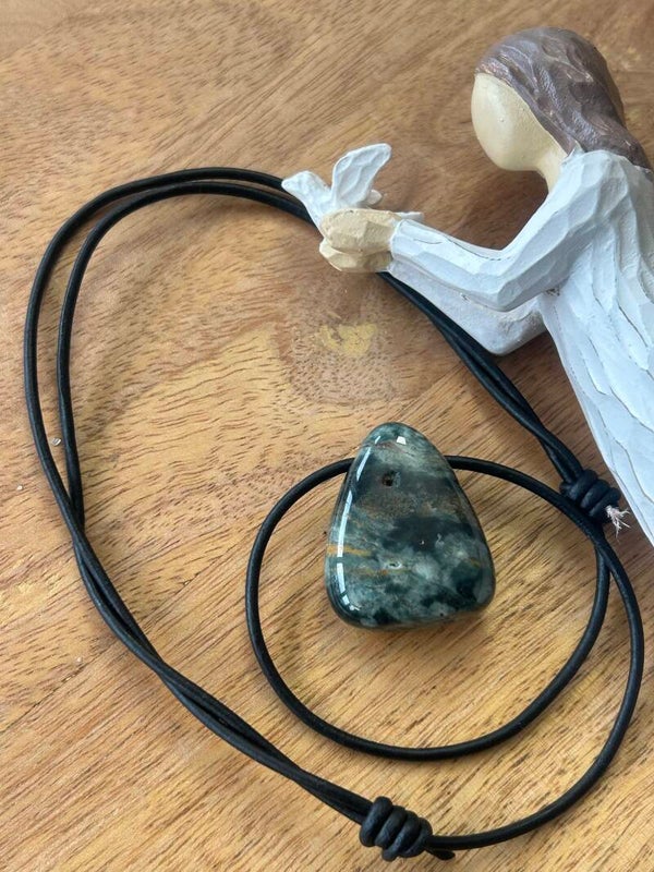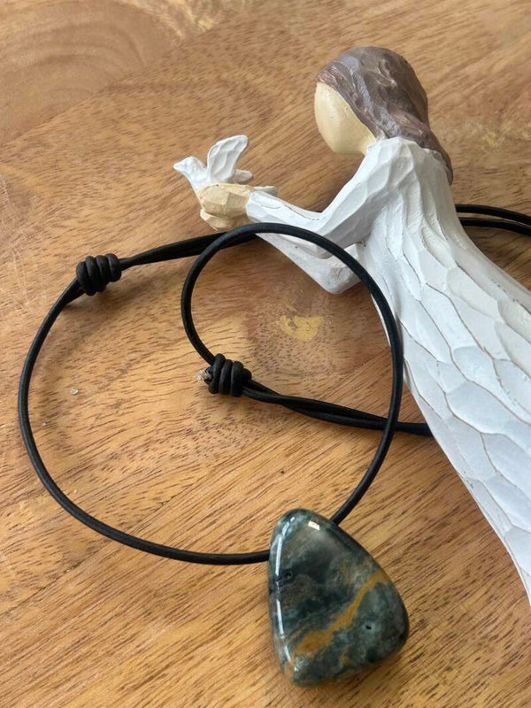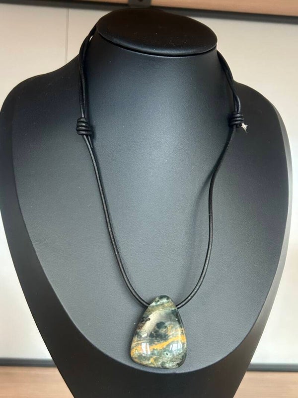Ozean-Achat am Lederband (Länge individuell anpassbar)