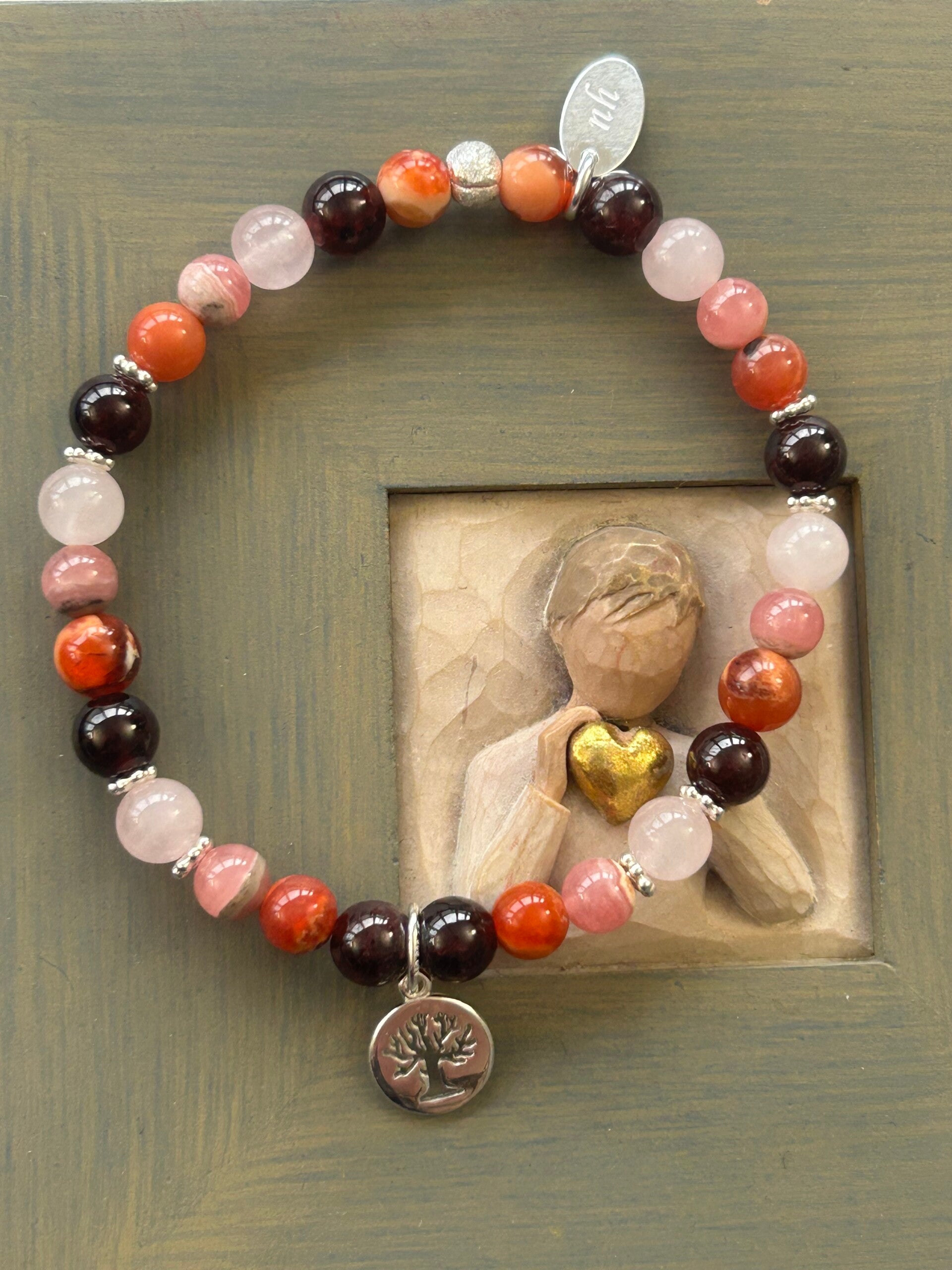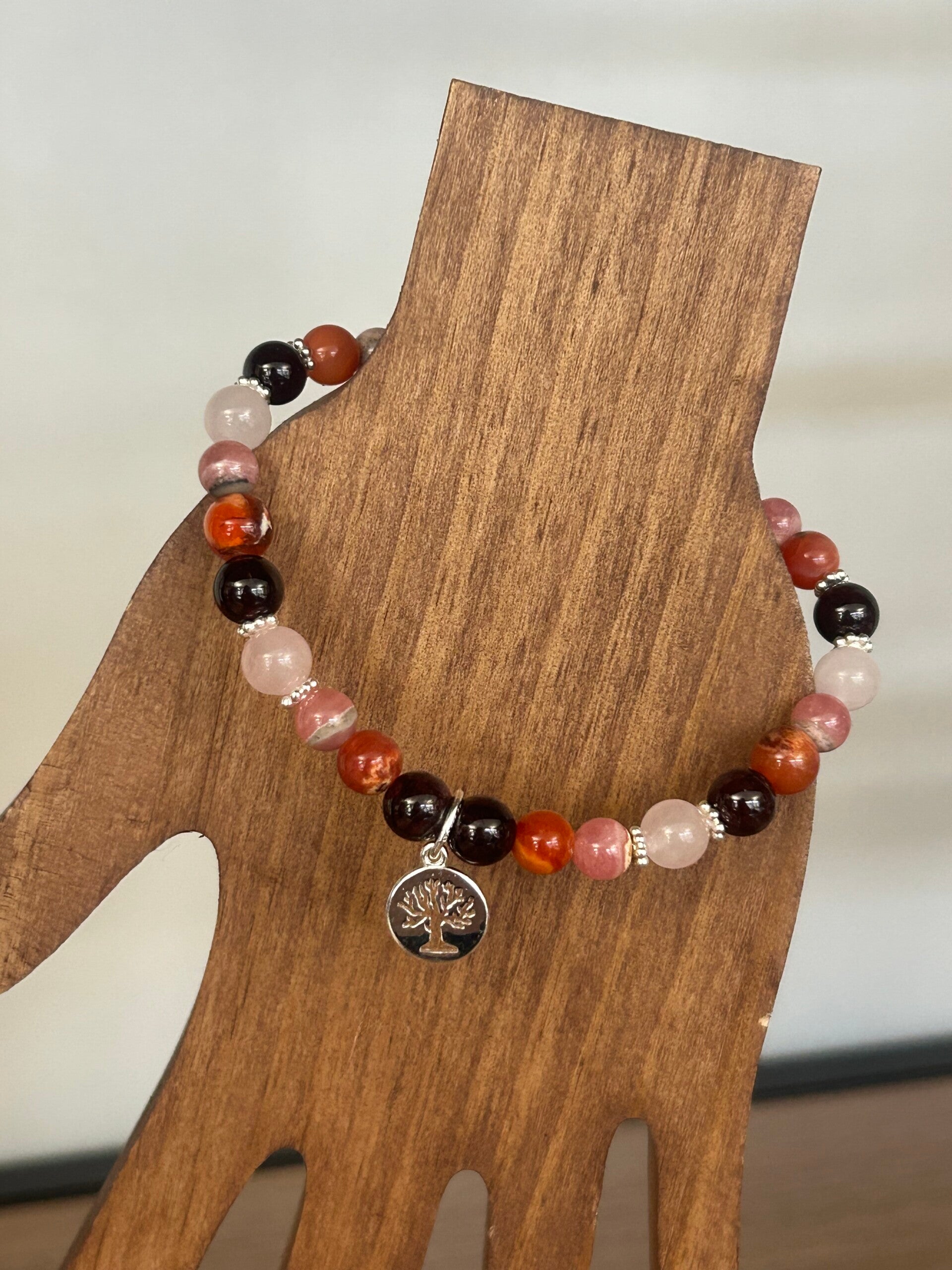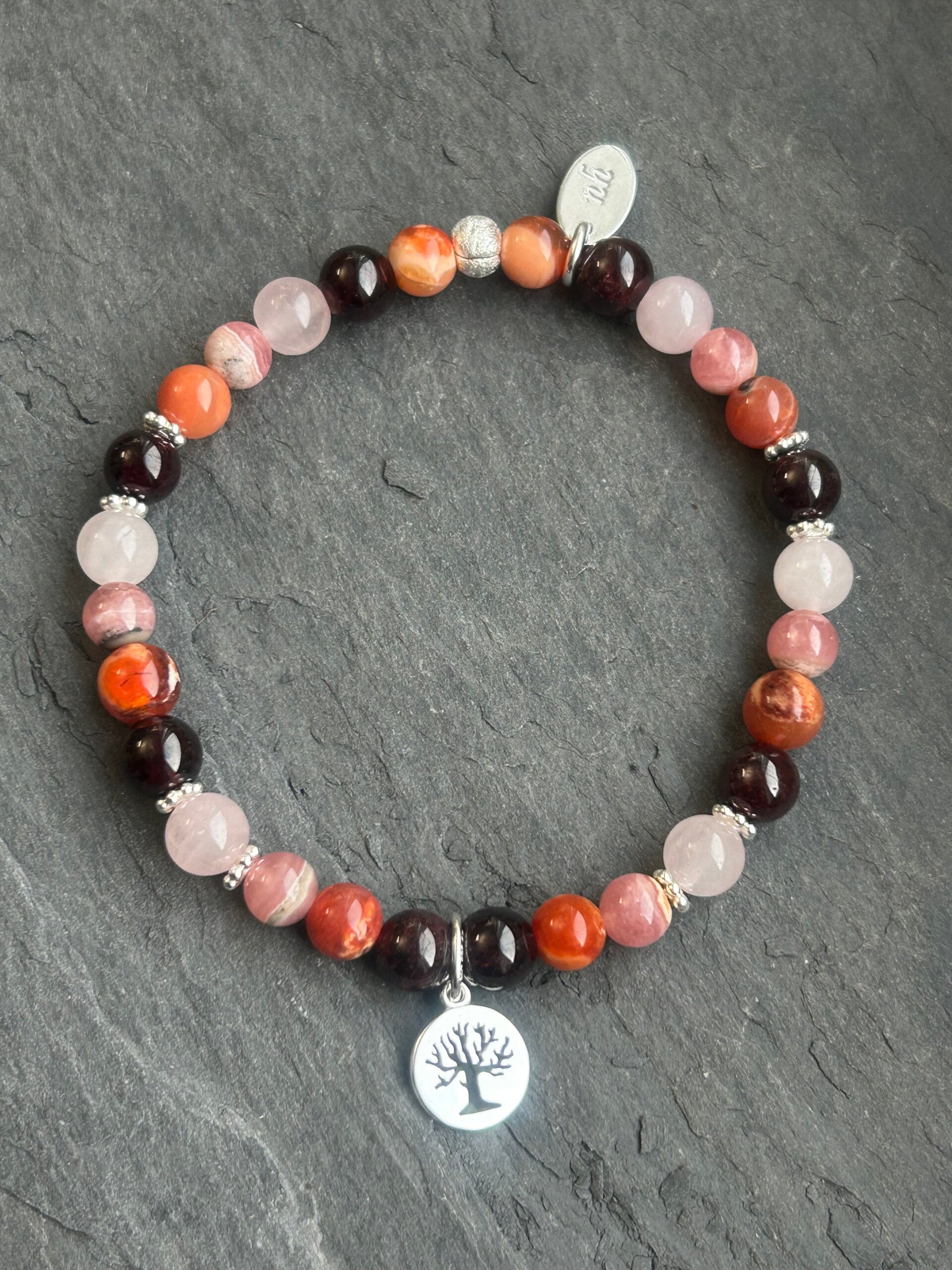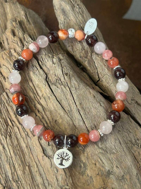 Heilsteine (Link zu Beschreibung und Wirkung): Feueropal, Granat, Rhodochrosit, Rosenquarz