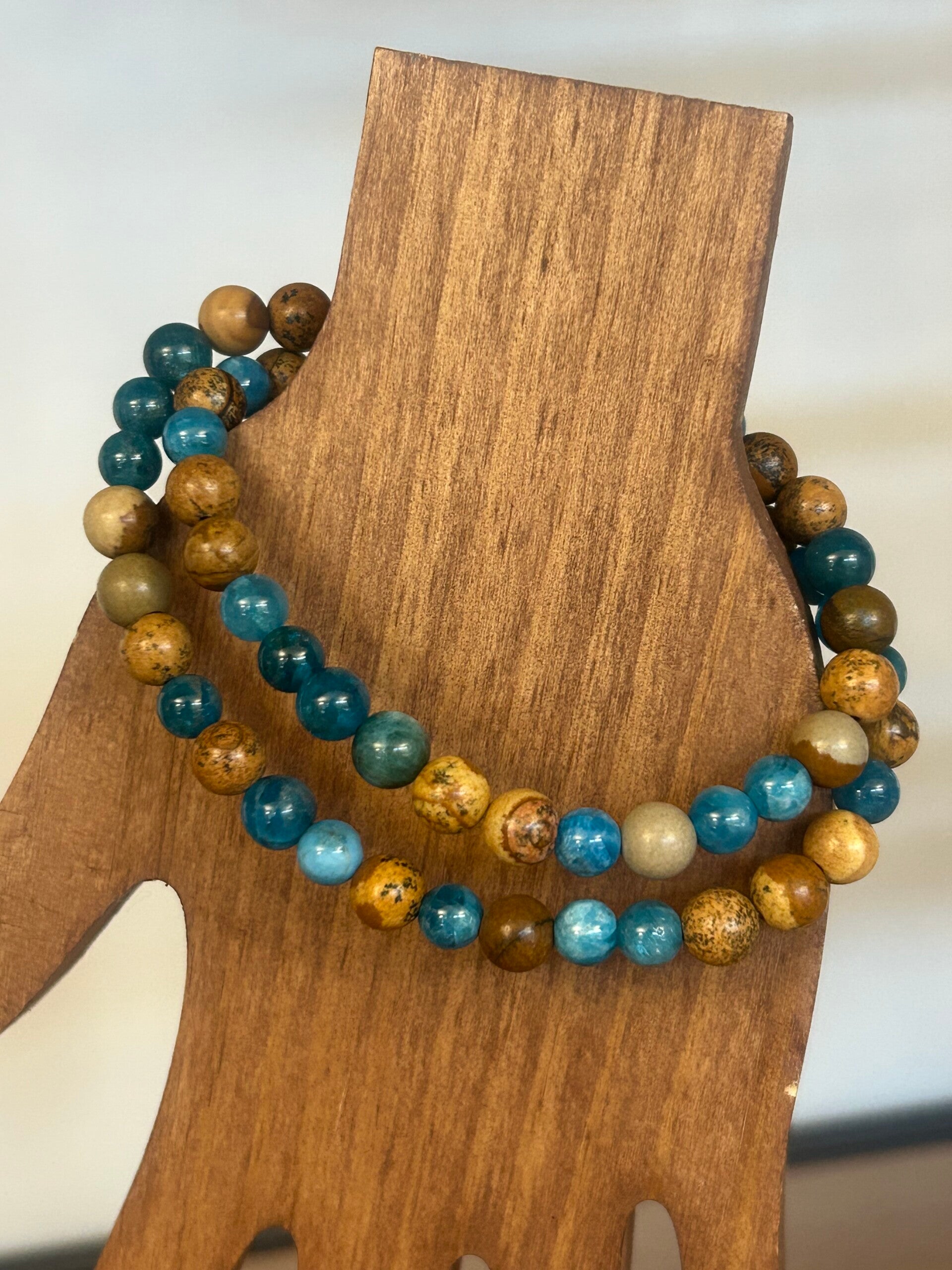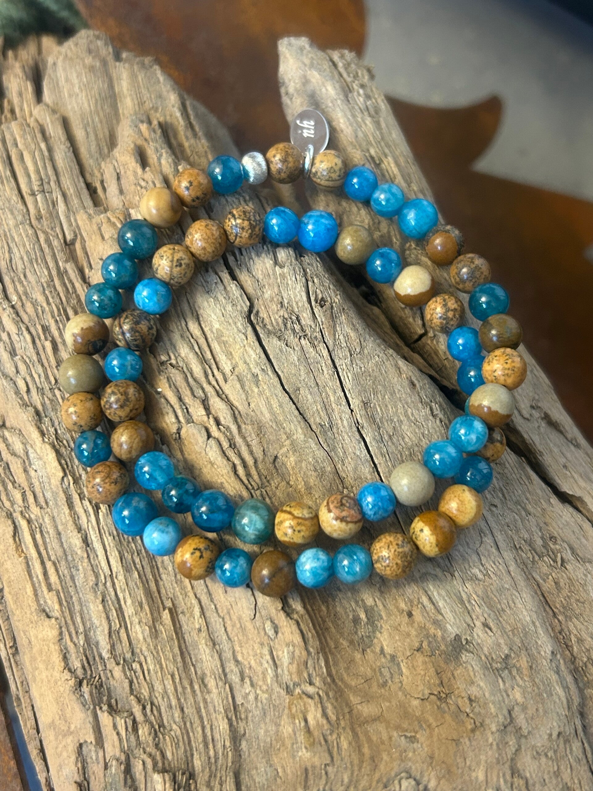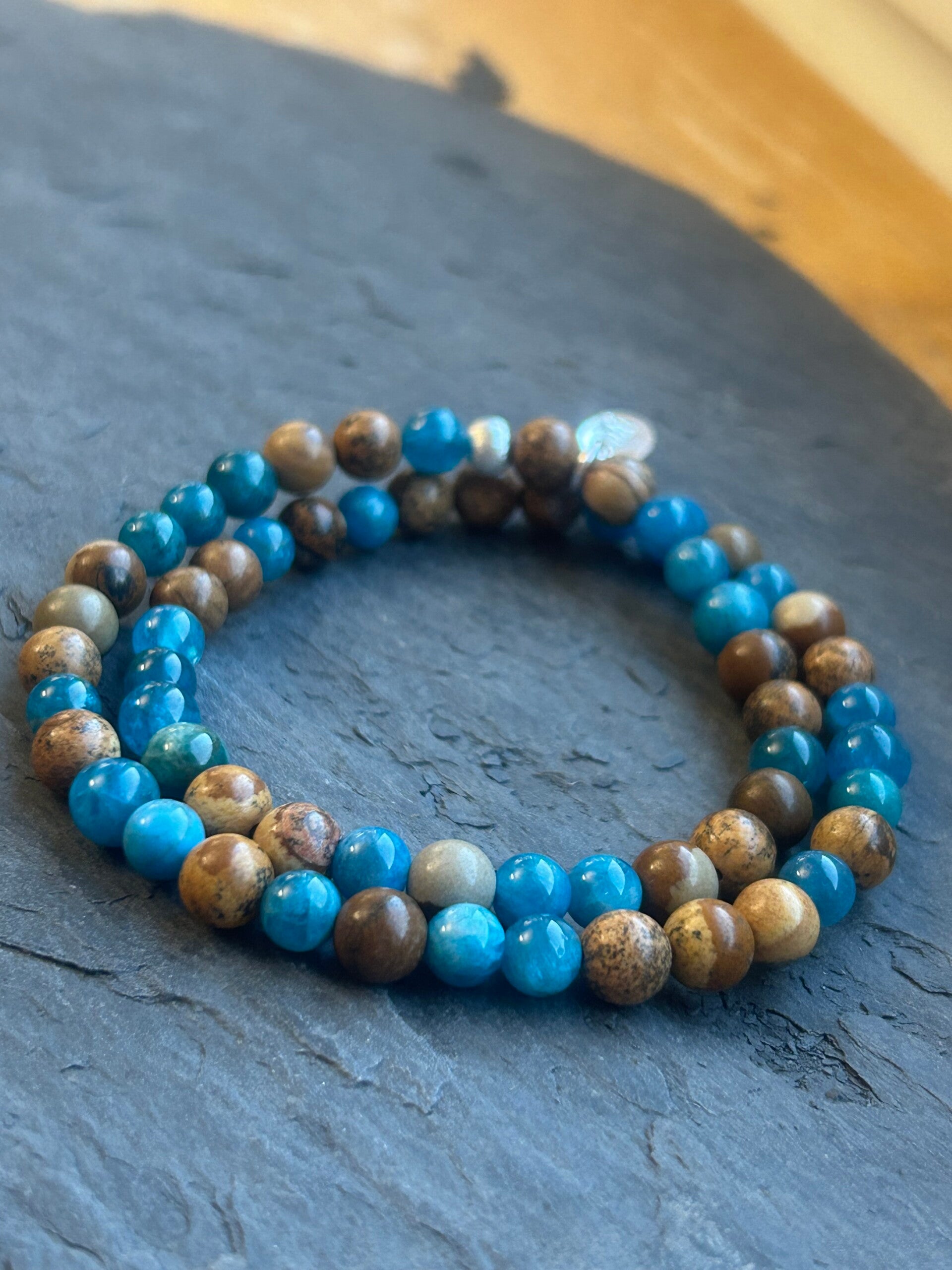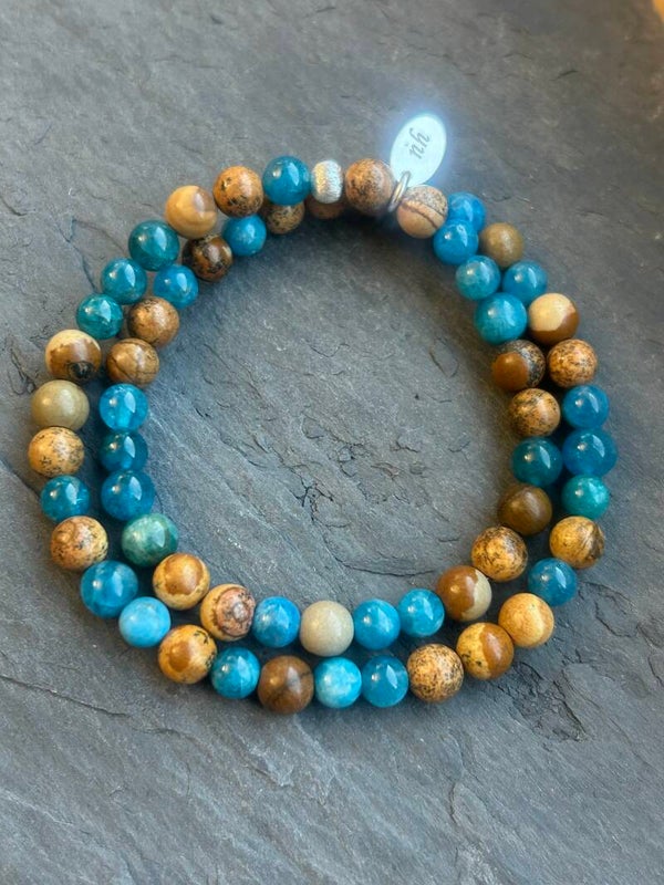 Wickelarmband (2-fach) - Apatit blau & Landschaftsjaspis (A784)
