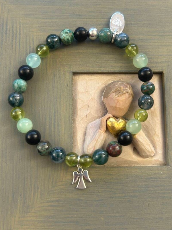 Heilsteine (Link zu Beschreibung und Wirkung): Chrysokoll, Chrysopras, Gagat, Moosachat, Peridot