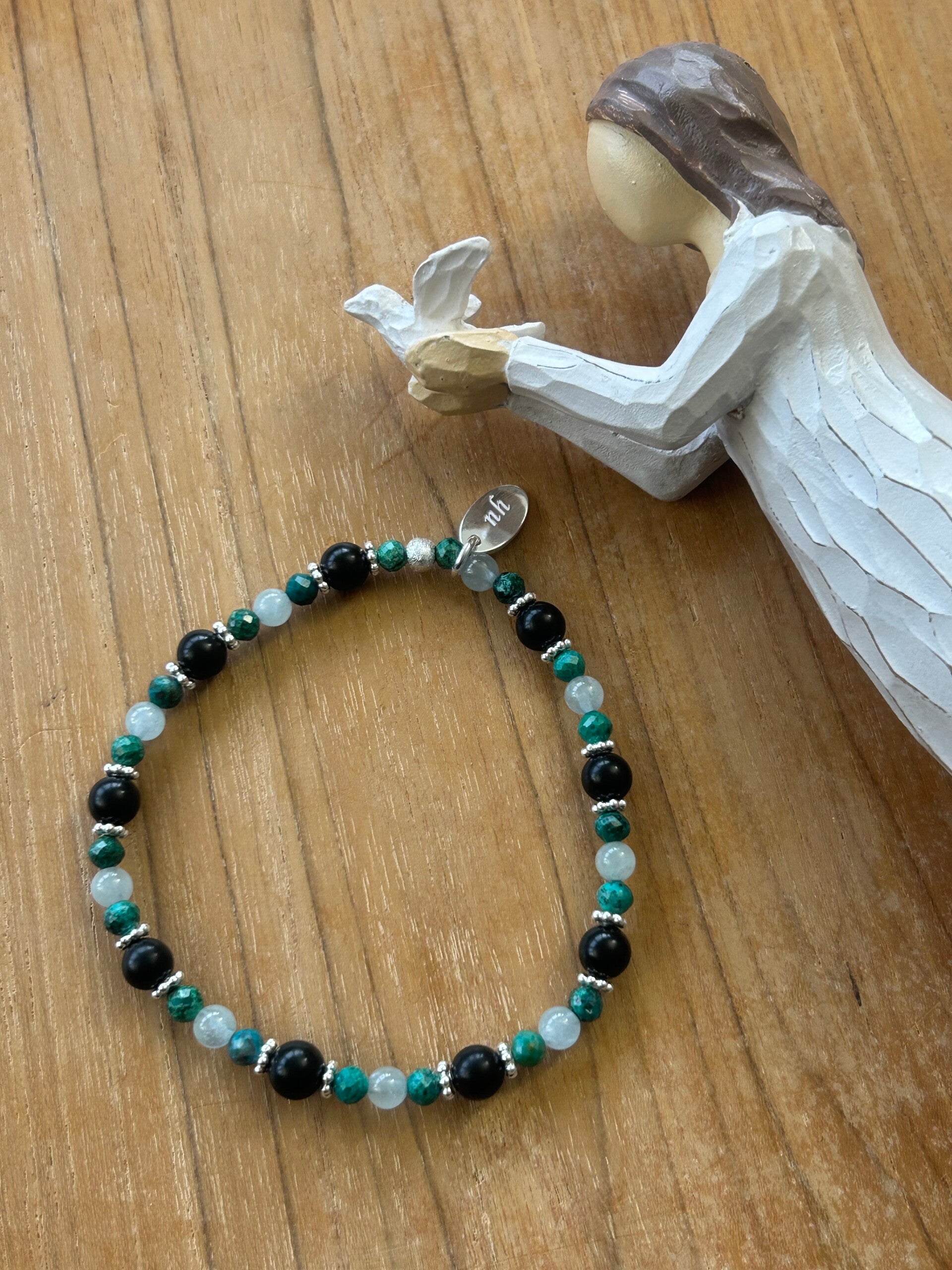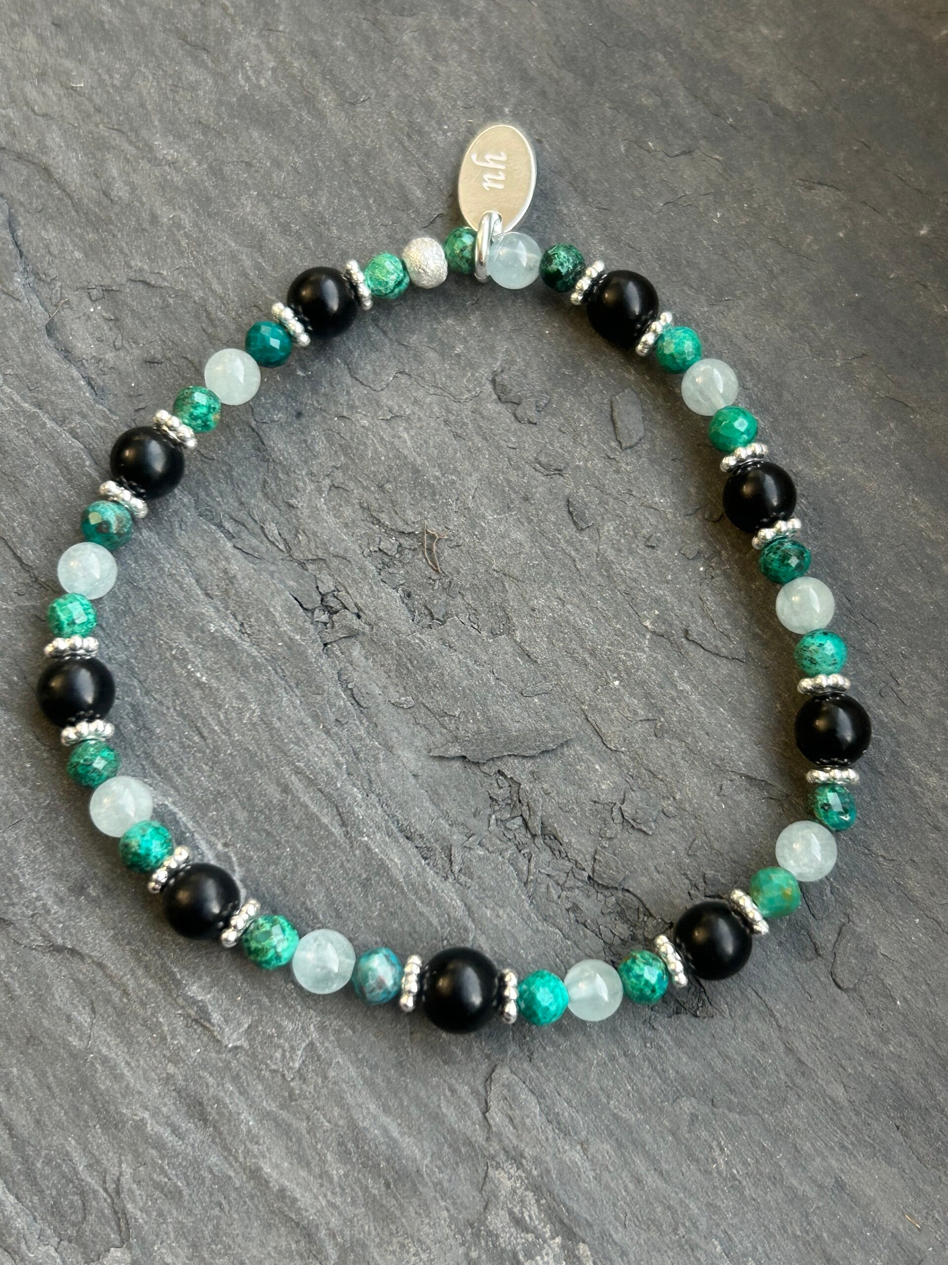 Armband - Aquamarin, Chrysokoll & Gagat (A792)