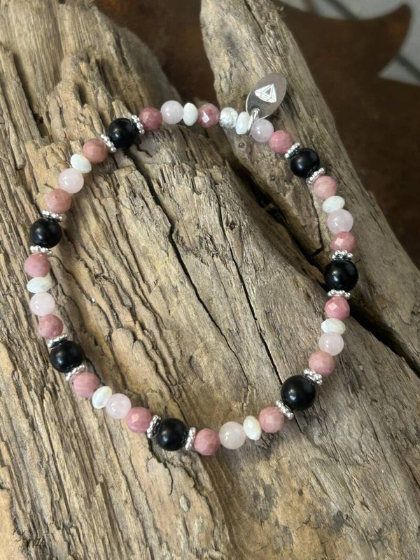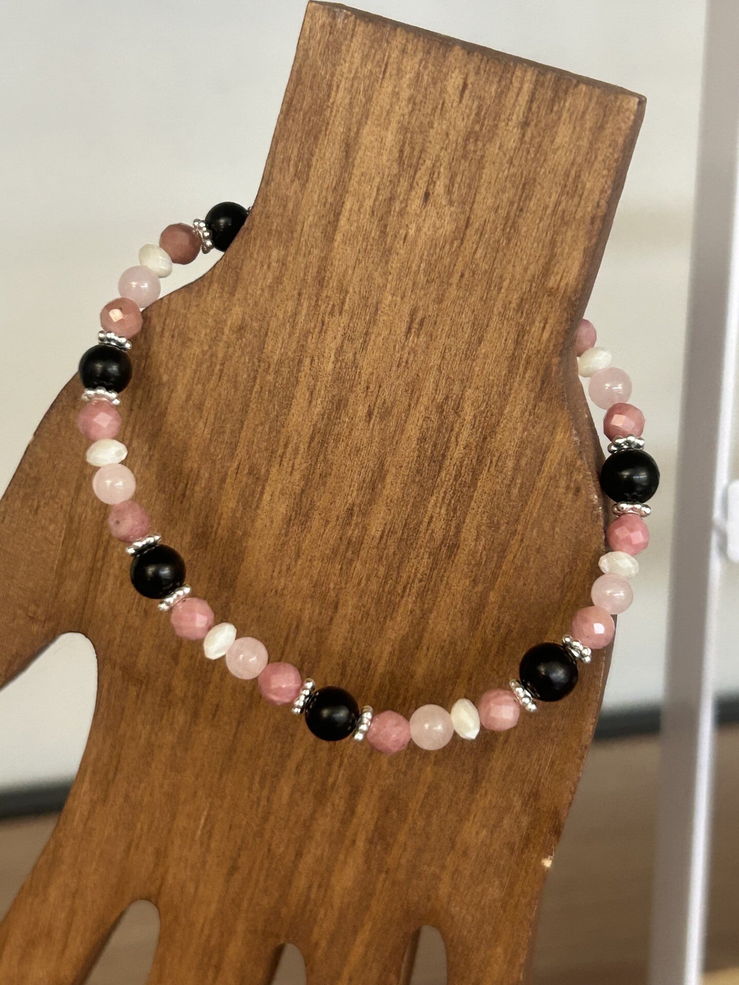 Armband - Gagat, Perlmutt, Rhodonit & Rosenquarz (A793)