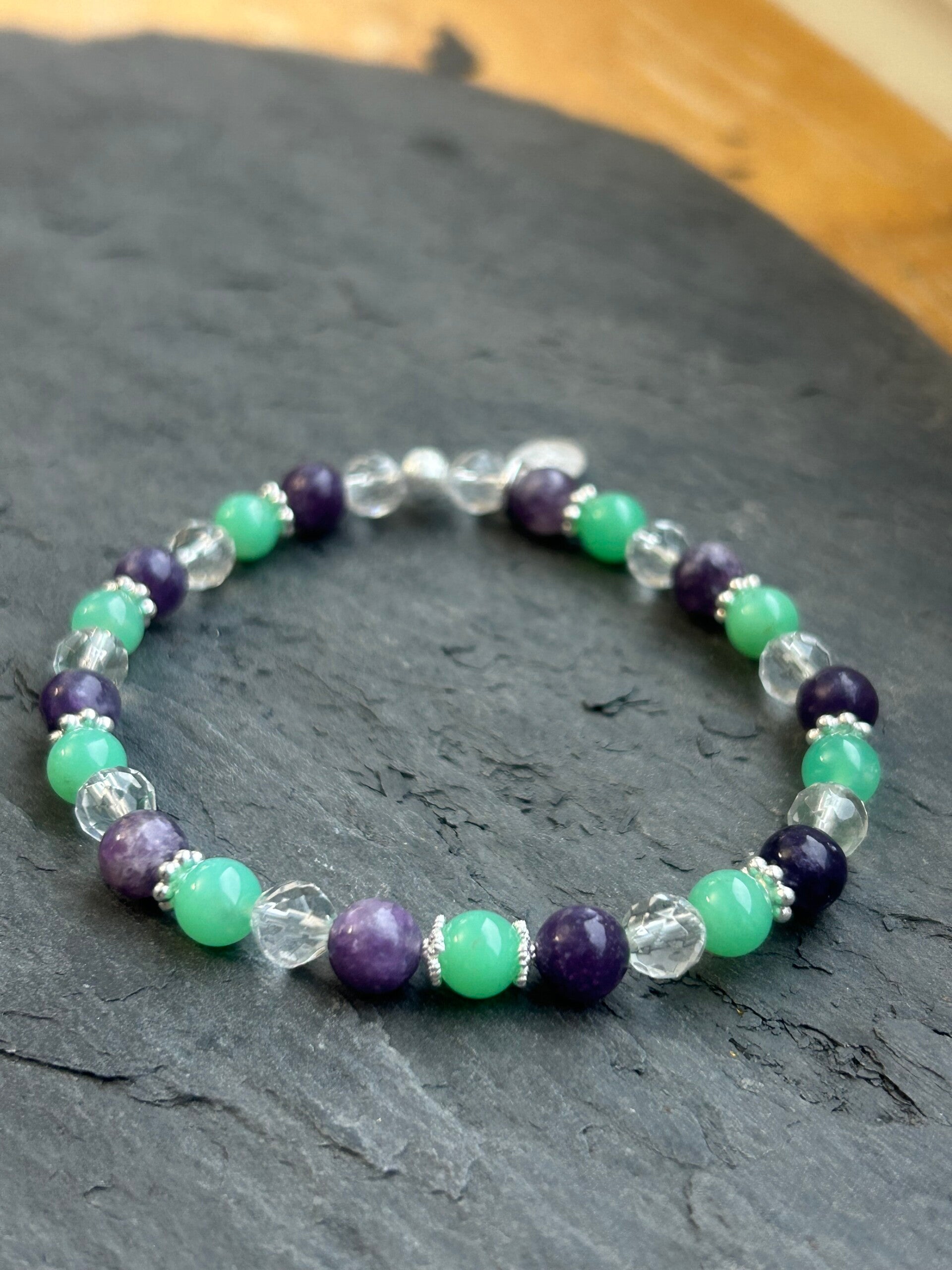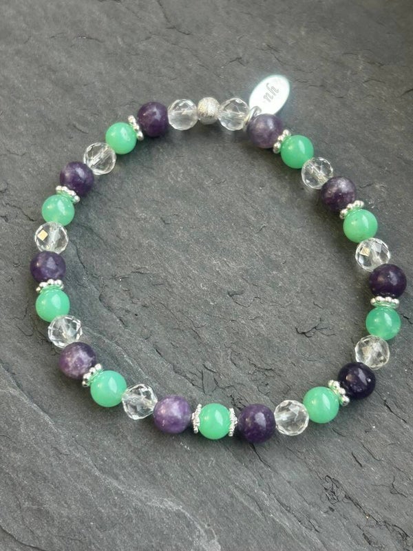Armband - Bergkristall, Chrysopras & Lepidolith (A798)